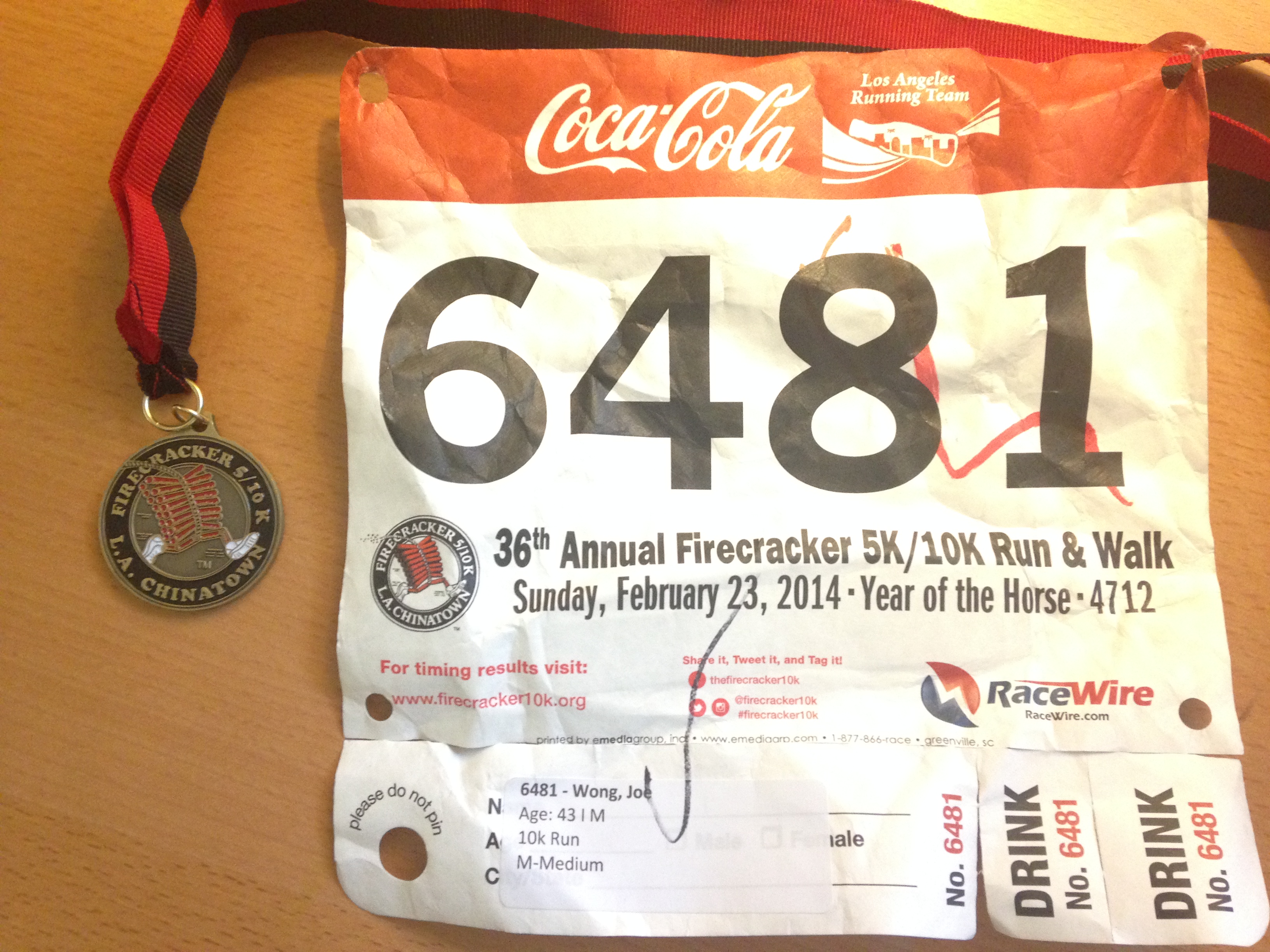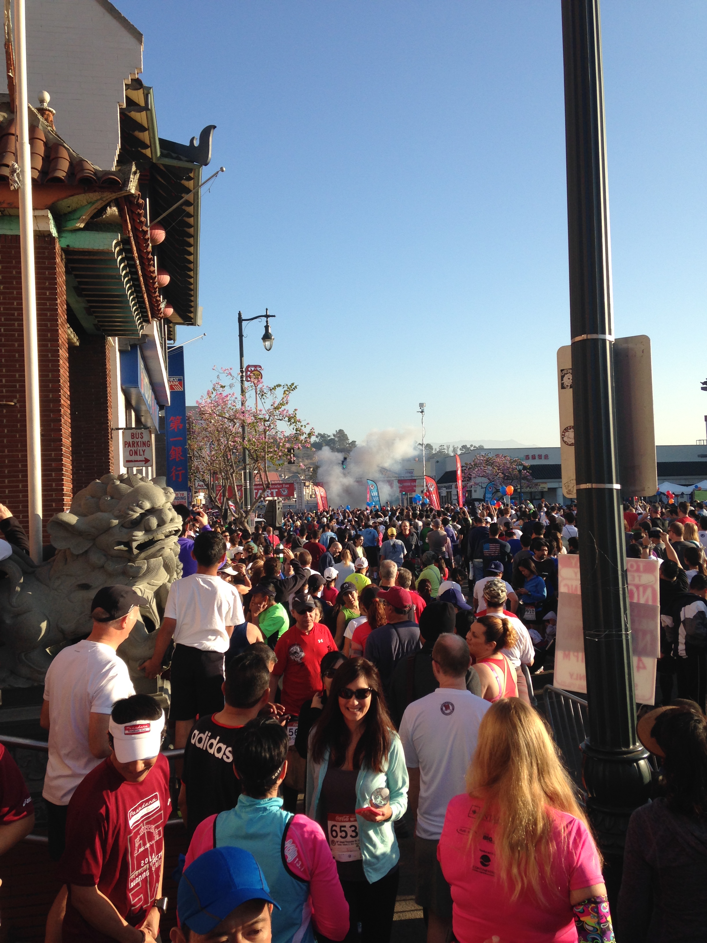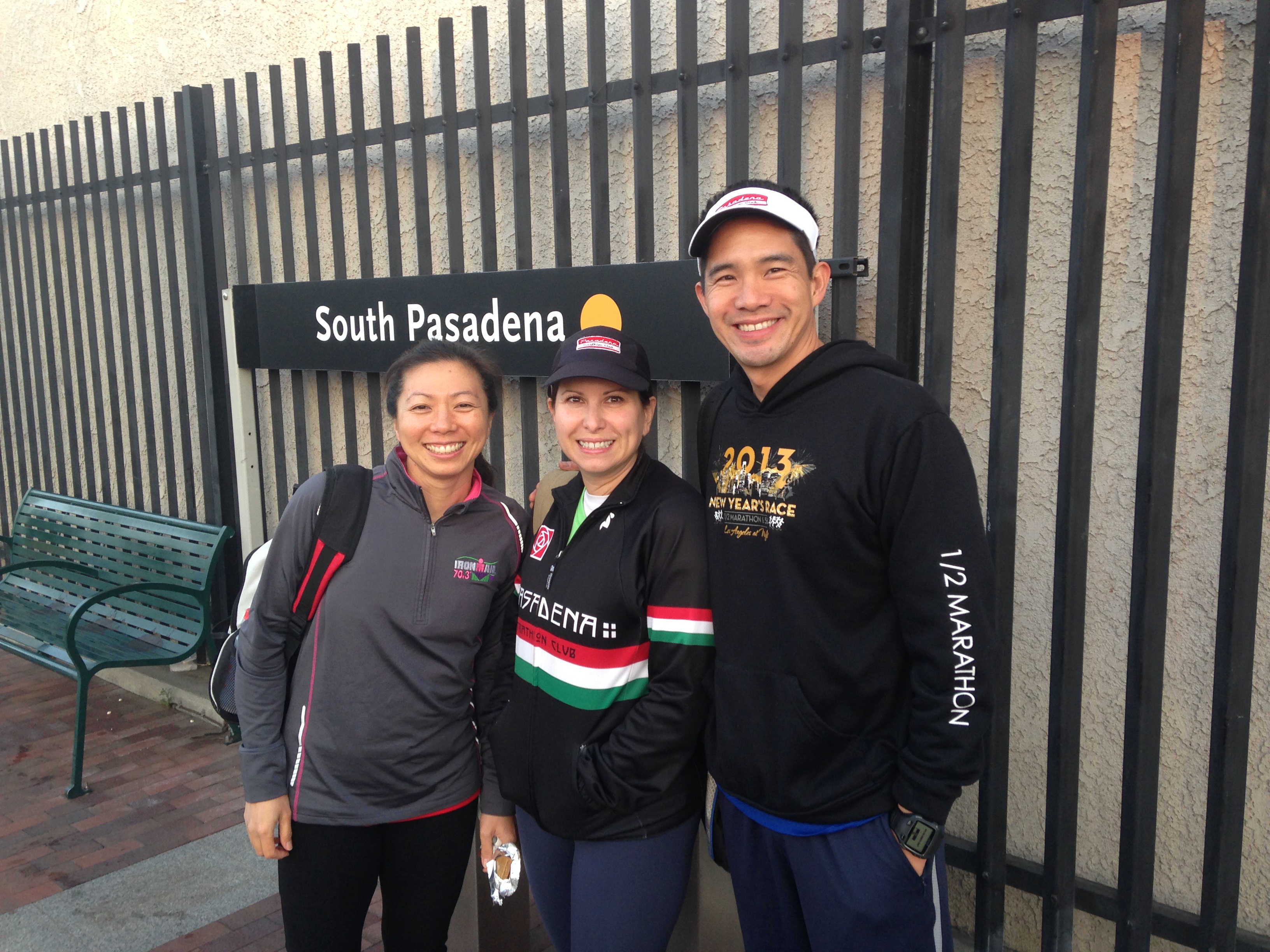 Day started with a train ride on the Gold Line from South Pasadena to Chinatown. Marvin sent out the timetable so we could all catch the same train. That was fun. Lynda and crew took the early train and missed us. Stay with the program, lady! We picked up race packets, took pre-race pictures, then checked bags. Race itself. Race started with 100,000 loud firecrackers. It went on and on. I didn’t take my phone with me, but the views on the run were great. The hilly climb through Elysian Park. There were Tyco Drums. Over the 110 Fwy. View over LA. Ran past Dodger Stadium. Sparkling morning. I had belly issues the whole time. Bowel discomfort with fear of worse being possible. I’ll just say, thank God we were running through Elysian Park with bathrooms. I made an urgent and complete stop at mile 5. The ride back was fun too. I don’t ride the train much. But, when I do, it’s fun. Post Race at the Run with Us Booth at the Expo. They are a local running shop that sponsored our Feb Fecta event. The Feb Fecta is 3 stage race: Surf City Half Marathon + Bandit 15k Trail run + Firecracker 10k. Fastest cumulative time for Men/Women, Over and Under 40 yrs. I’m not fast, but participating is great cuz you got a free tech tee from Run With Us. Post Race meal: Heirlooms at South Pasadena. Right across the street from the train stop. Free parking below for Metro. Deal and convenience all over.