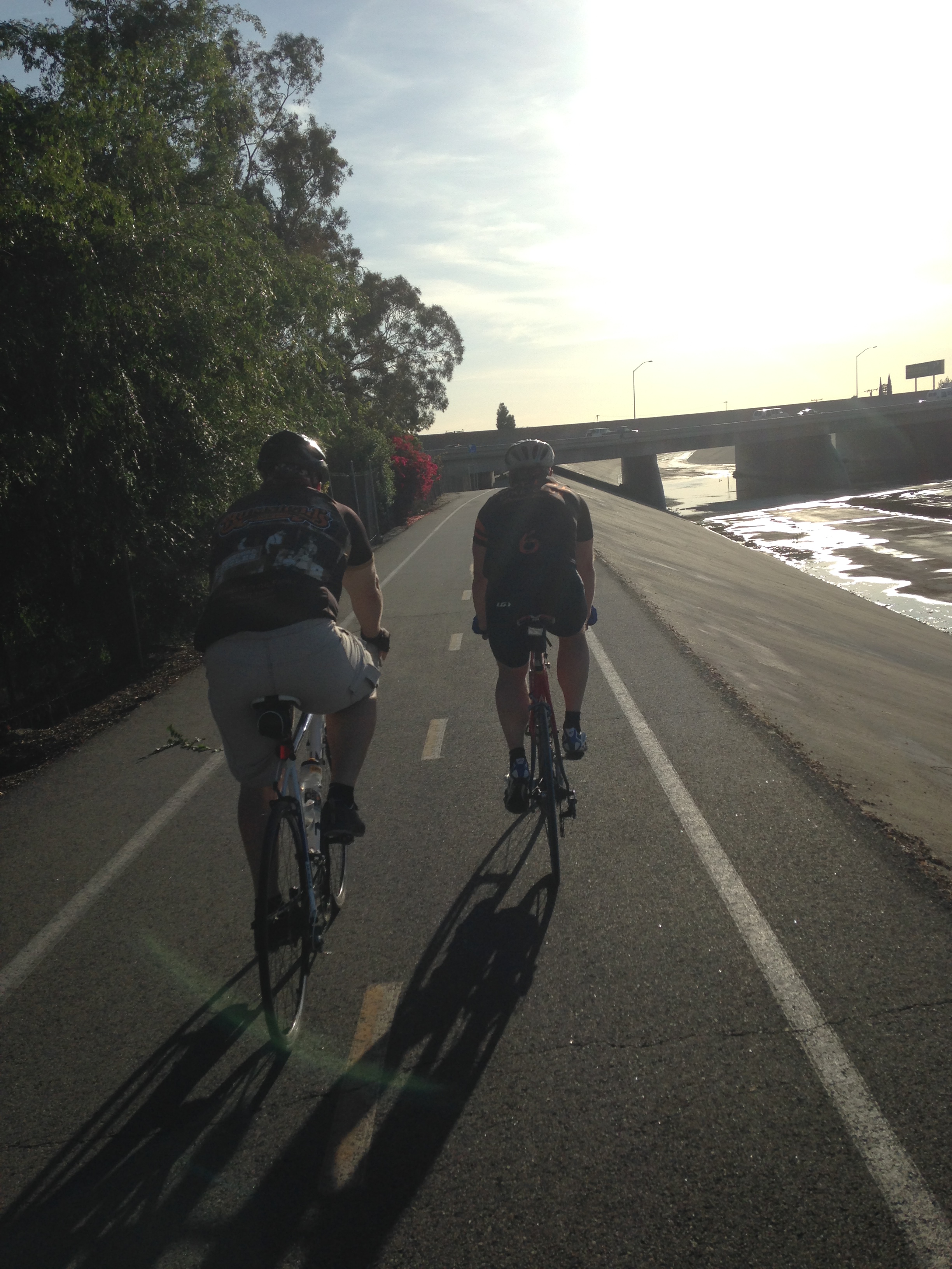 Down the Rio Honda River Trail to Whittier Narrows Park. Then Up San Gabriel River Trail. Crossed through neighborhood back to office.