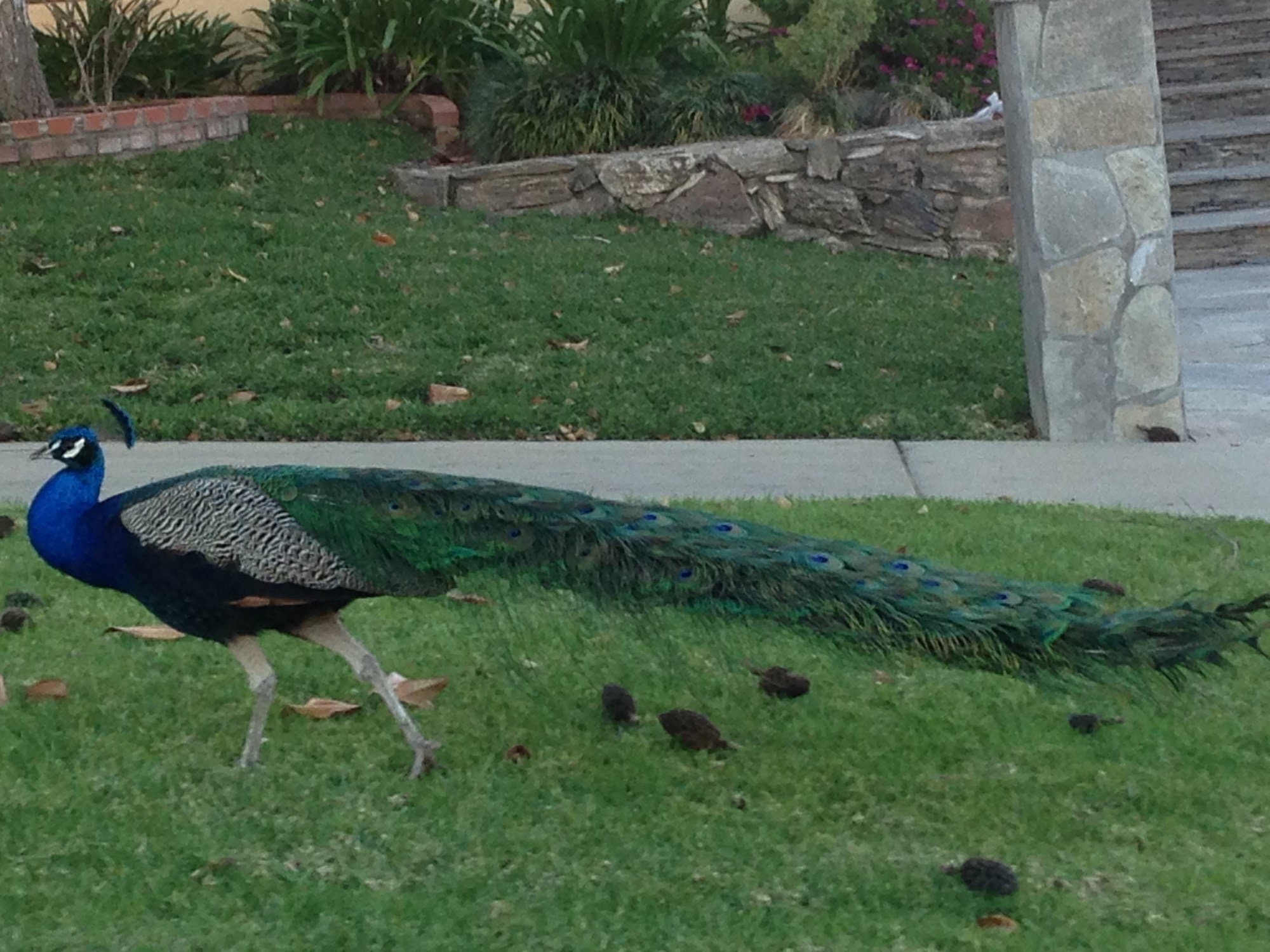 March 19, 2014 Wild Peacocks On my way home, I saw the Wild Peacocks that live in our neighborhood. They cry like big babies. They hang out by the curb at dawn and at dusk. They’re slow and silly. They’re lucky they’re so pretty, else they’d get run over easy. Share this: Email a link to a friend (Opens in new window) Email Share on X (Opens in new window) X Share on Facebook (Opens in new window) Facebook Print (Opens in new window) Print Like Loading... Related