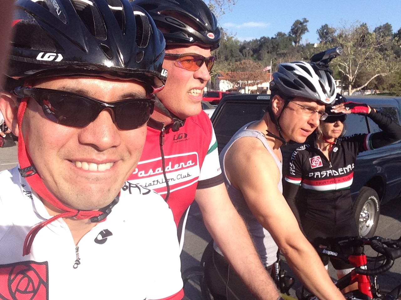 First brick workout of the season. Beautiful day. Great weather. Started at Rose Bowl. 2 laps at friendly speed. Then, 4 more laps as fast as you can. Sun went down as we packed up the bikes and ran around the Brookside Golf Course. I cut it short to make it to my daughter’s softball game.