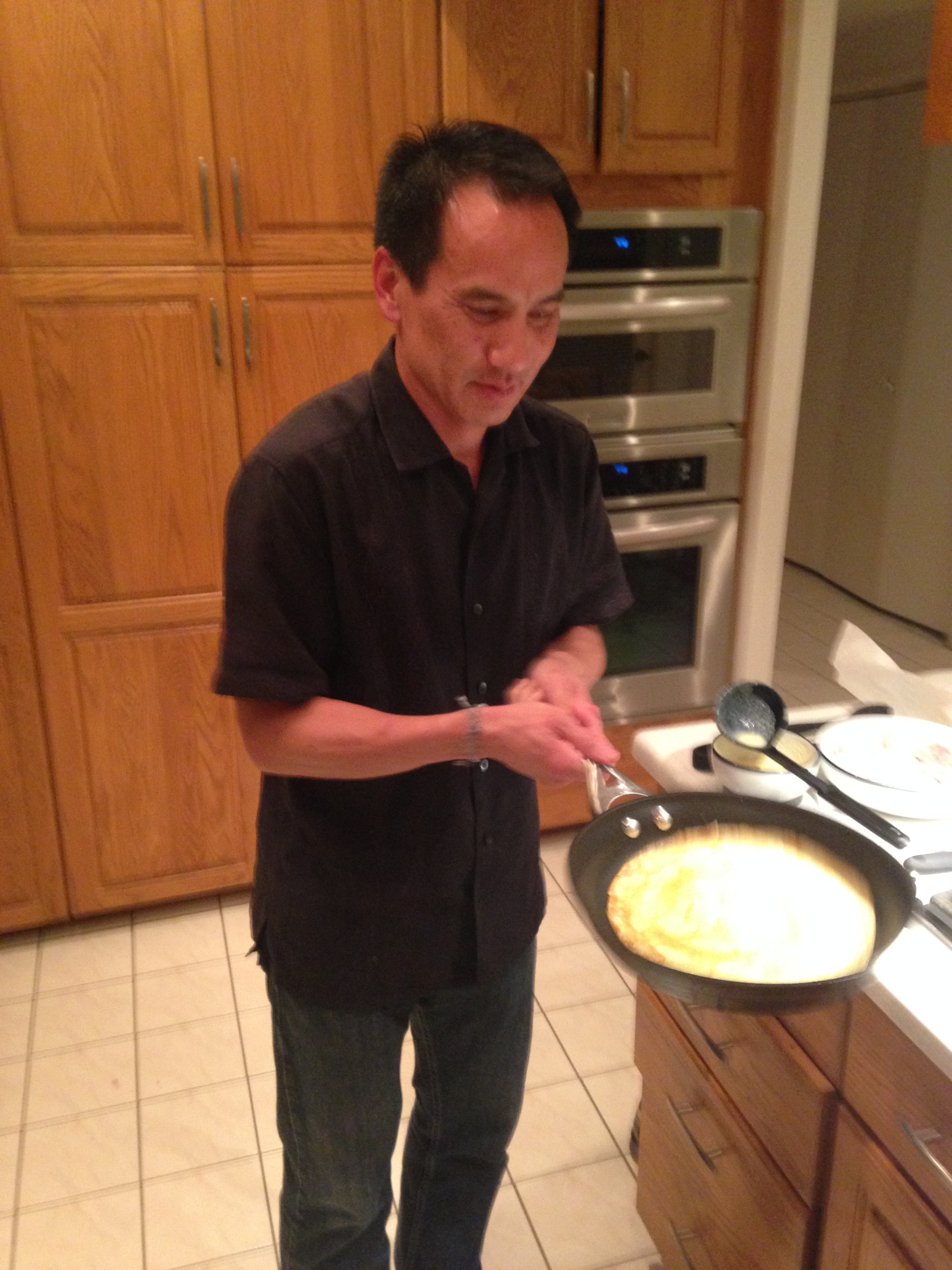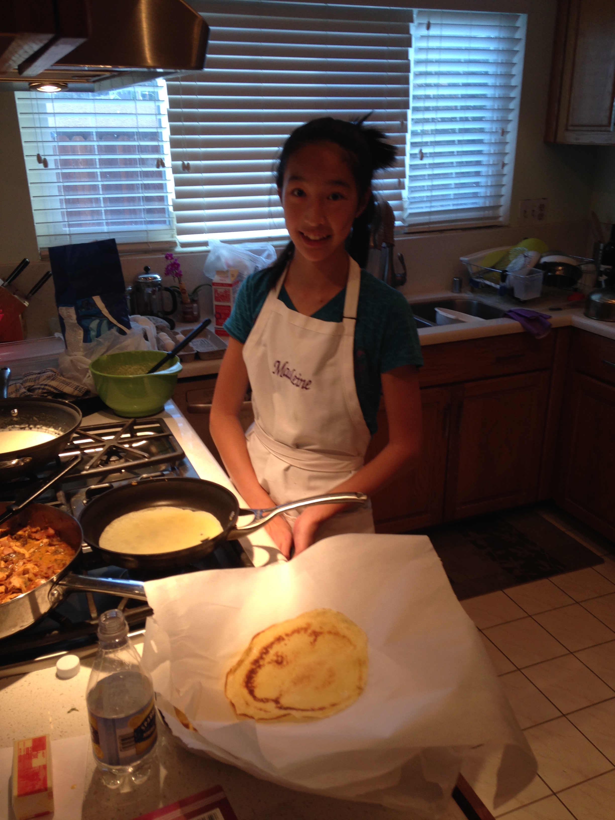 We cooked Savory Crepes with Creamy Chicken, Ham and Mushrooms. I found a recipe from foodnetwork.com by Emeril Lagasse. Recipe here.