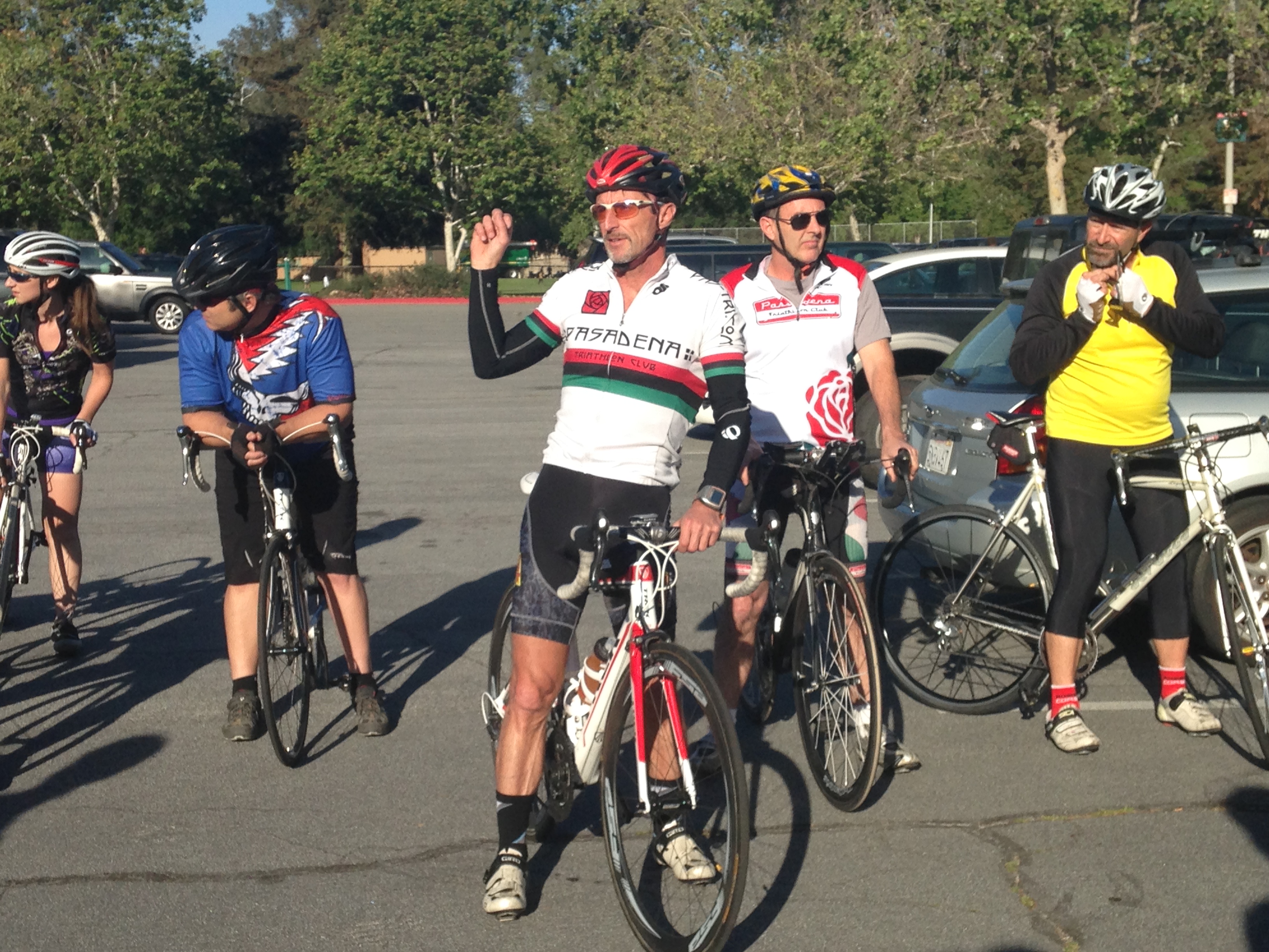 Charlie and Billy from my office joined us tonight. I hung with them and took them on an easier route with less hills to Descanso Gardens.