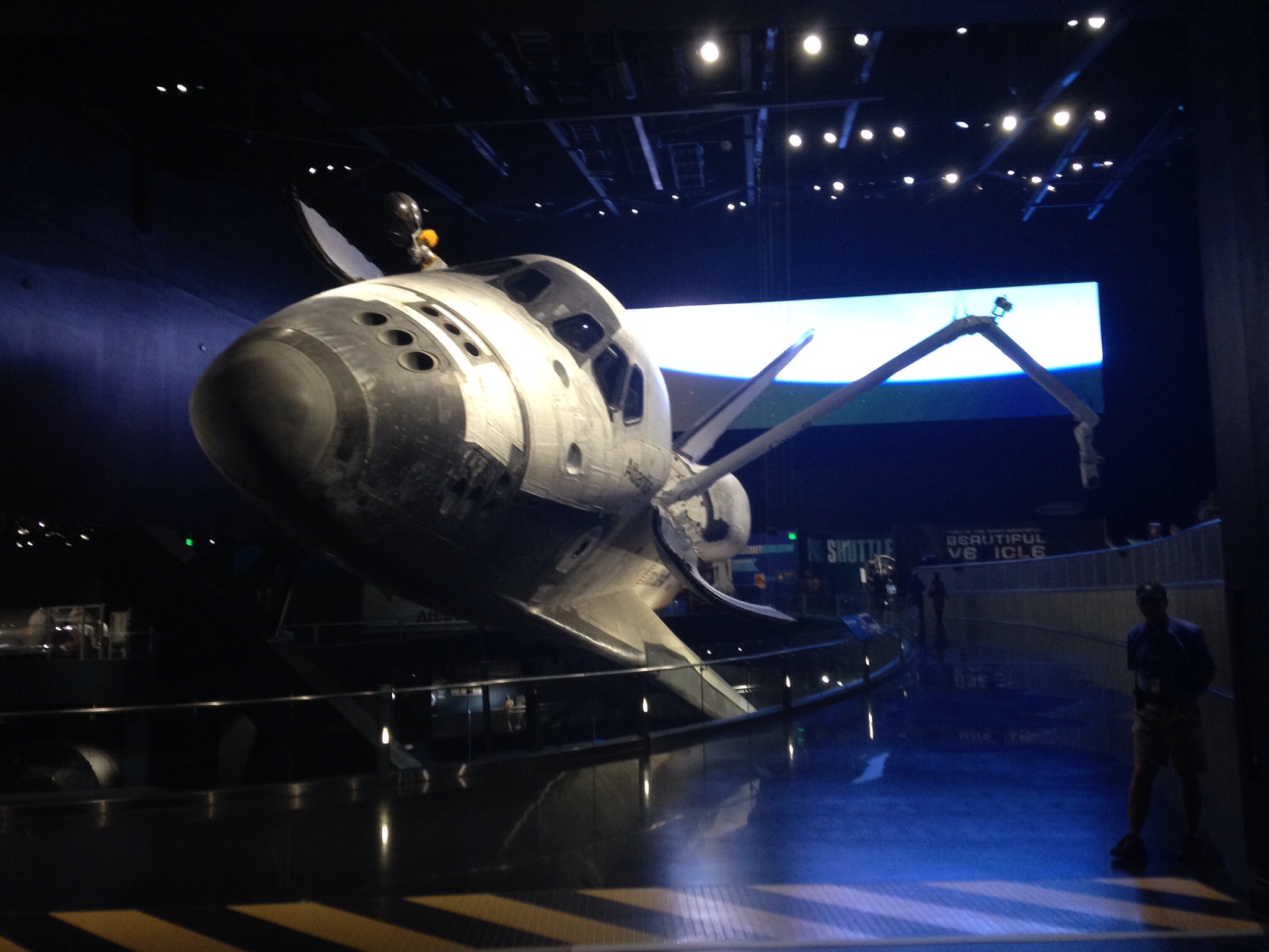 Walked through the Space Shuttle Atlantis Pavilion. That was really fun to see too. The building is awesome movie, intro, BIG REVEAL to the shuttle. Shuttle is flying at you when you enter.