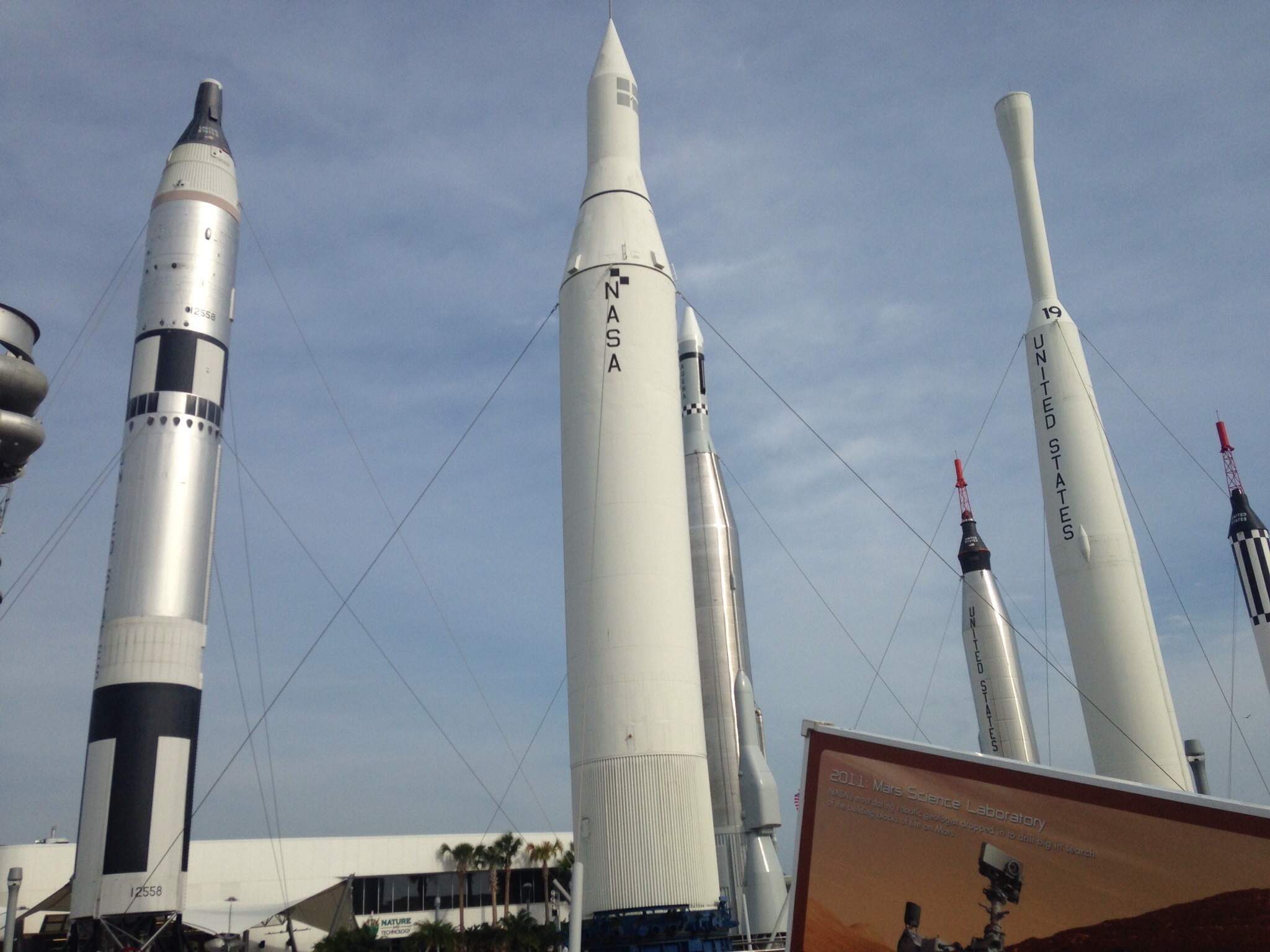 I’m in Orlando for a conference for work. Spent the whole day on Monday flying. Landed with a couple hours of daylight. Alex and I sped over to Kennedy Space Center and got a discounted ticket, since it was after 4:30pm. The ride from the airport was fairly rural. Swampy, trees, lakes, puddles. Then over the causeway to the Cape Canaveral. Sun was out. Cloudy rolling in.