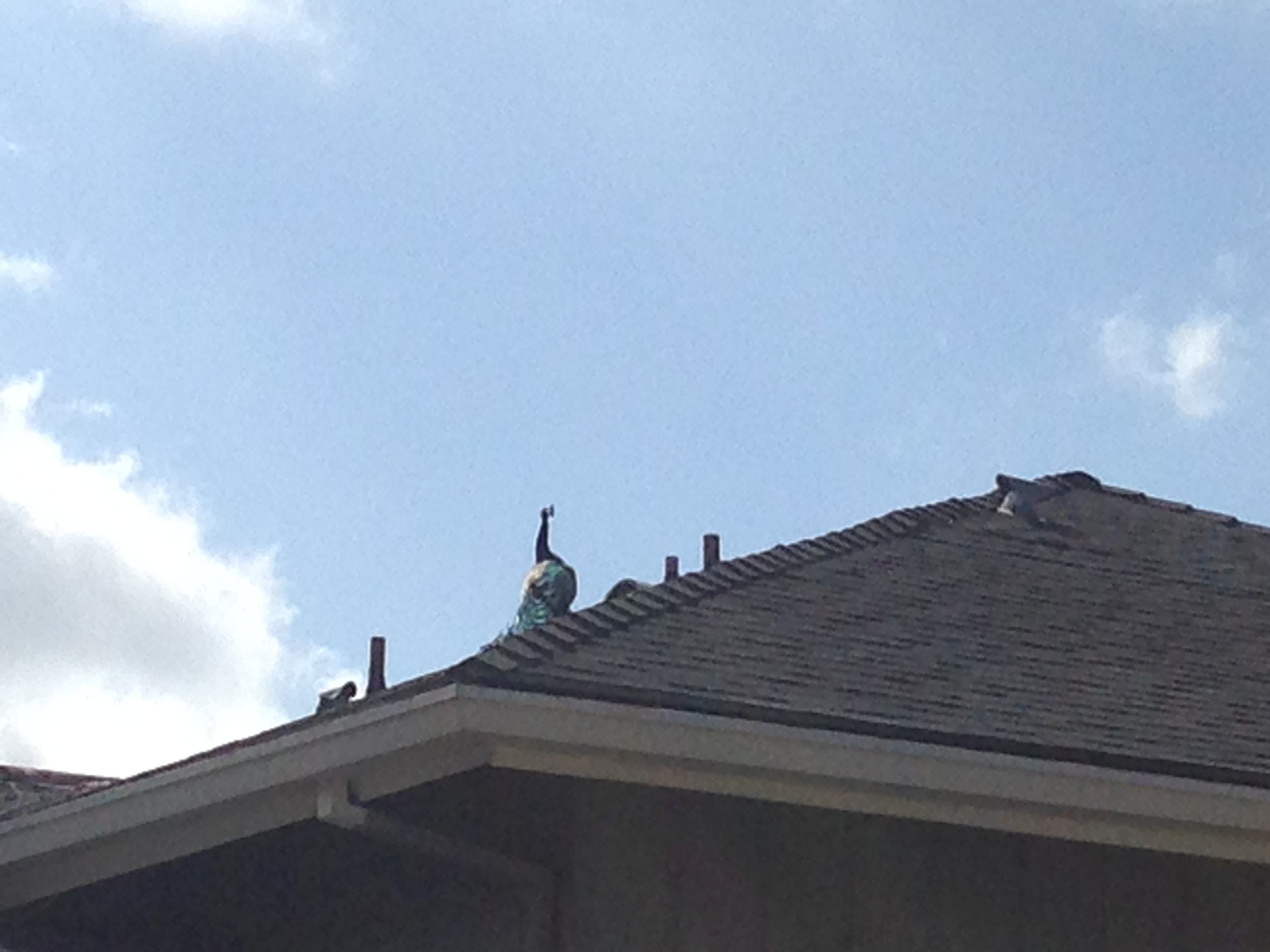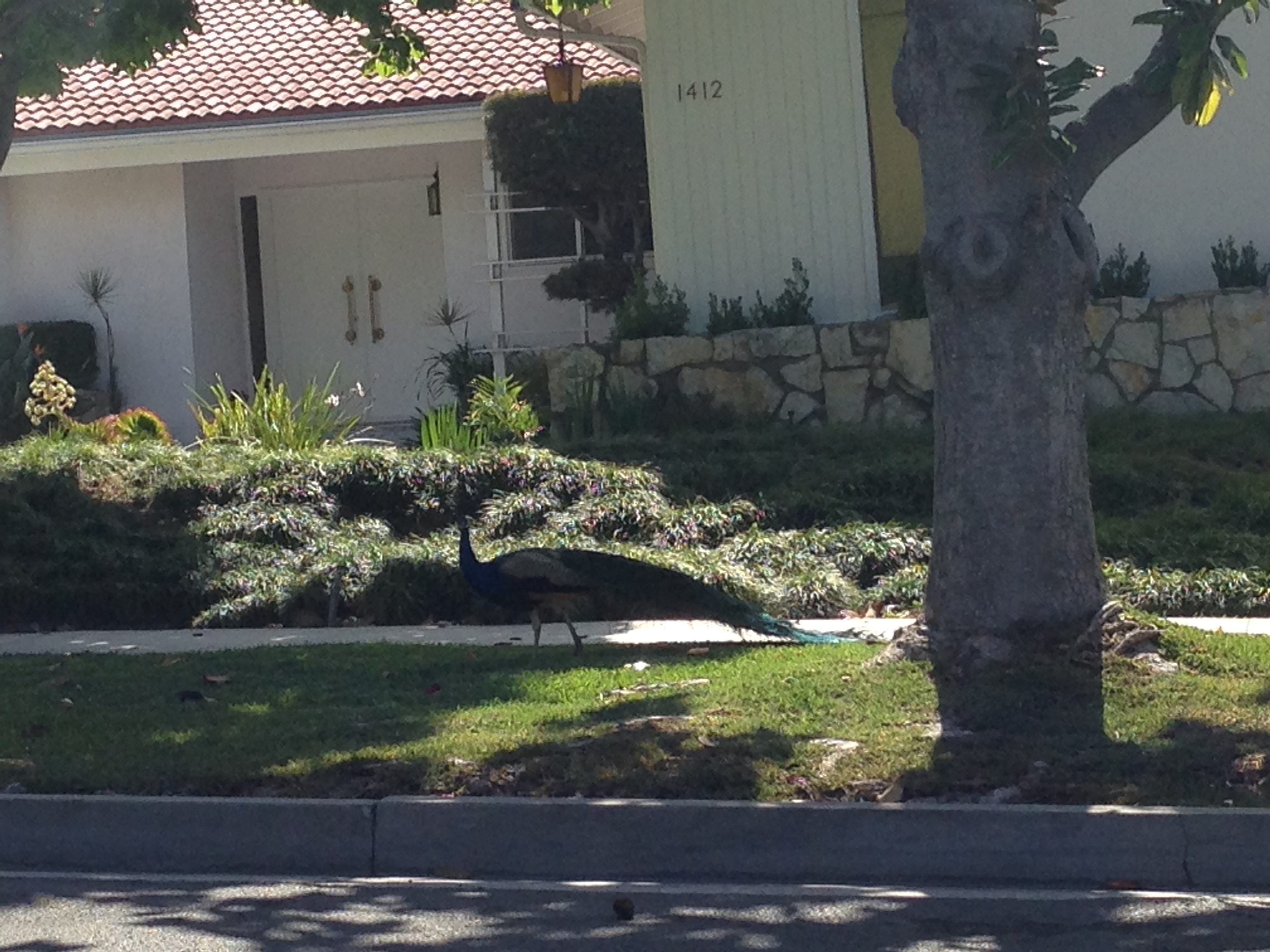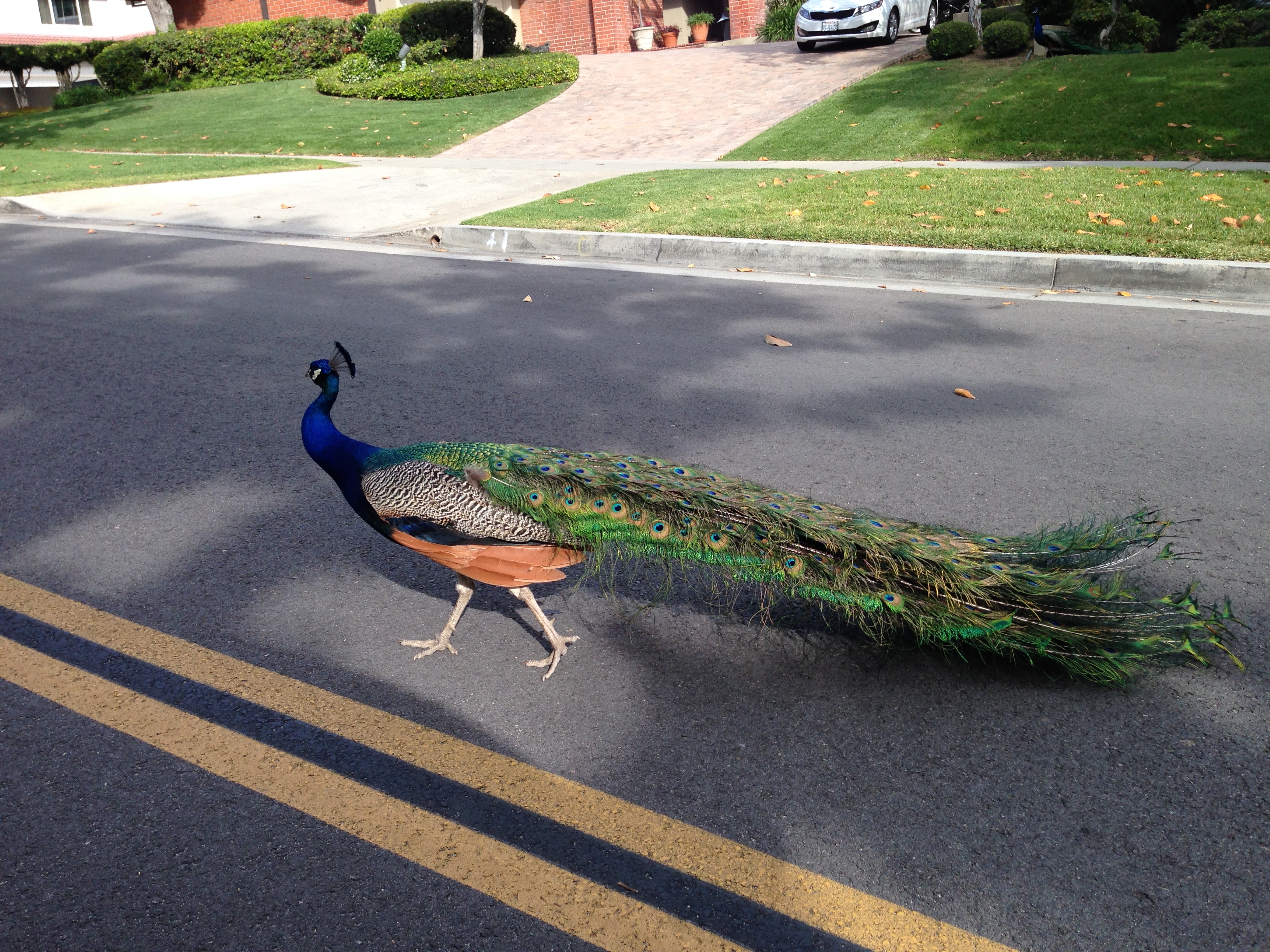 My neighborhood peacocks Petey and his friend Paul were hanging out in the middle of street this weekend. I literally almost ran over Petey. He walks around like he just don’t care. He won’t speed up or fly away. Even if you honk, which I don’t. Rather, I pull up next to him and take a picture. My kids roll their eyes at me now.