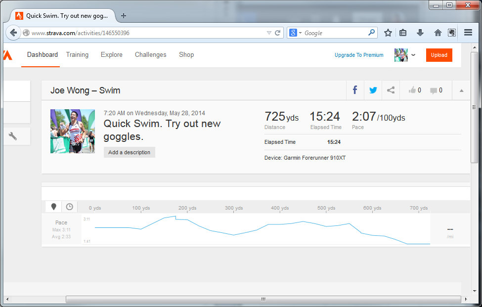 Short quick swim at Rose Bowl Aquatic Center. I added the swim cuz it was such a beautiful morning. I added it cuz my run really sucked. I added the swim, cuz I was taking a shower at the locker room anyway. I added the swim cuz I wanted to try out my new goggles and make sure they didn’t leak. They kinda leaked, so I’ll try swapping the nose bridge piece, for the smaller one.