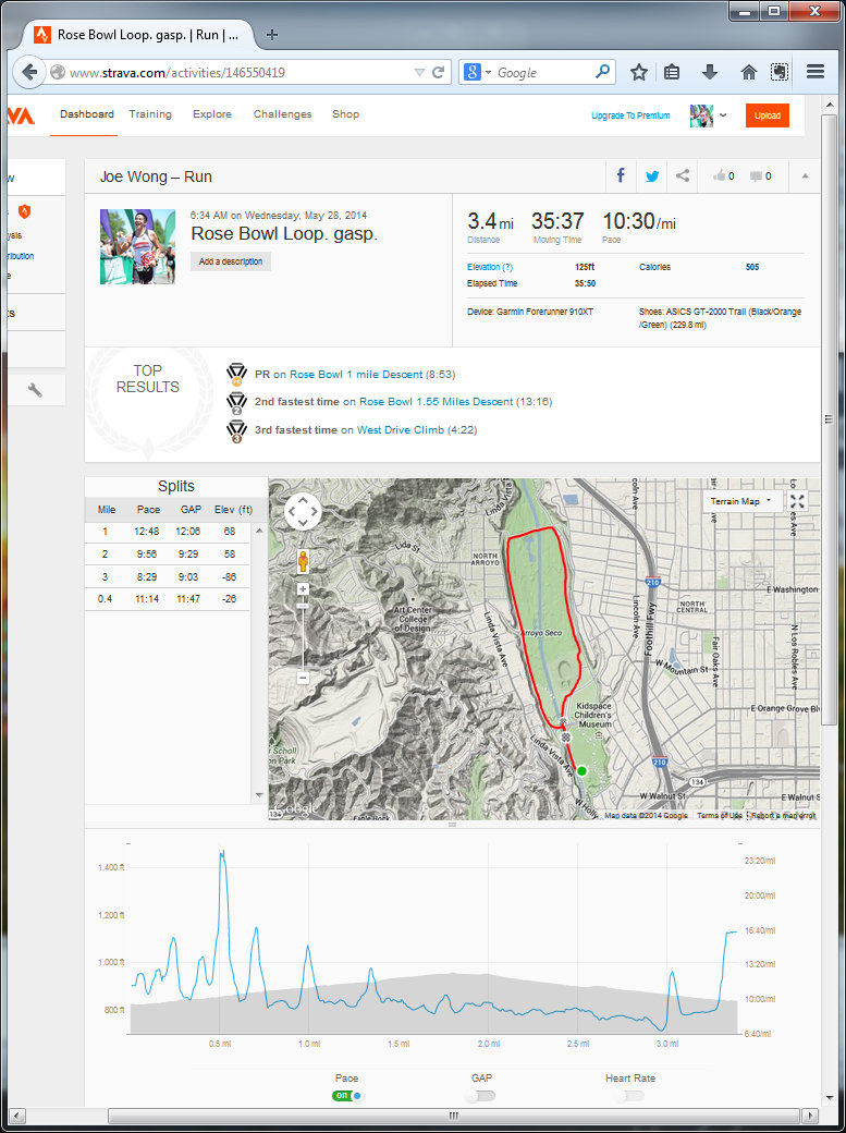 Morning Run around the Rose Bowl. Kinda sucked. Legs felt heavy and slow.
