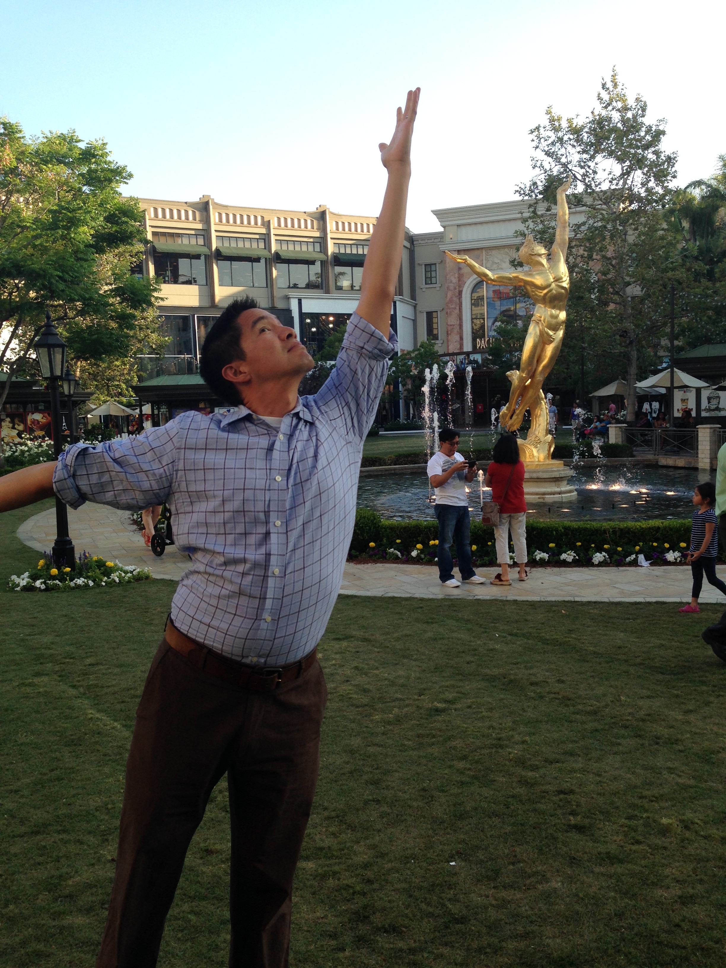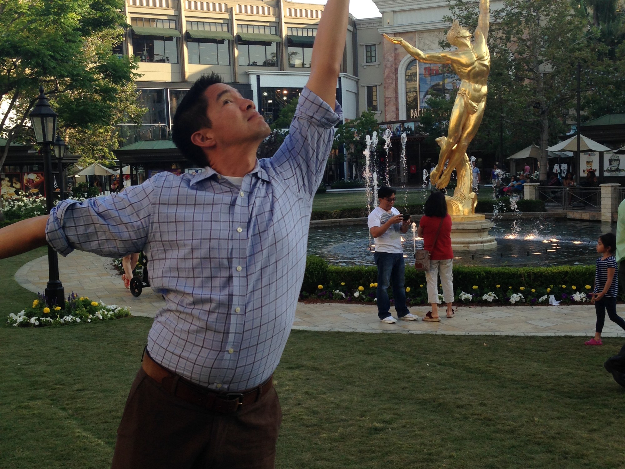 My daughter needed a dress for 8th grade promotion, so we went shopping at Glendale’s Americana at Brand. The parking structure is kinda fancy pants. And I think I resemble the fountain guy. Nah, just kidding. I enjoy embarrassing my kids.