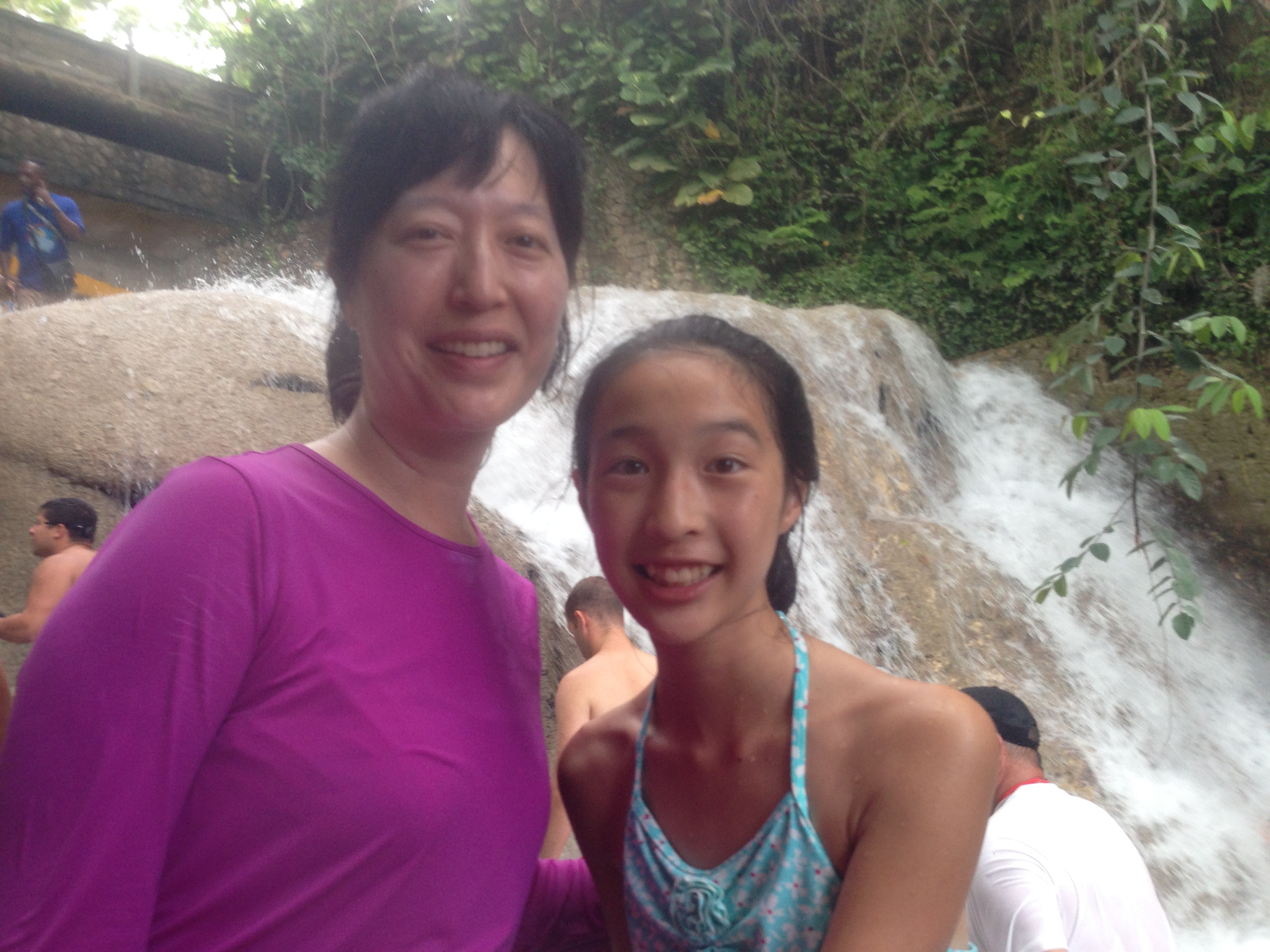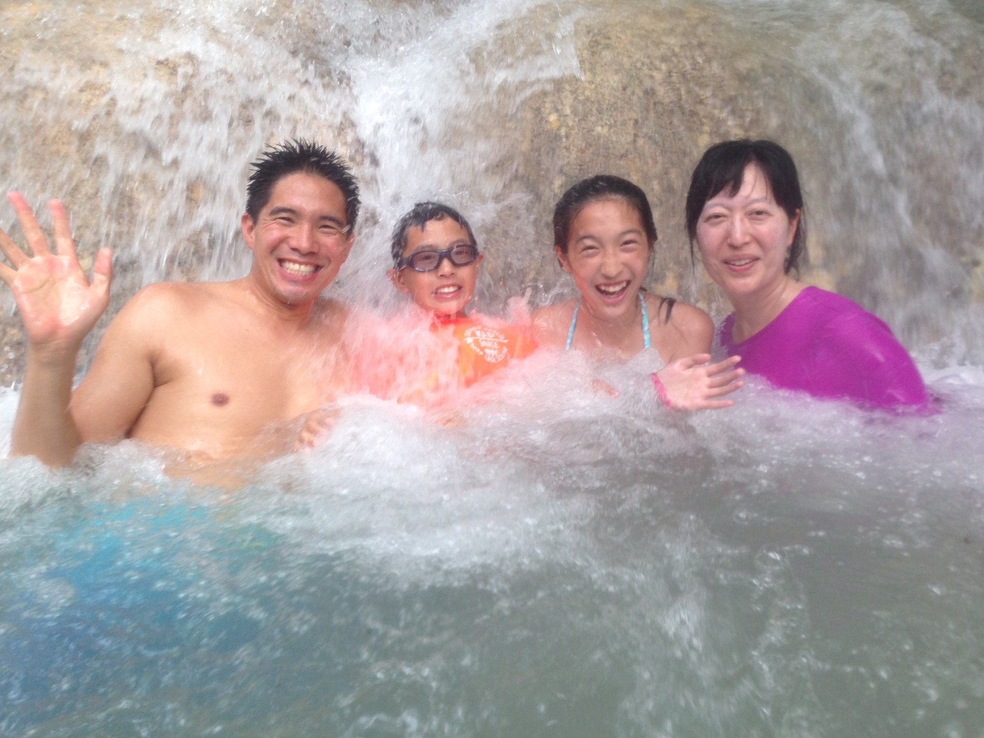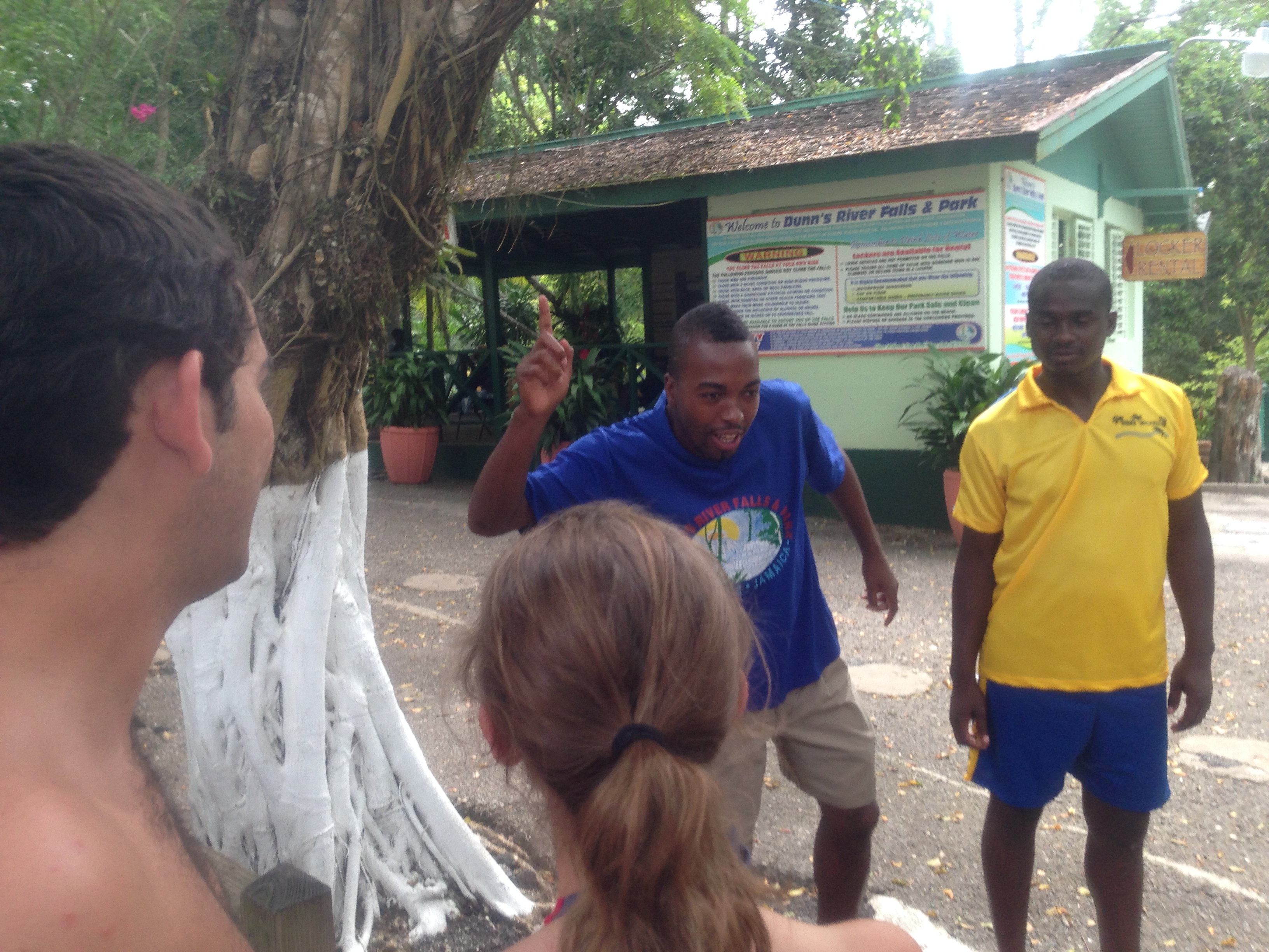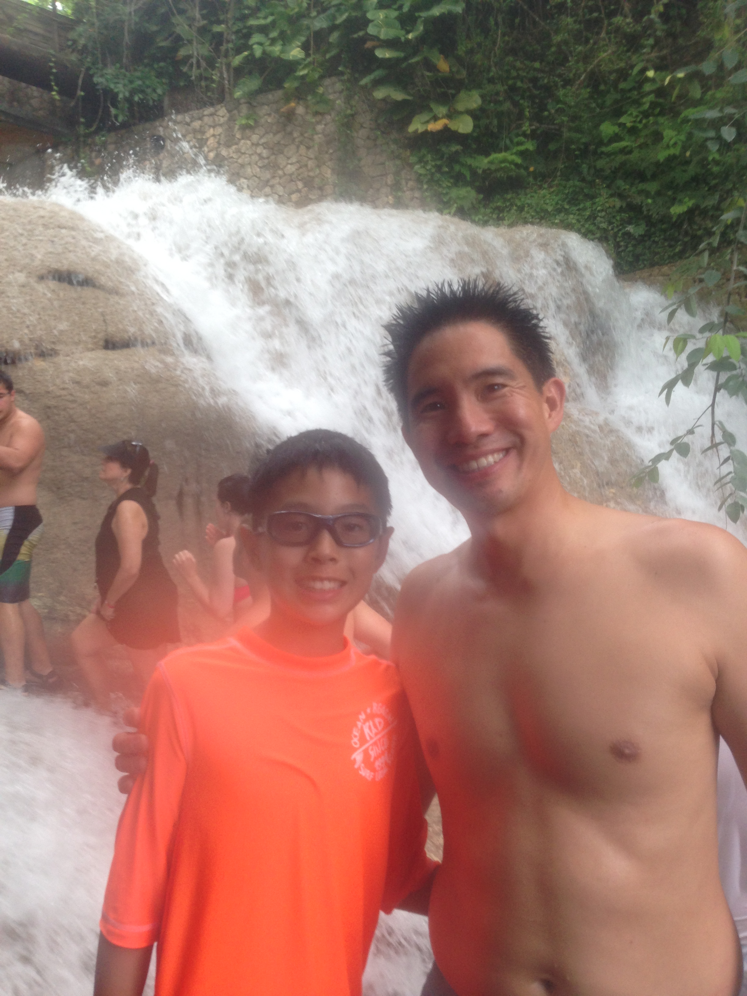 Bus ride to the Dunn River Falls. Guides were hilarious. They made the whole climb really fun. Lots of energy. Melbourne and Chuck (?). It’s a very popular tourist attraction. There lots of lines of people holding hands following a guide. The rocks were slippery. The guides took lots of pictures and videos. They had everyone cheering and waving. Everybody had lots of fun energy. Braden went down the slide and back flip. BK lost his prescription goggles in the water and the guide swam down 4 times to find it. We have him a big tip.