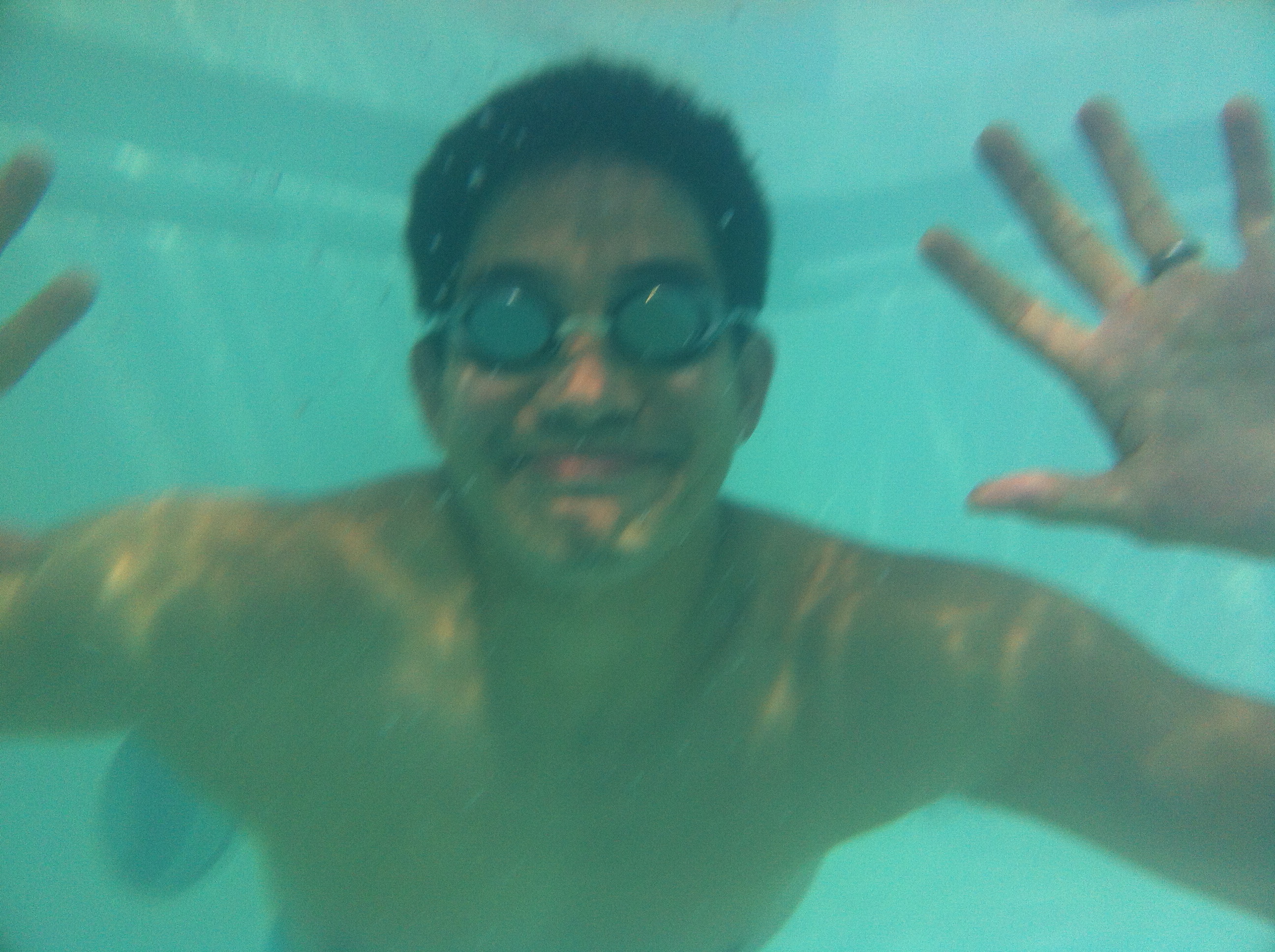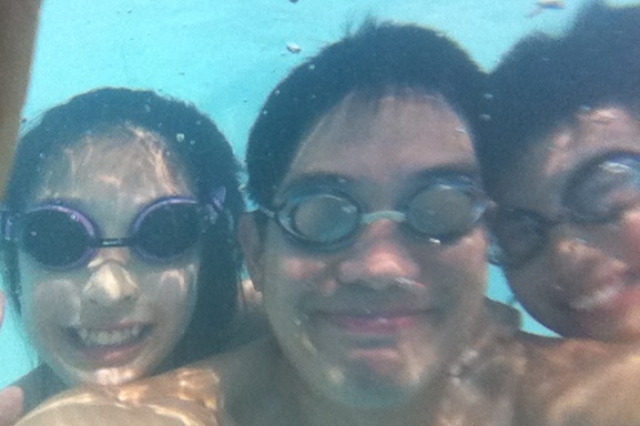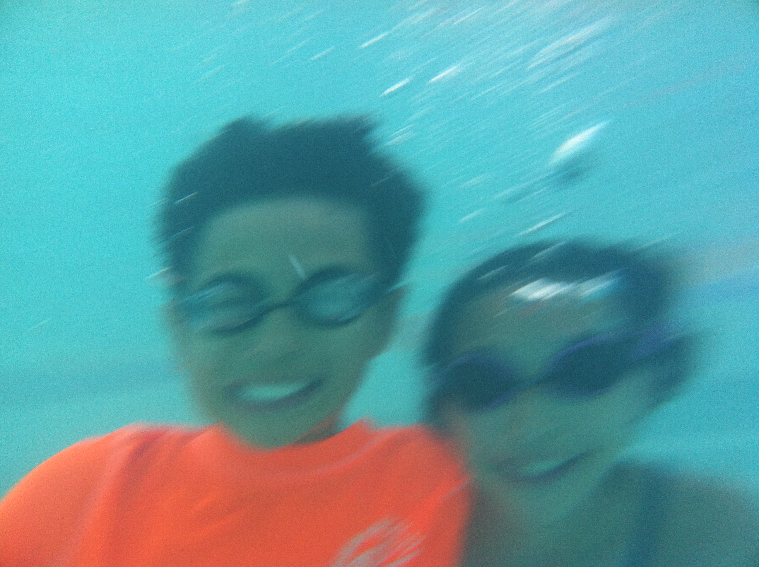 More rock climbing. I made it up the red side. BK made it up 3 times. MM made it up 2 times. Swimming. Took underwater pictures with kids. BK jumped off my shoulders. Short nap.