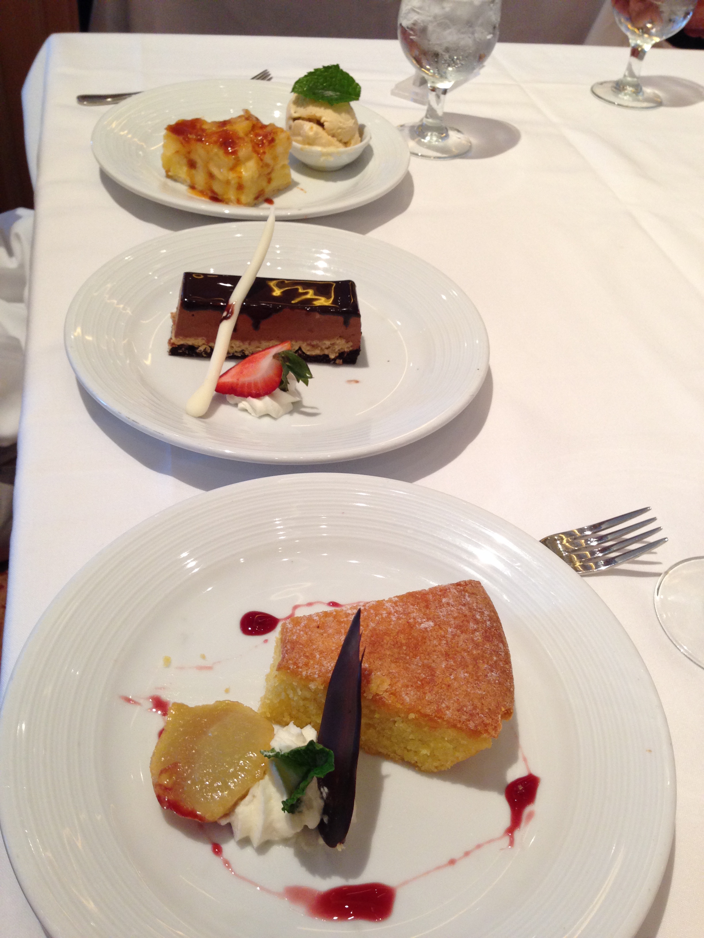 Lunch at sit down Adagio. Fish. 3 desserts.