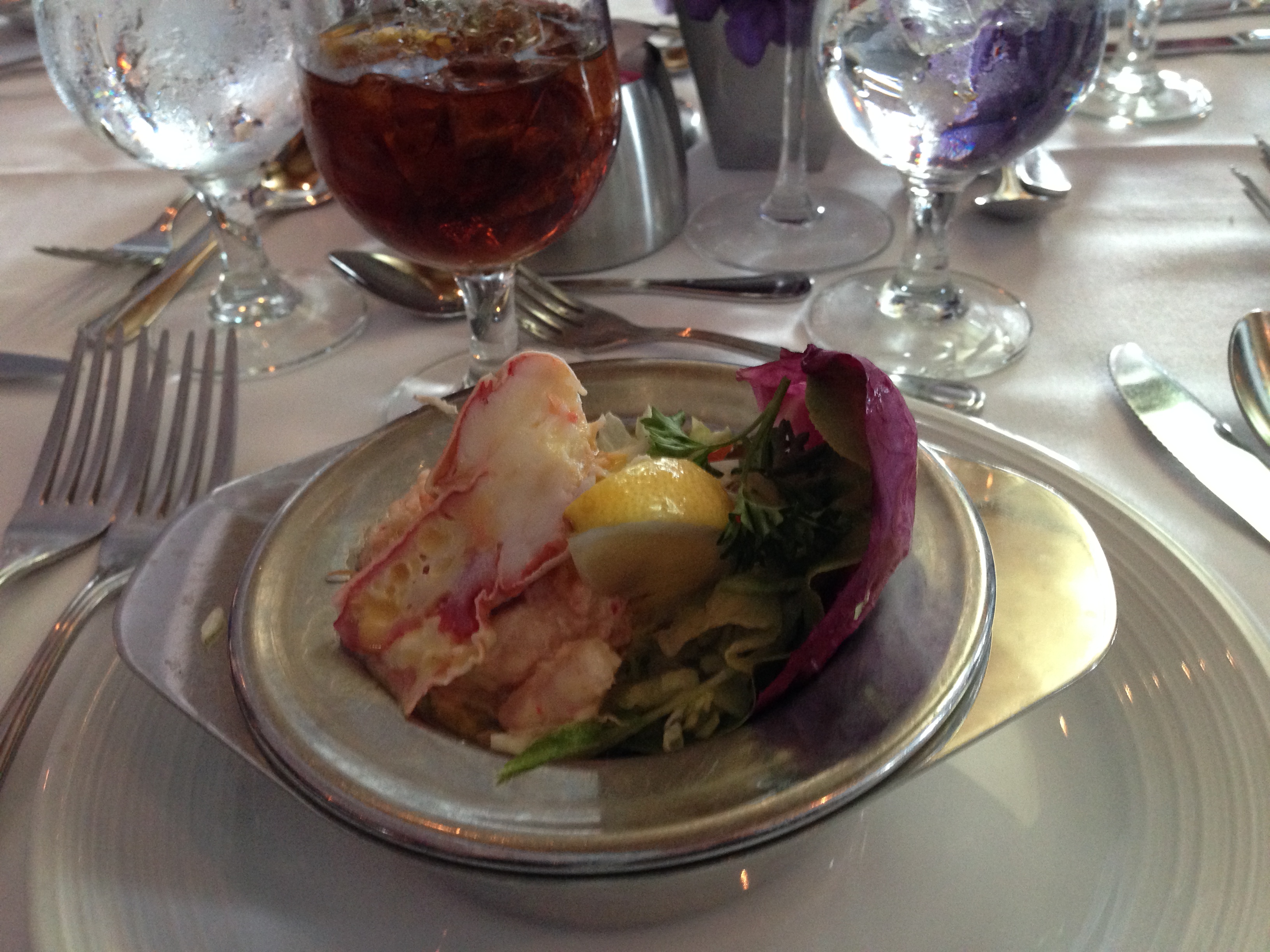 Lobster dinner. Two lobsters each. Our waiter doesn’t speaka too gooda Englese; he’s from Portugal.