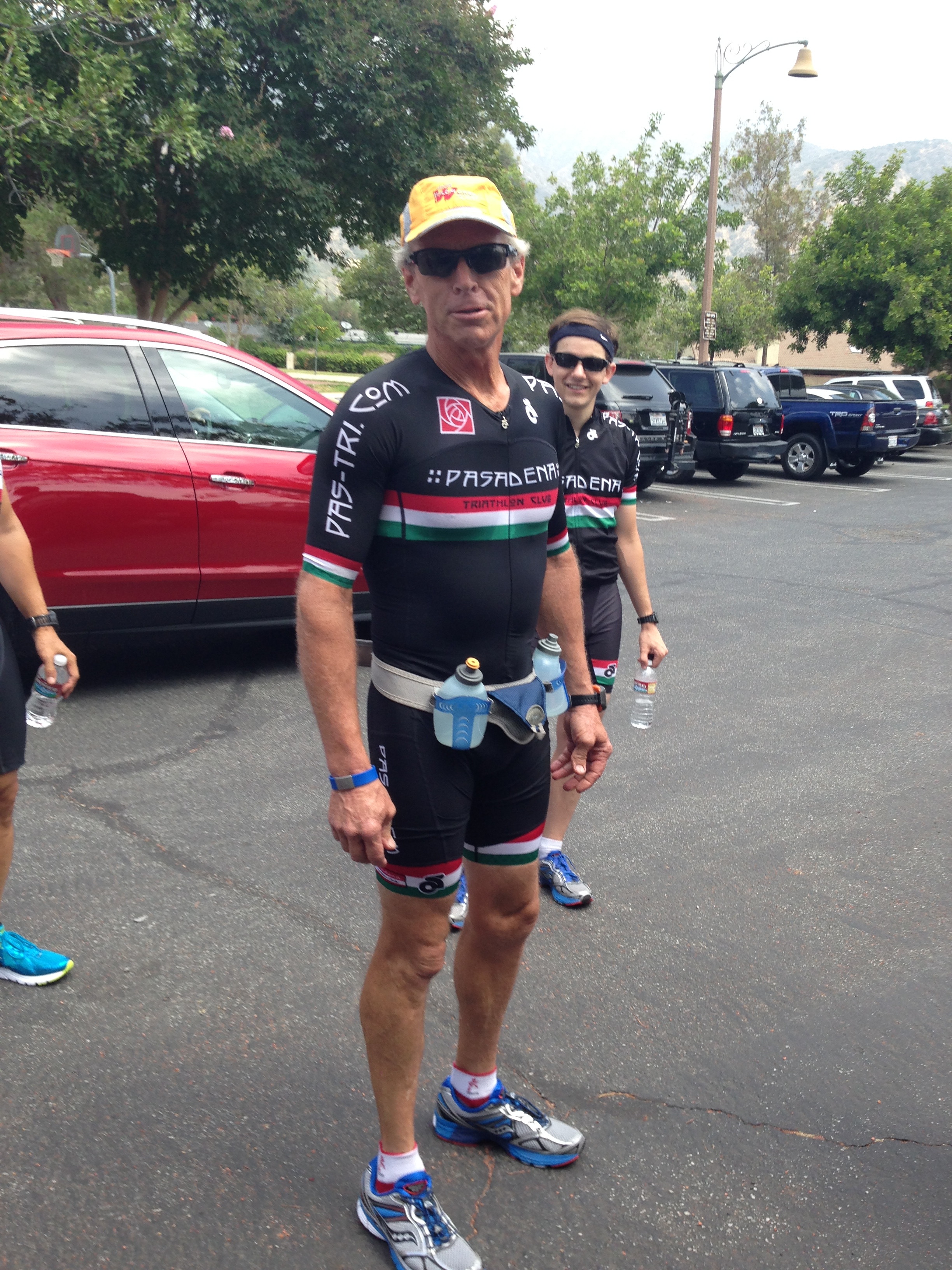 We flipped it at 30 miles and went back. We got back to the cars and transitioned to the run. My energy was not so great, so I had a slow run. Lynda chopped a bird in half. It flew cross wind and didn’t make it through the spokes.
