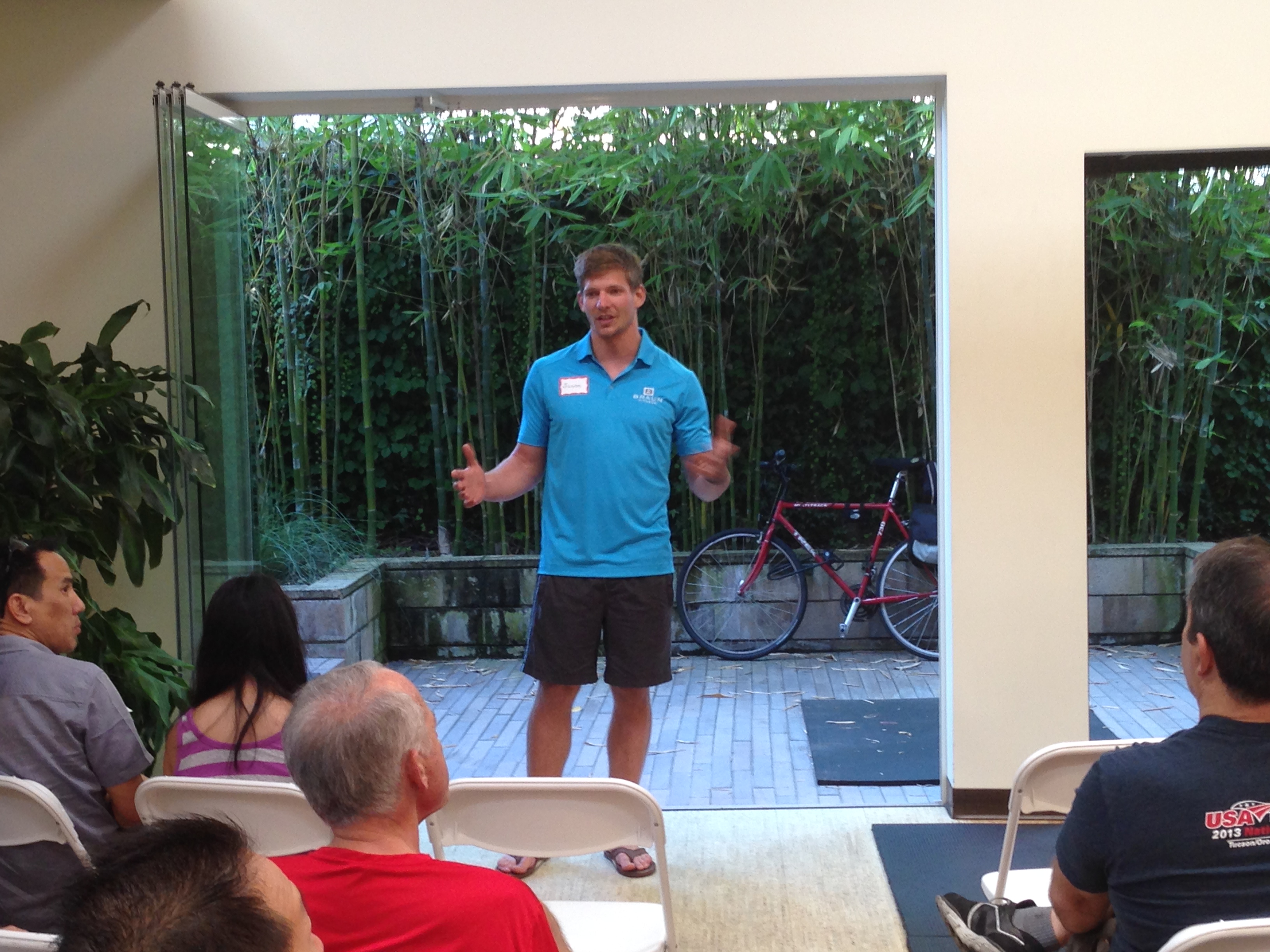 Jason Braun Hosted the PTC meeting at his studio in Pasadena. Jason shared about core fitness. Strength training for triathletes.