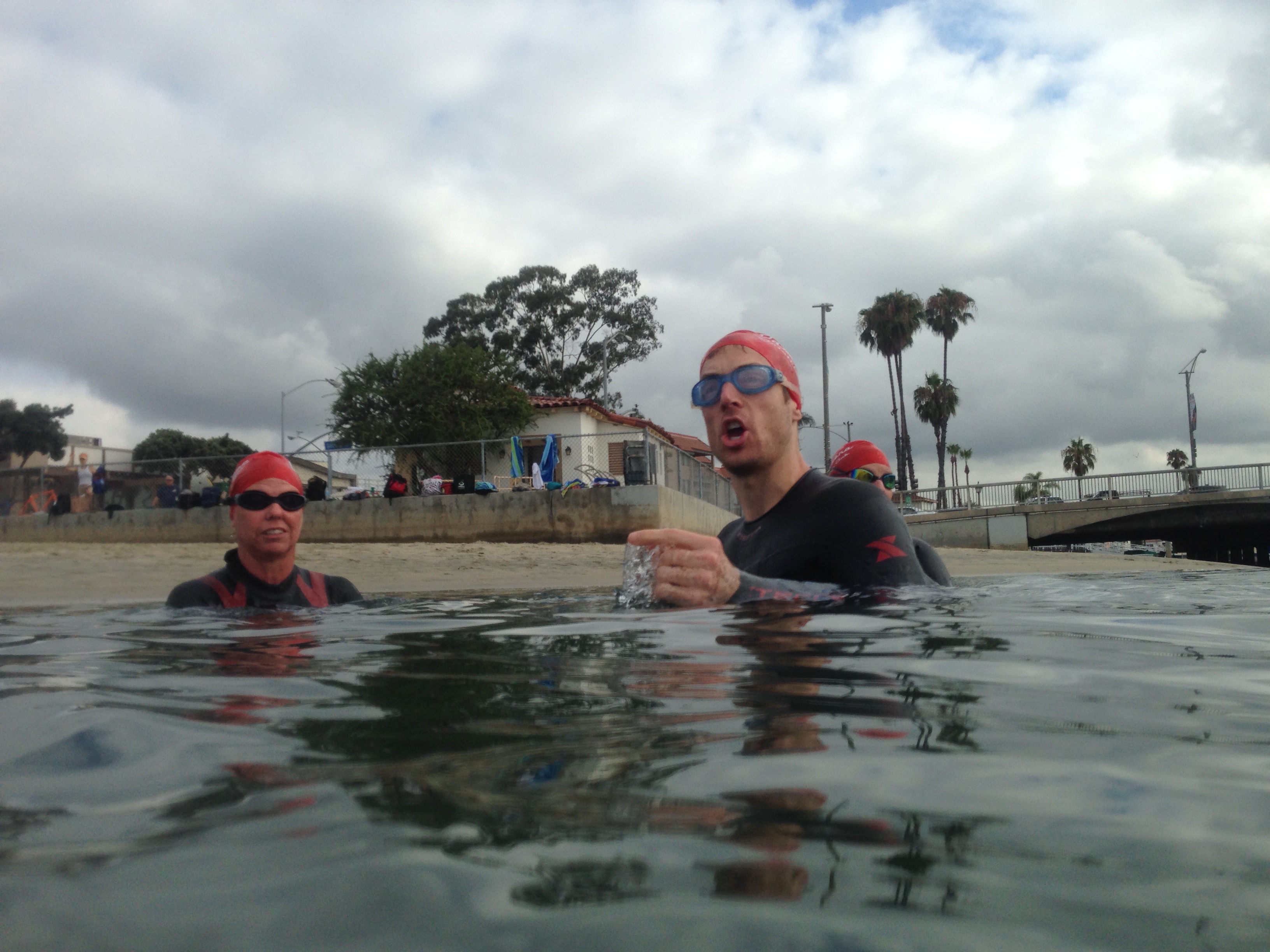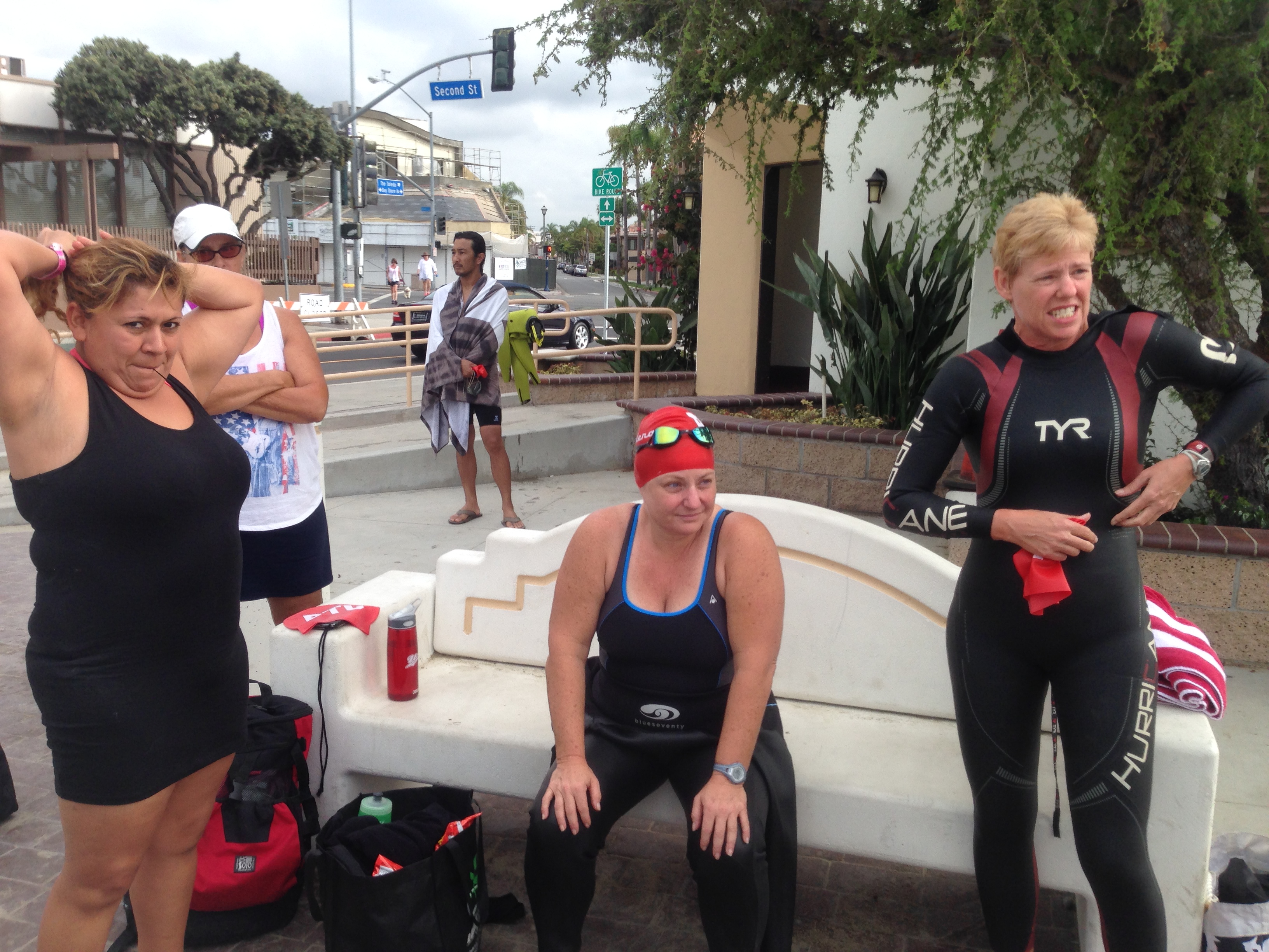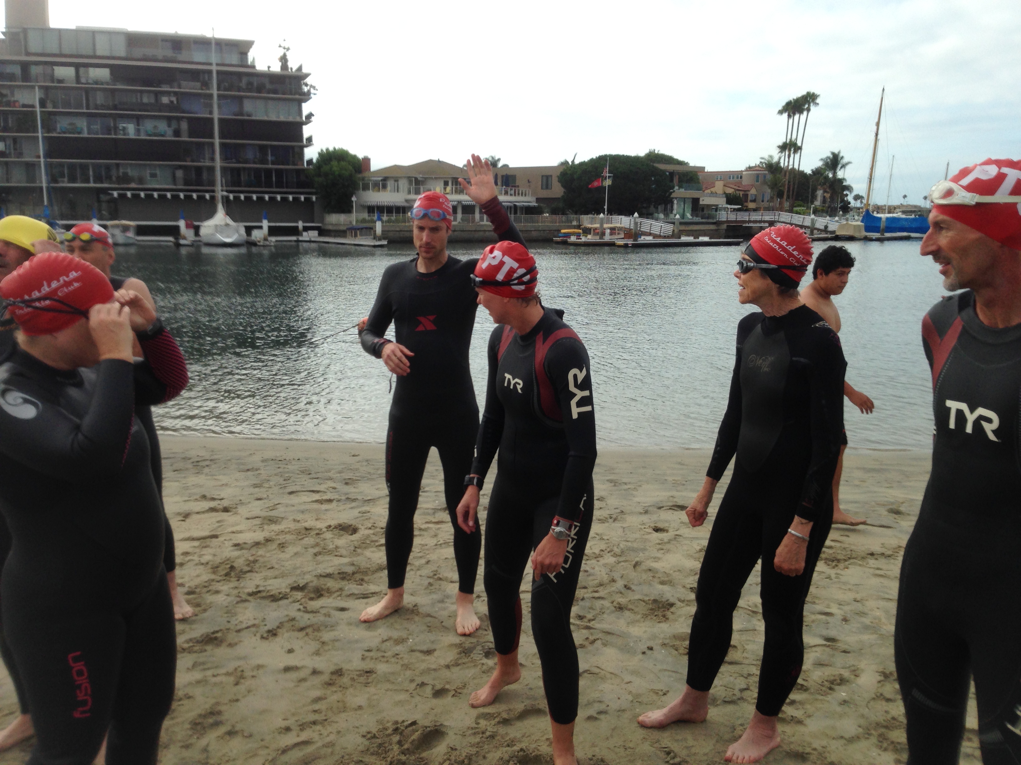 PTC swimmers all had the new swim caps. Looking sharp! Elizabeth, Michel, and Gail led the crew out.