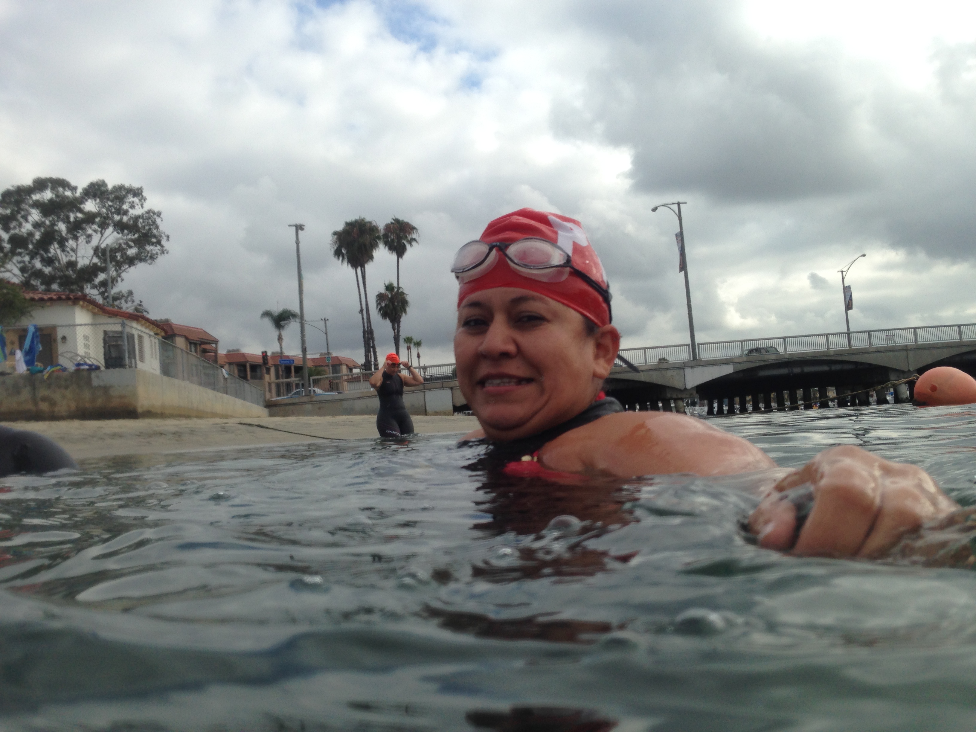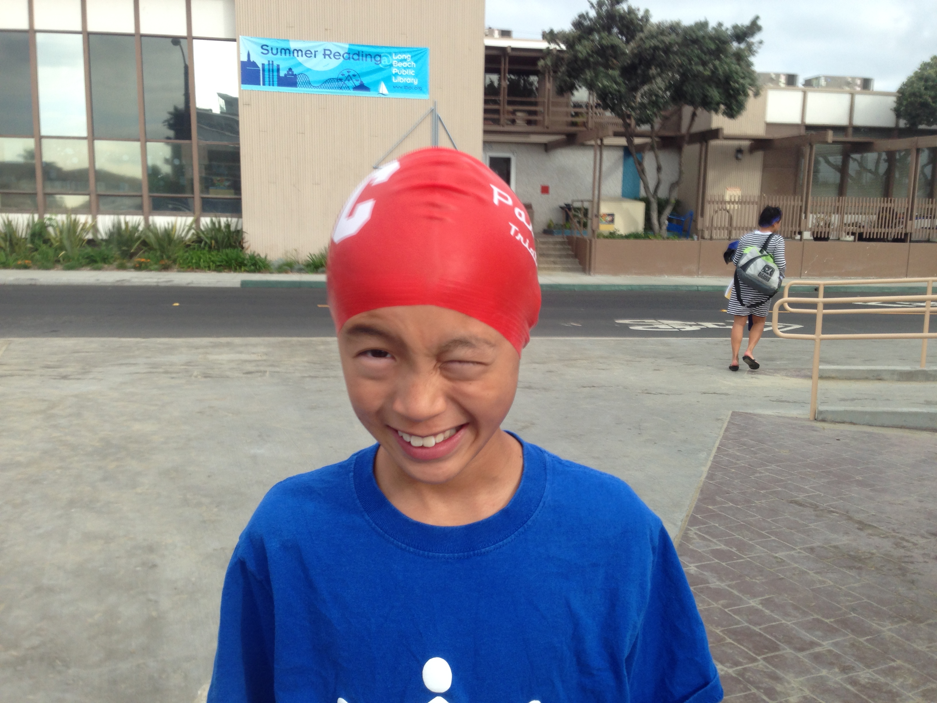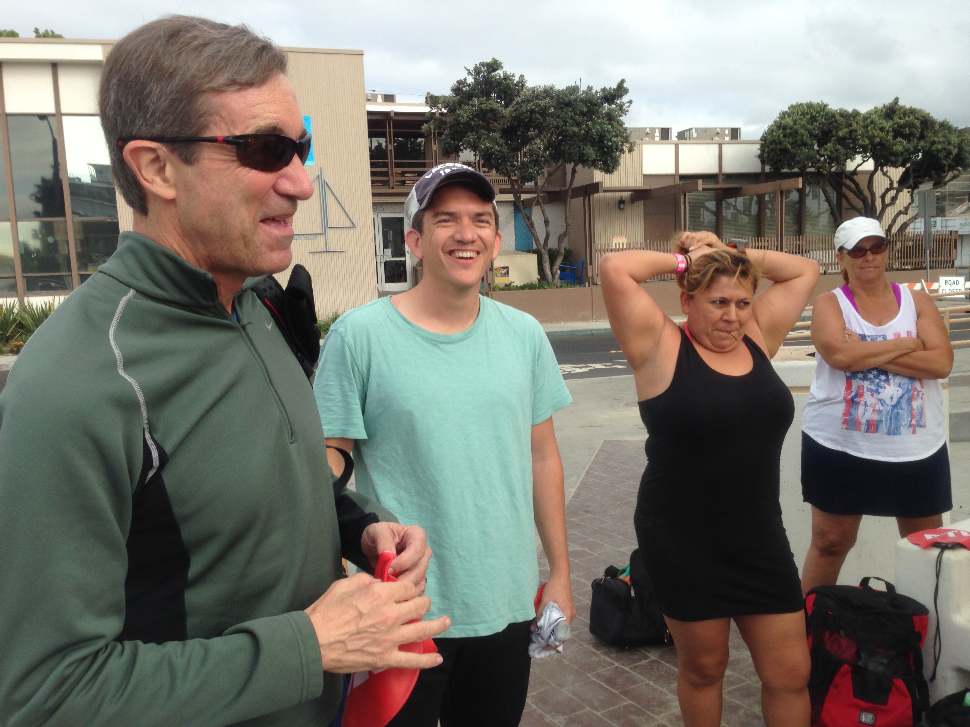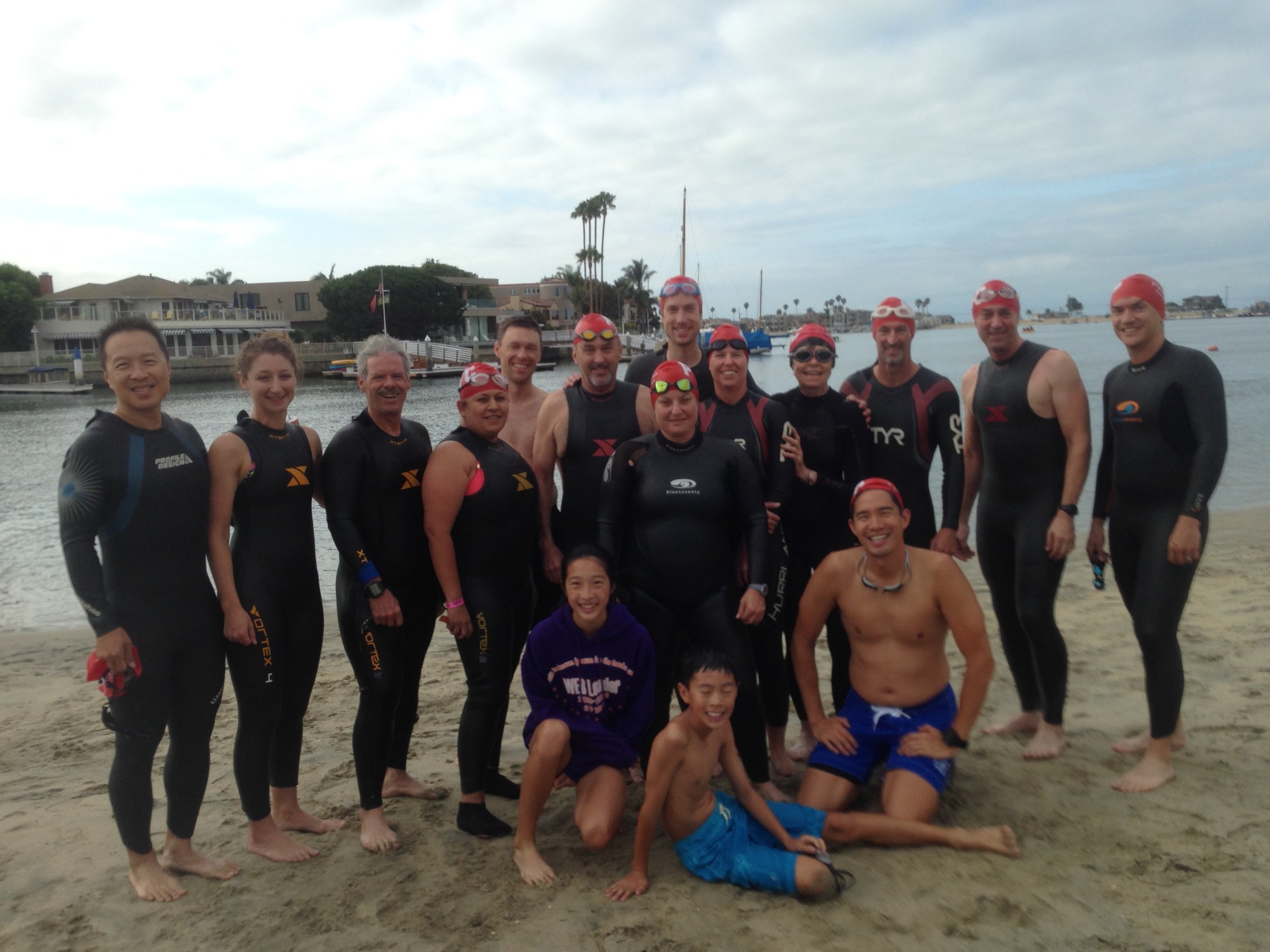 PTC swimmers all had the new swim caps. Looking sharp! Elizabeth, Michel, and Gail led the crew out.