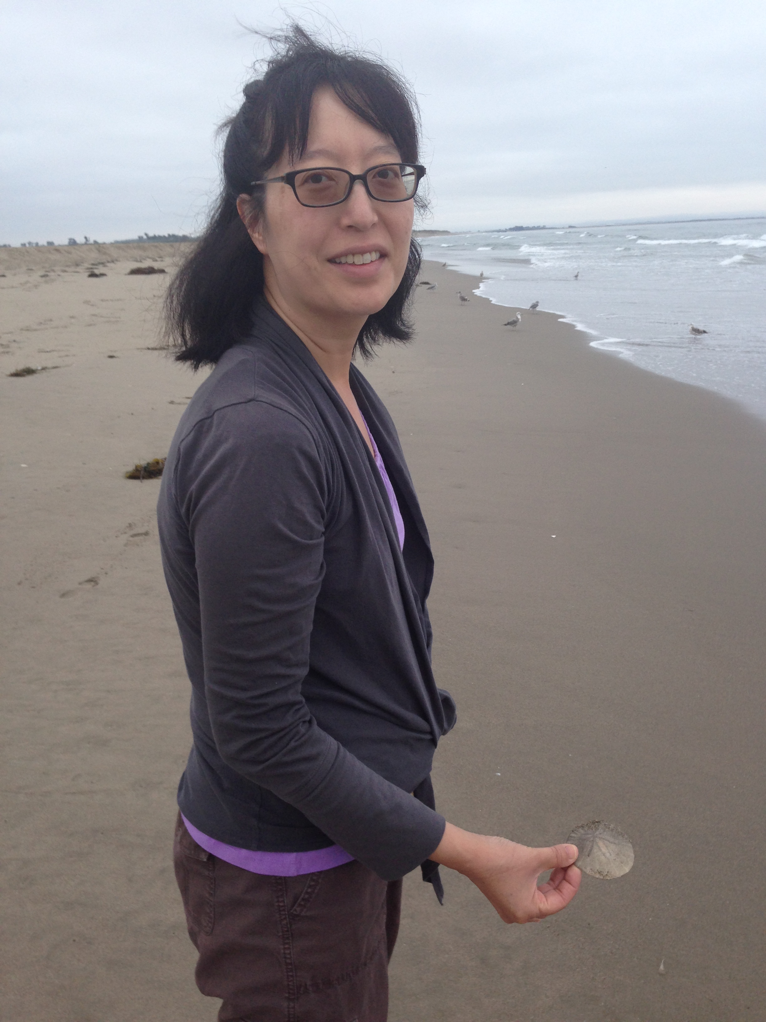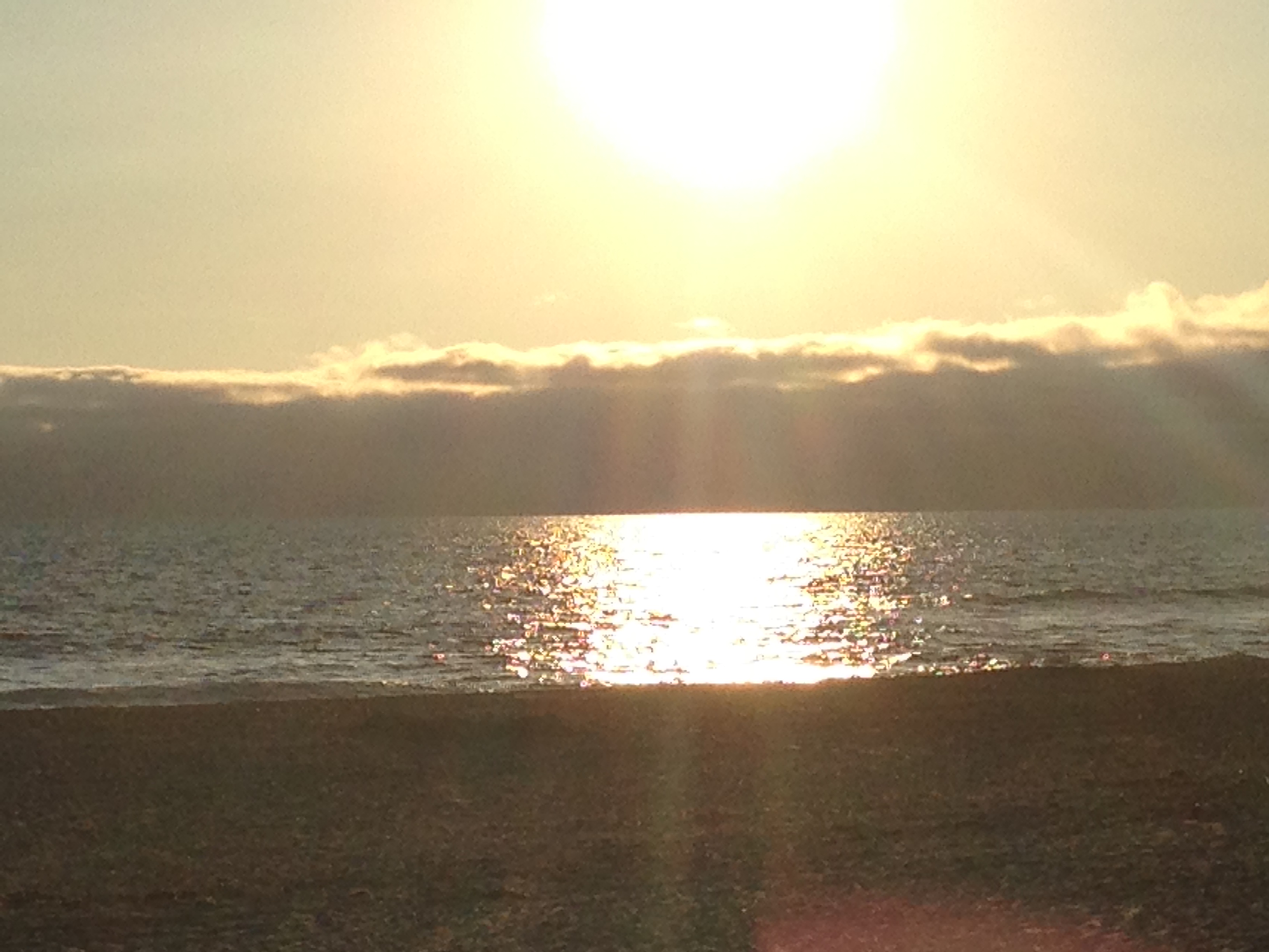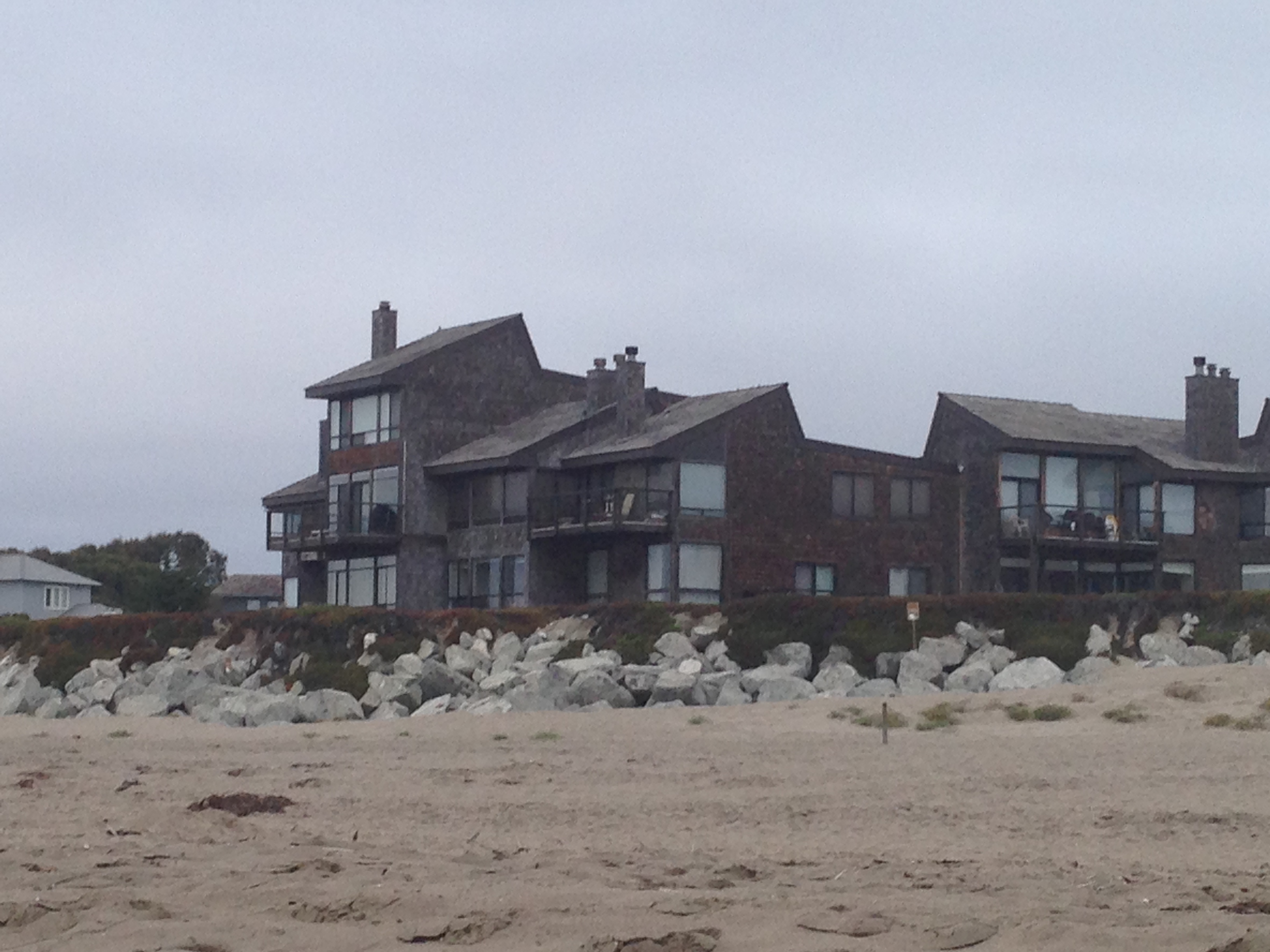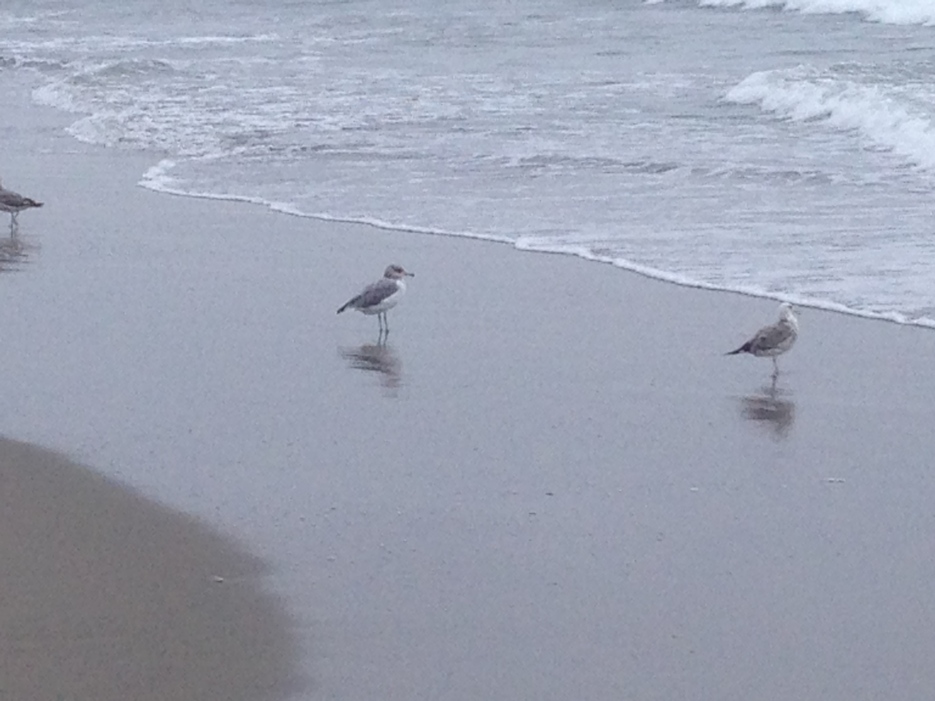 It was cold and cloudy in the morning. My wife and I went for a walk along the beach. There were lots of shells and sand dollars. The water was icy cold.