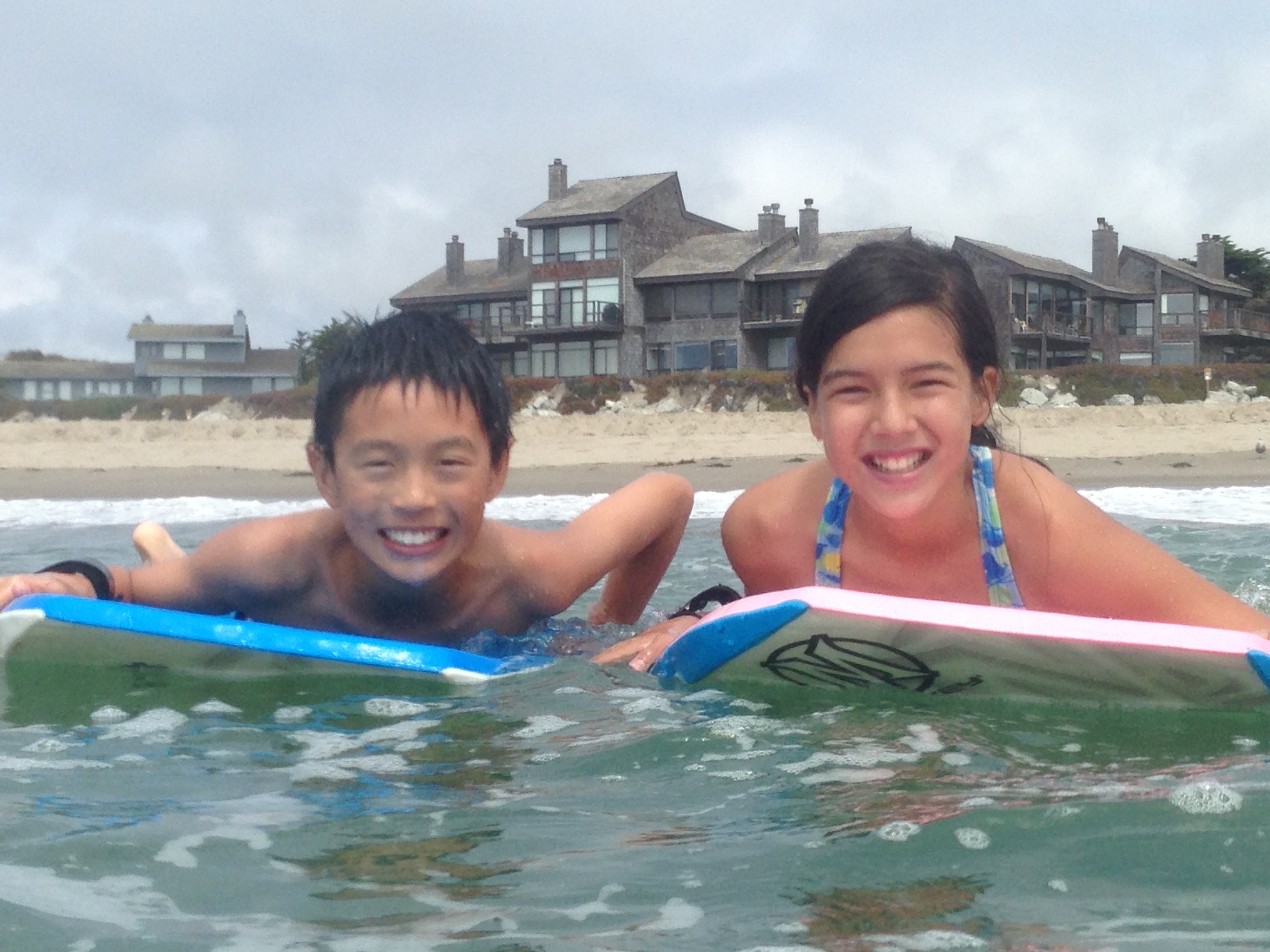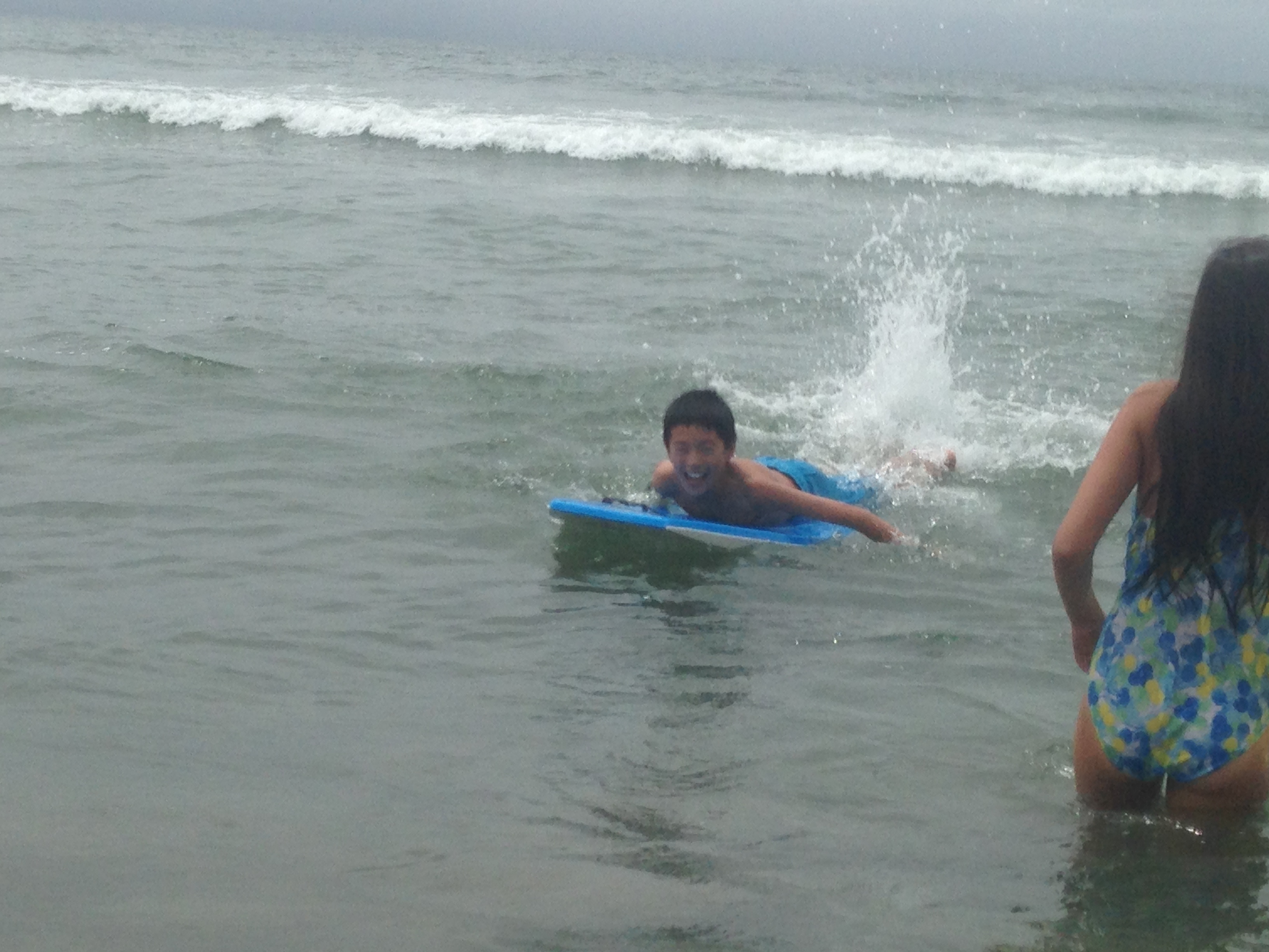 We went boogie boarding in the cold Pacific waters. I ran a mile up and down the beach to warm up.