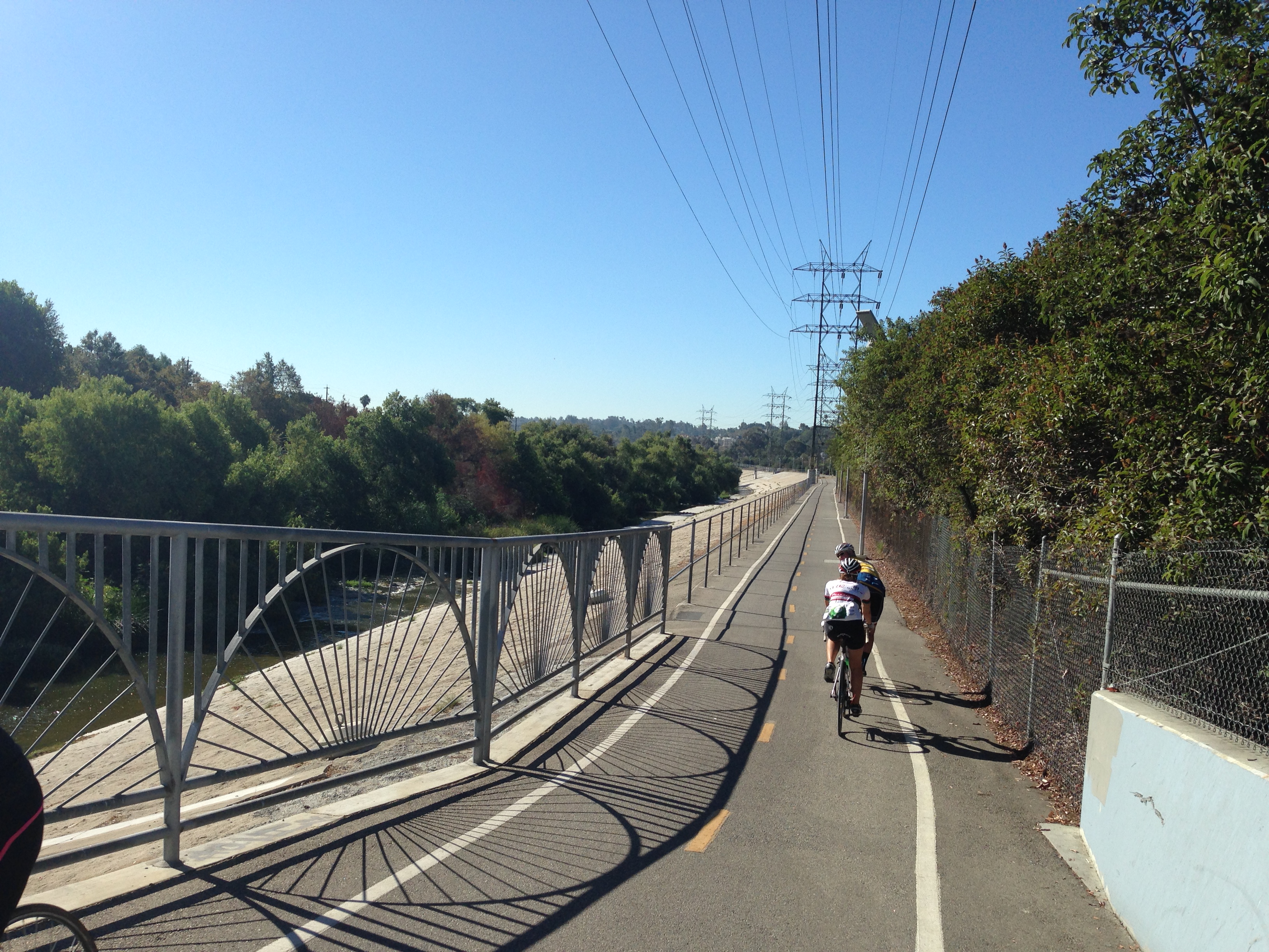 We wound our way through the Hollywood side without hitting Los Felix. Short dirt path to Griffith Park Blvd. We entered the Los Angeles River Trail Bike Path. Rode it to Fletcher Drive and returned home through York.
