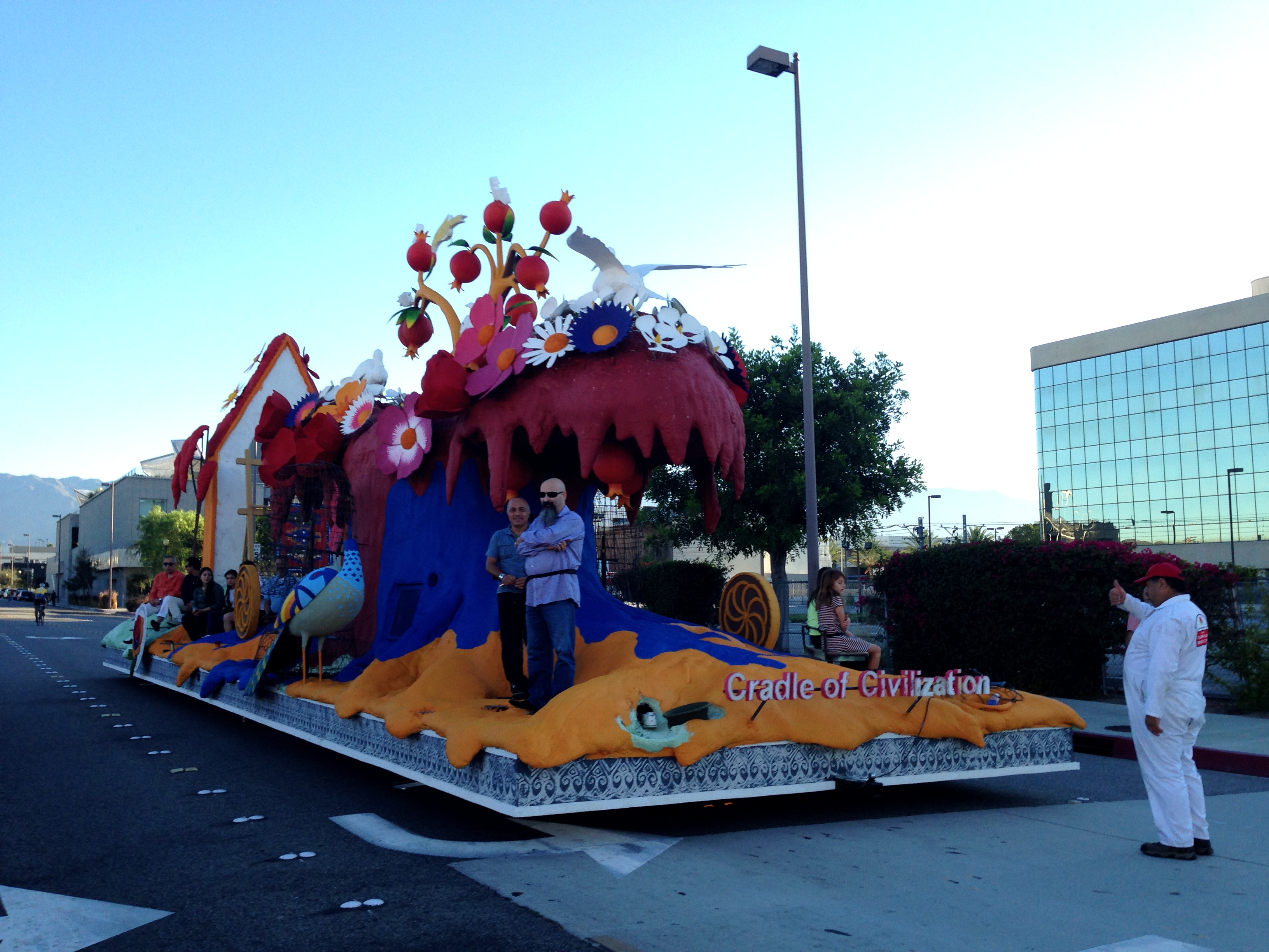 well. not really. but there were floats out for test drives early this morning in Pasadena. It was a safety check before they put all the flowers and stuff on top. Tournament of Roses organizes the New Years Day Parade and Football game.