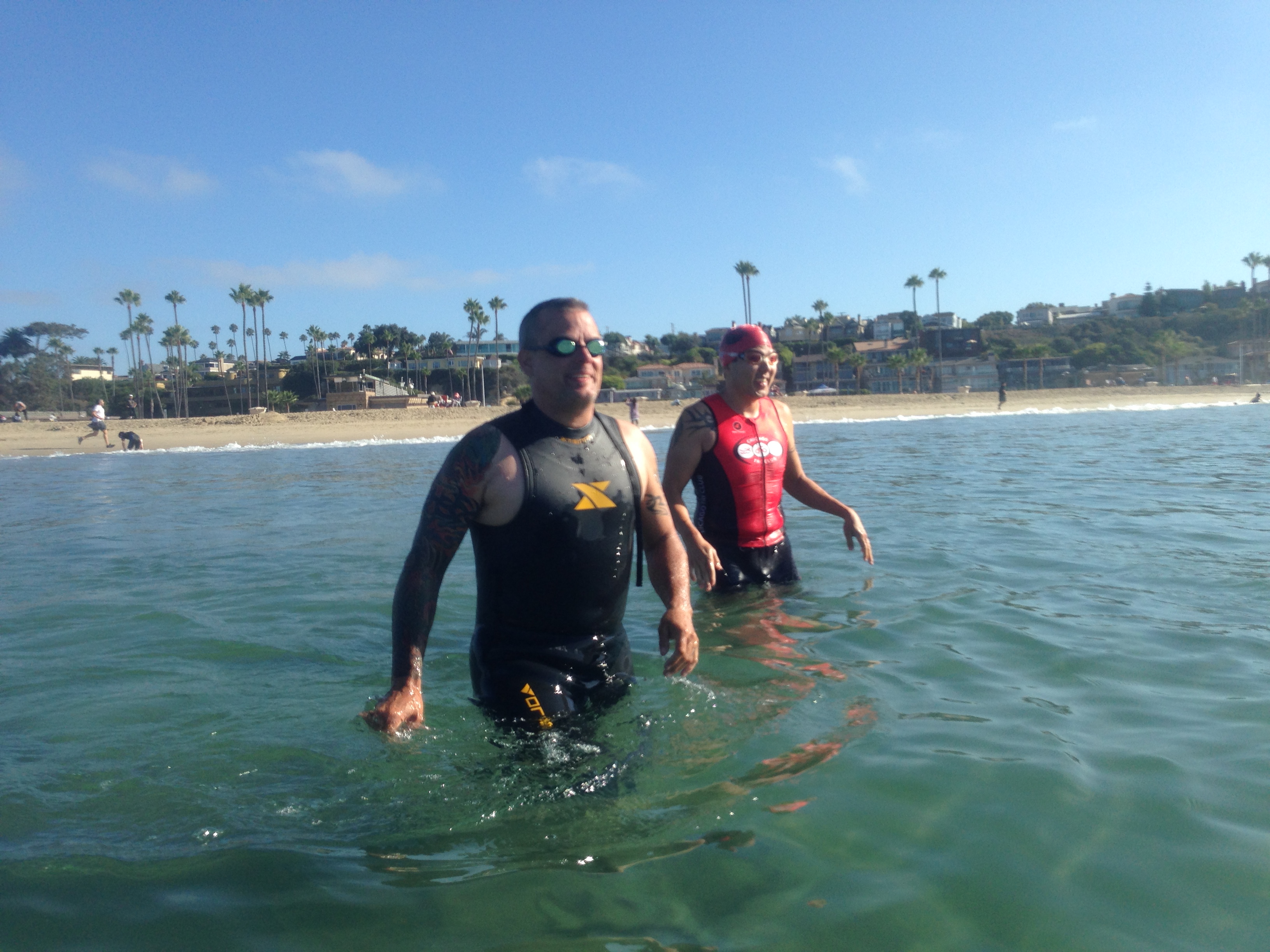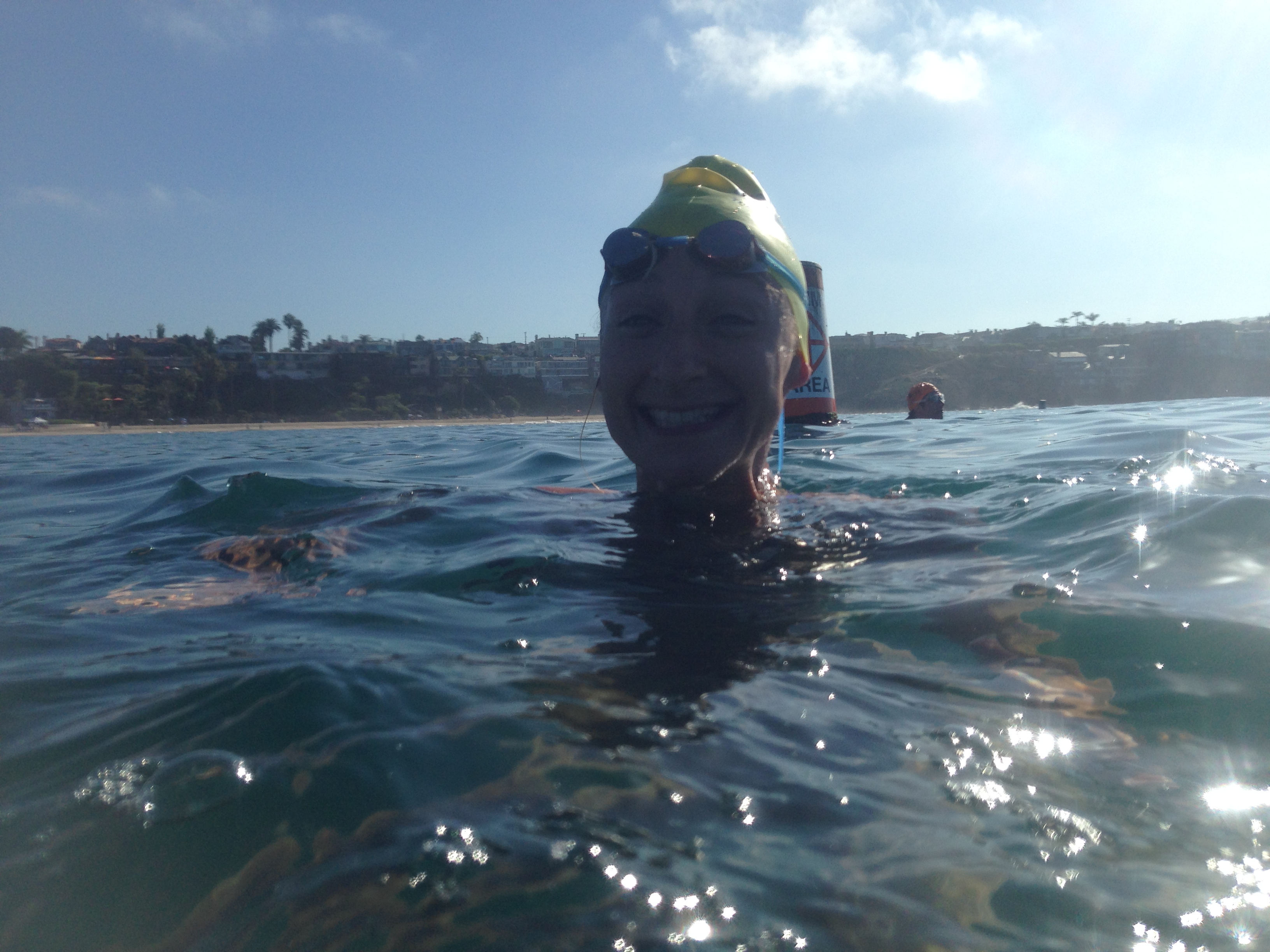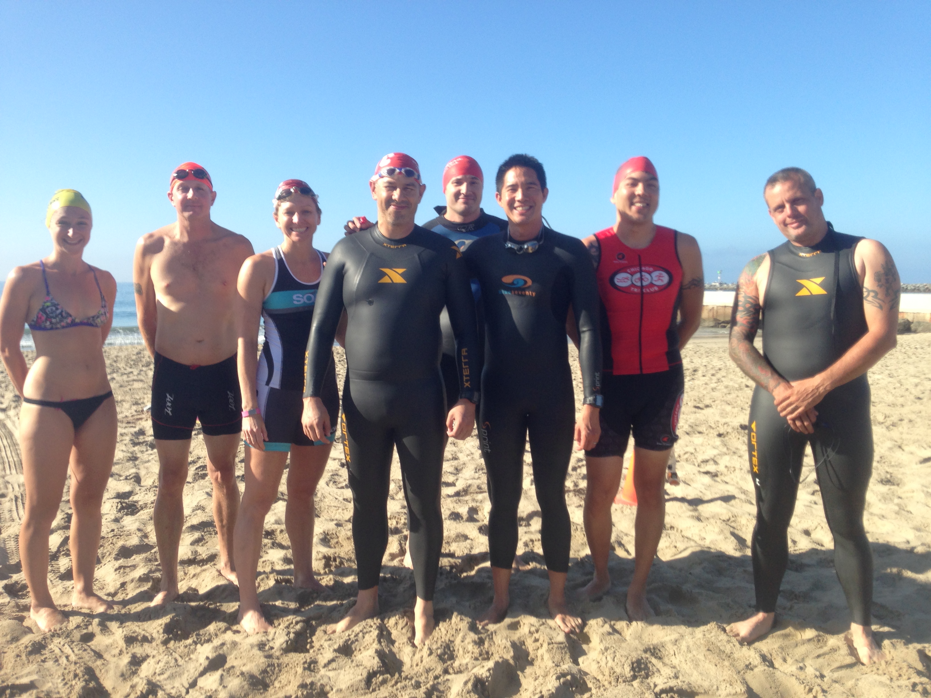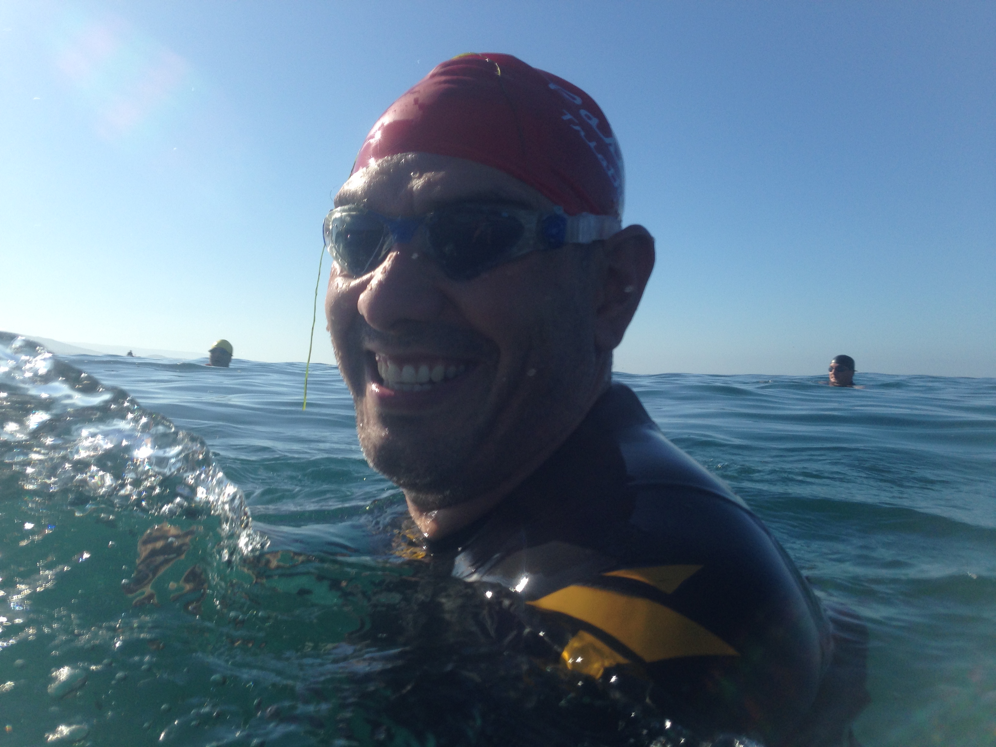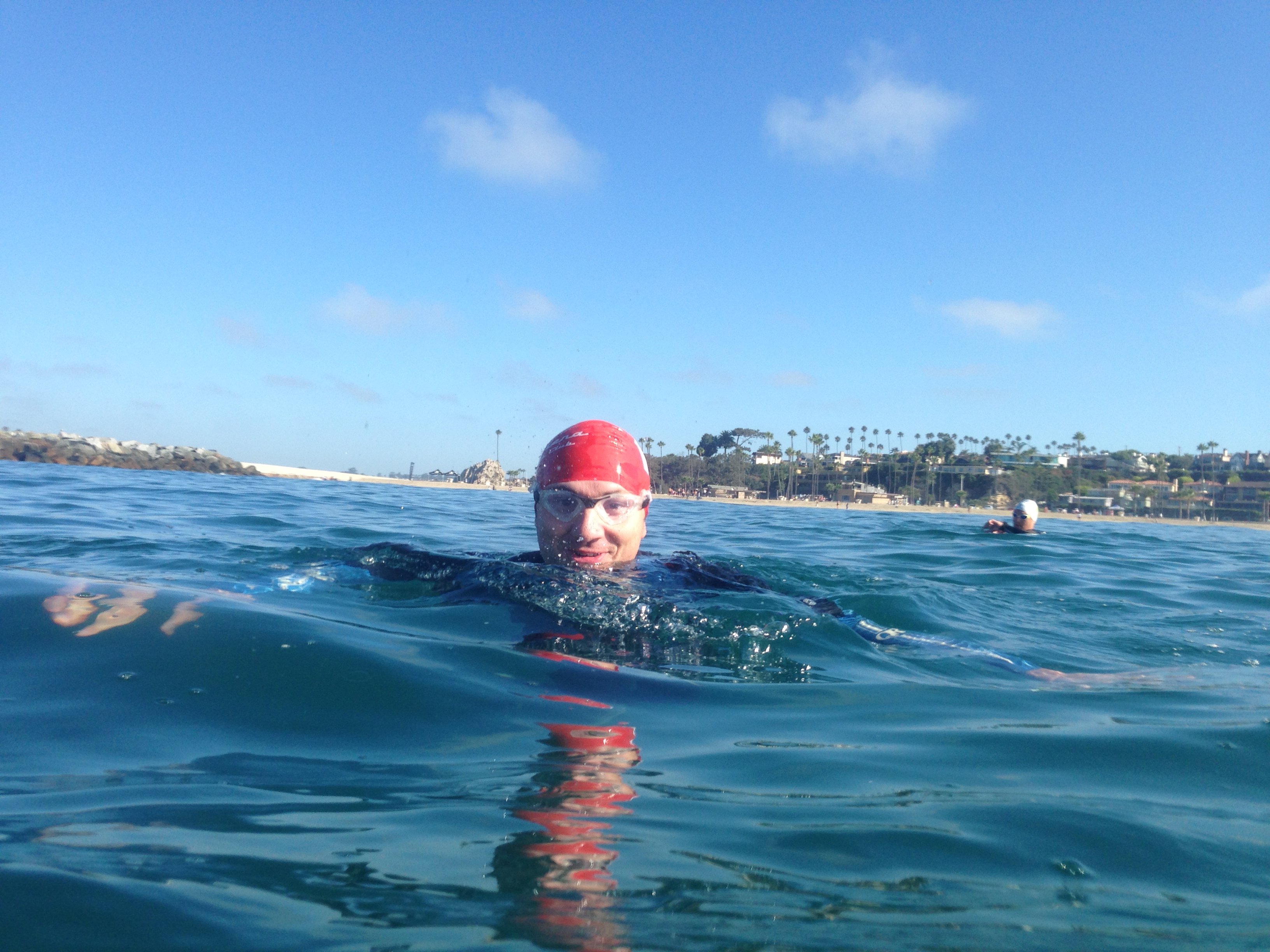 We met at Life Guard Tower #3. It’s the most obvious one right near the parking lot. There’s convenient, clean bathrooms and shower spots, to rinse off the wetsuits. There’s lots of swimmers in the morning. Siting was fairly straightforward with plenty of high and visible land marks to see. The water was cool to me, not frigid and not warm, just right. It was clear water. I could see the sand on the bottom as you neared the beach. The route is a ~0.5 mile loop around buoys. The buoys were ok to see most of the time. They bobbed up and down in the swells. There were waves near shore and the whole area bobbed up and down. I was kinda sea sick after one loop, so headed back in. Yuri and Rafael also felt nausea from the sea swells. I took my water tight iPhone pouch with me and got some fun shots in the water. I tucked it into my wetsuit, down my neck so I didn’t worry about it as I swam. Glenn and Todd took off for another lap.
