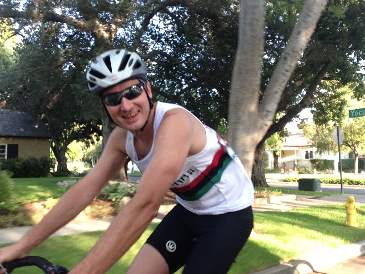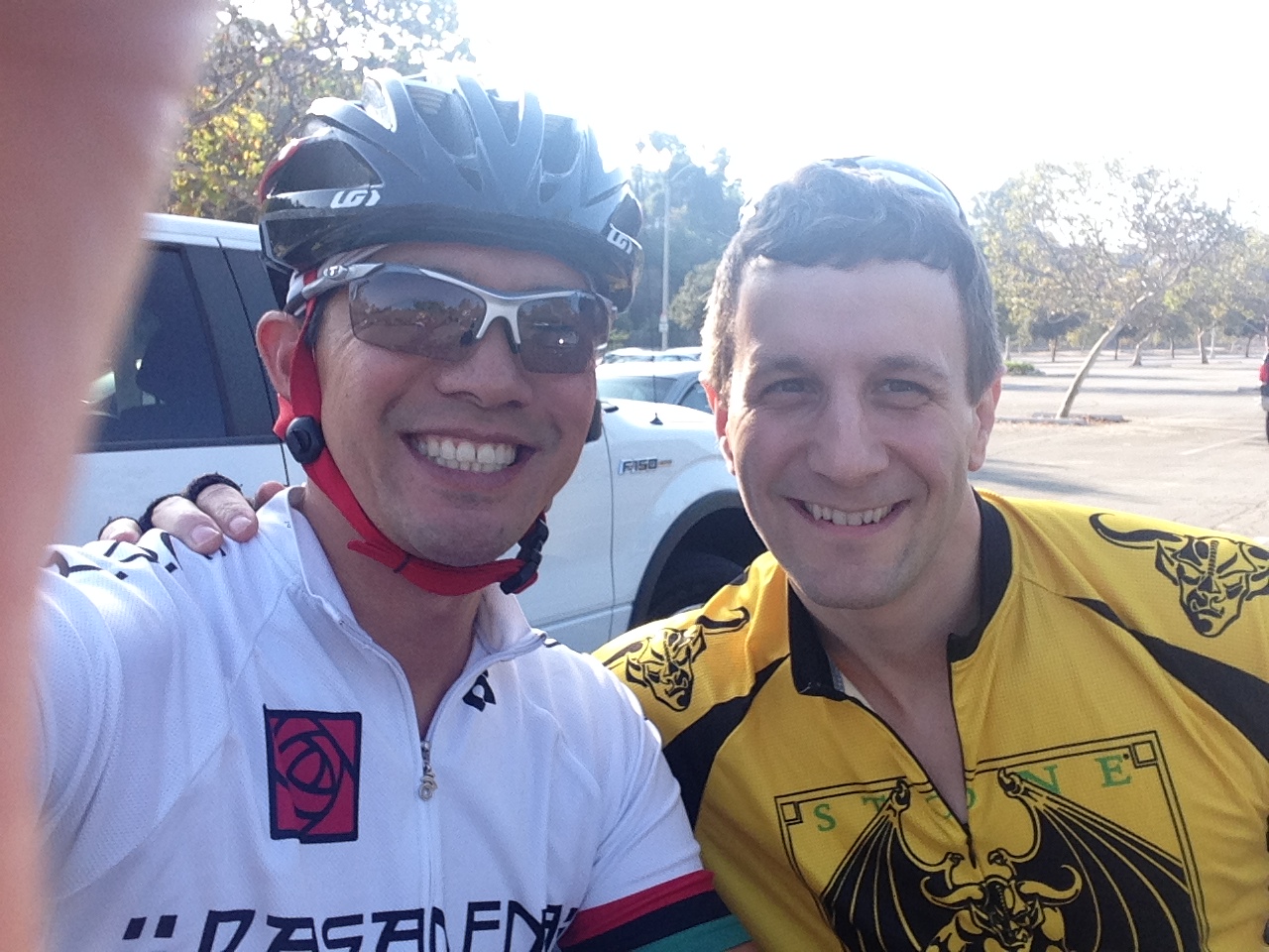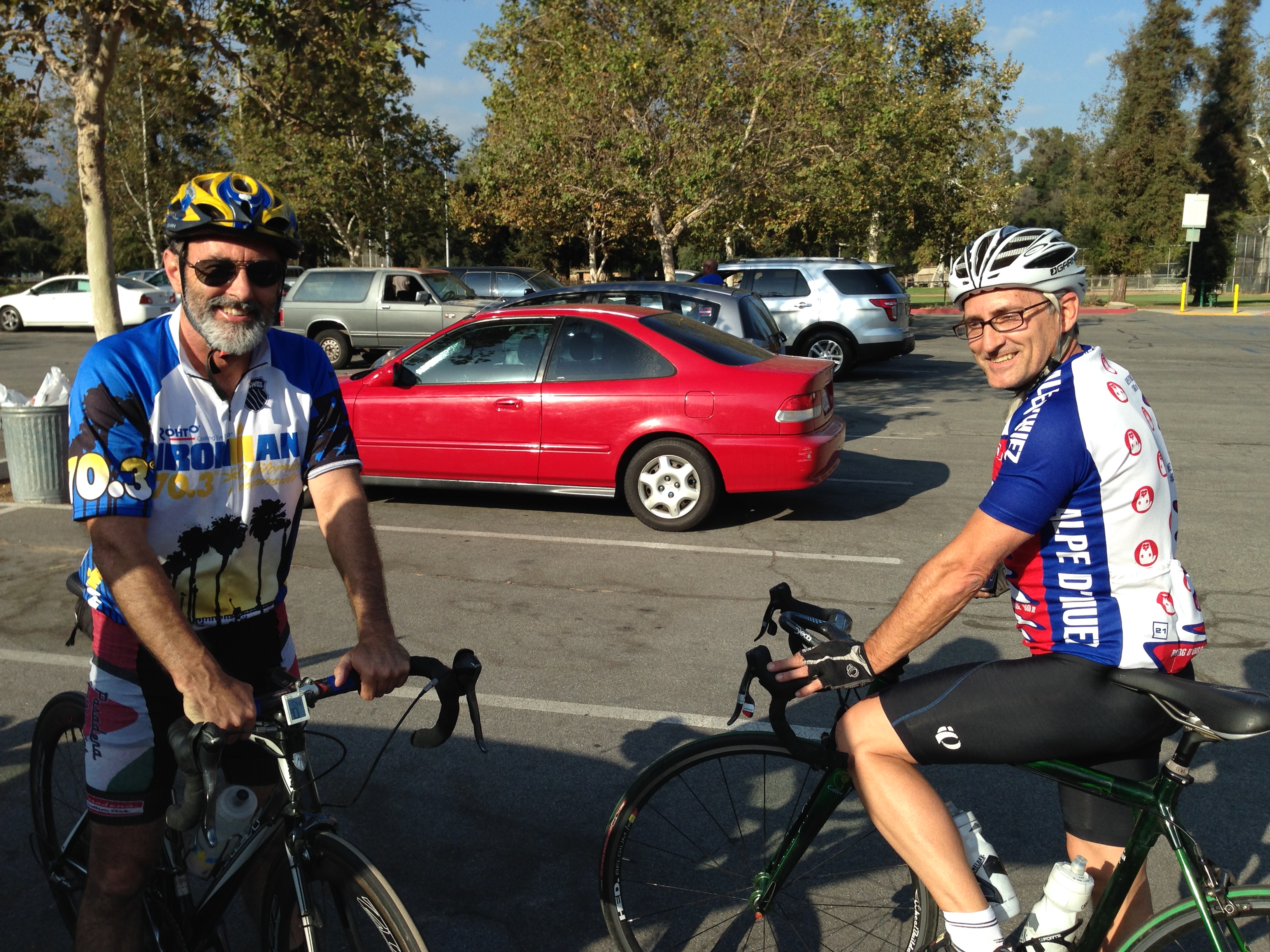 Peter and Derek and Andy led the group out at RBAC; we climbed out of the arroyo to Linda Vista to Highland to Descanso (5%). We climbed Hampstead (8-12%), where Rob had a derailleur problem. He ended up calling home for help. Sugar Loaf (15-18%), St. Katherine (10-13%), Glen Oaks (5-9%). It got dark a little earlier. Good times other than the mechanical. I wore my light tint photochromatic lens, cuz most of the ride is in shade. And I had my front head light, but it ran out of battery juice, just when it got really dark. hmmm.
