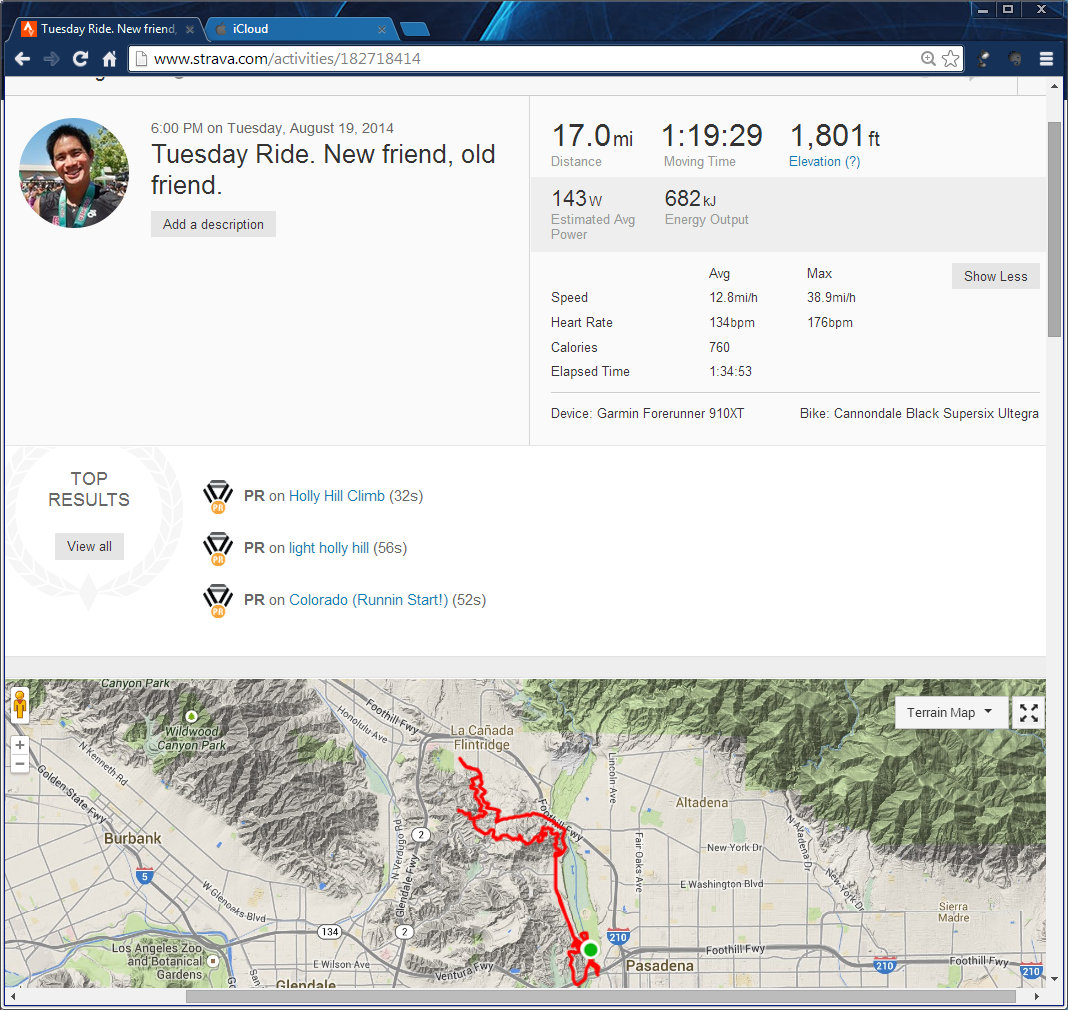 17.0 miles, 1:19:29 moving time, 1,891 ft elevation, 8 strava trophies