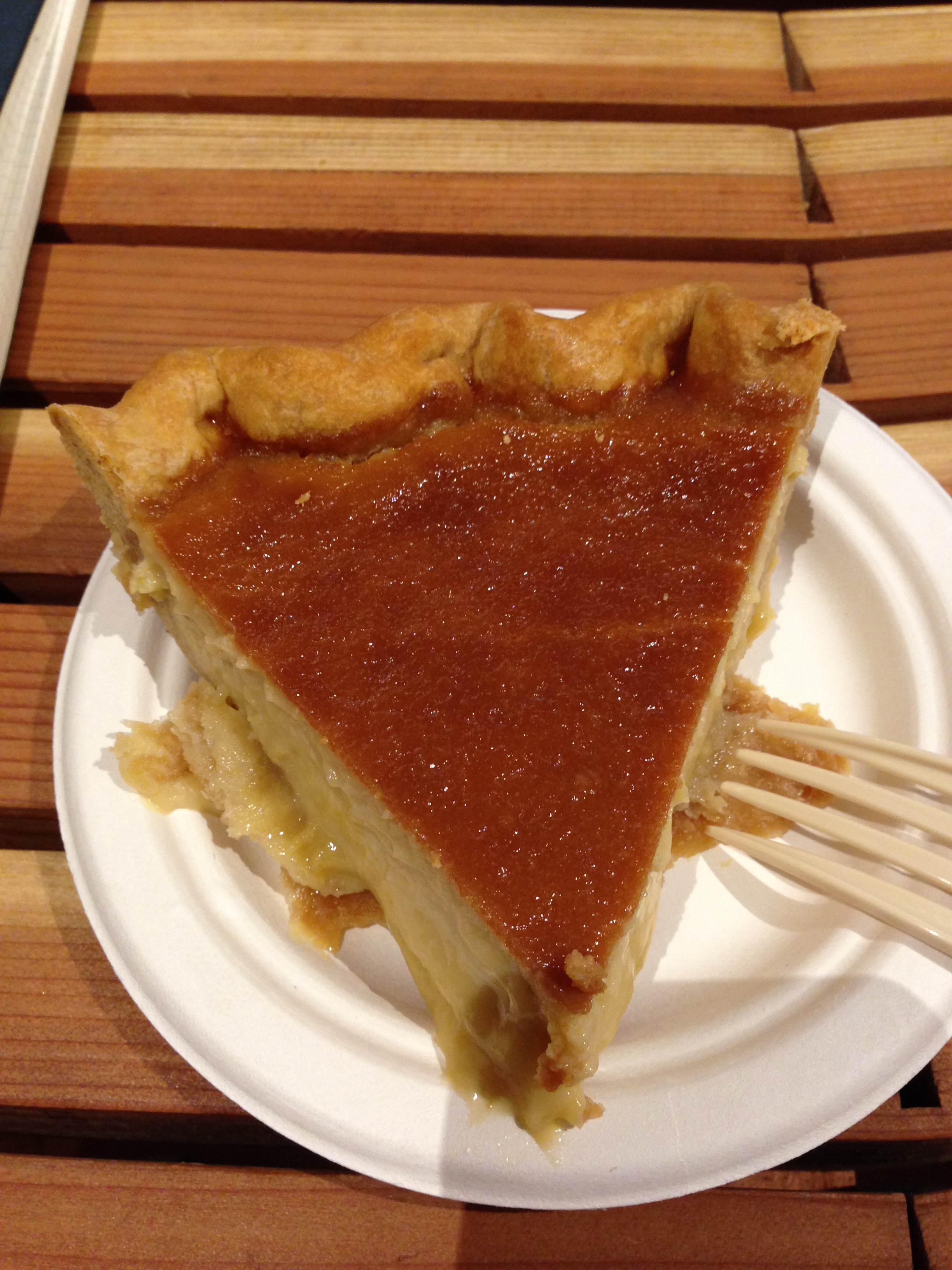 Pie Hole. Maple Custard and Mexican Chocolate. The custard was yummy. Very sweet, but very yummy. The Mexican Chocolate pie was super thick, with cinnamon and spice.