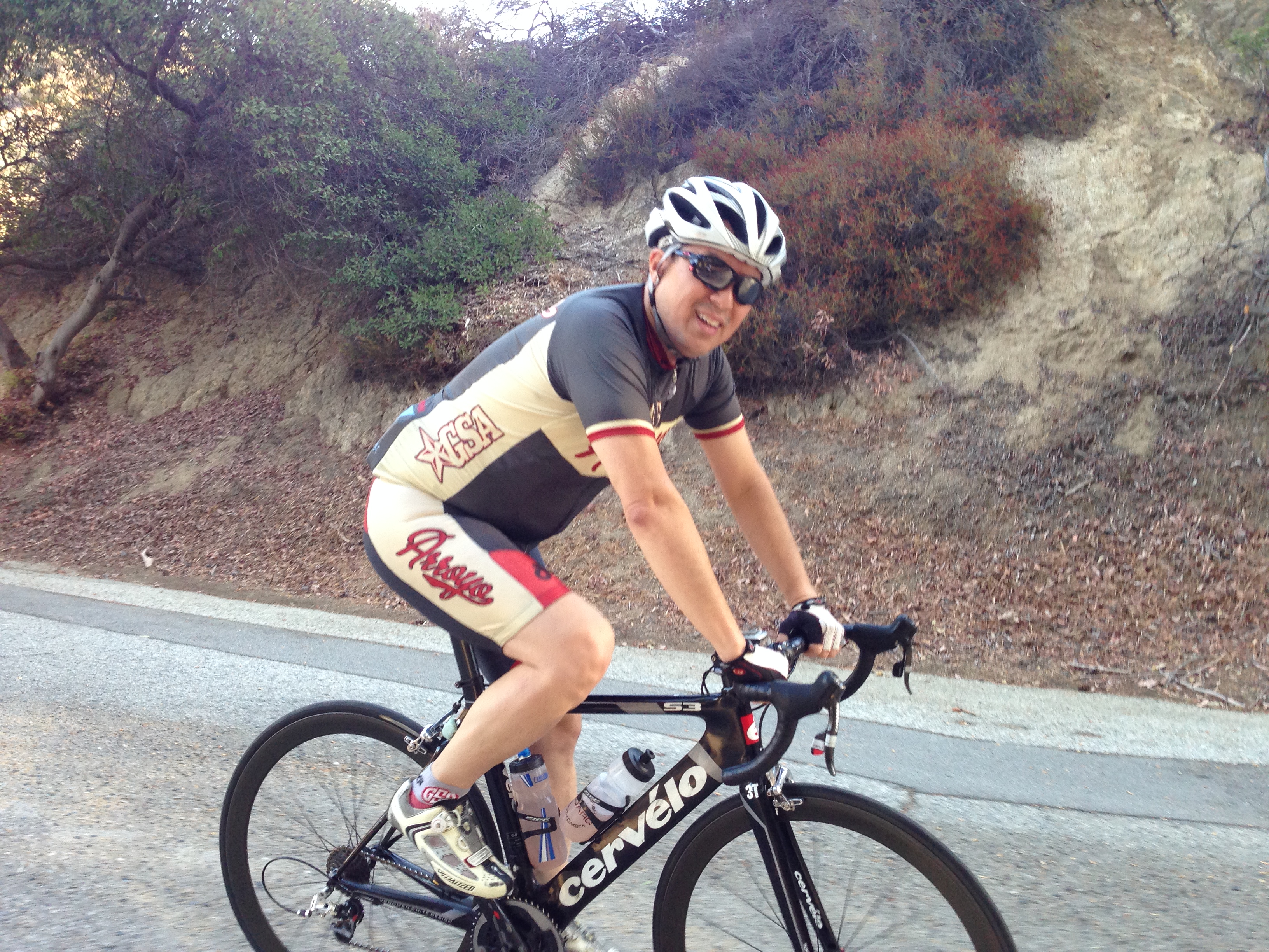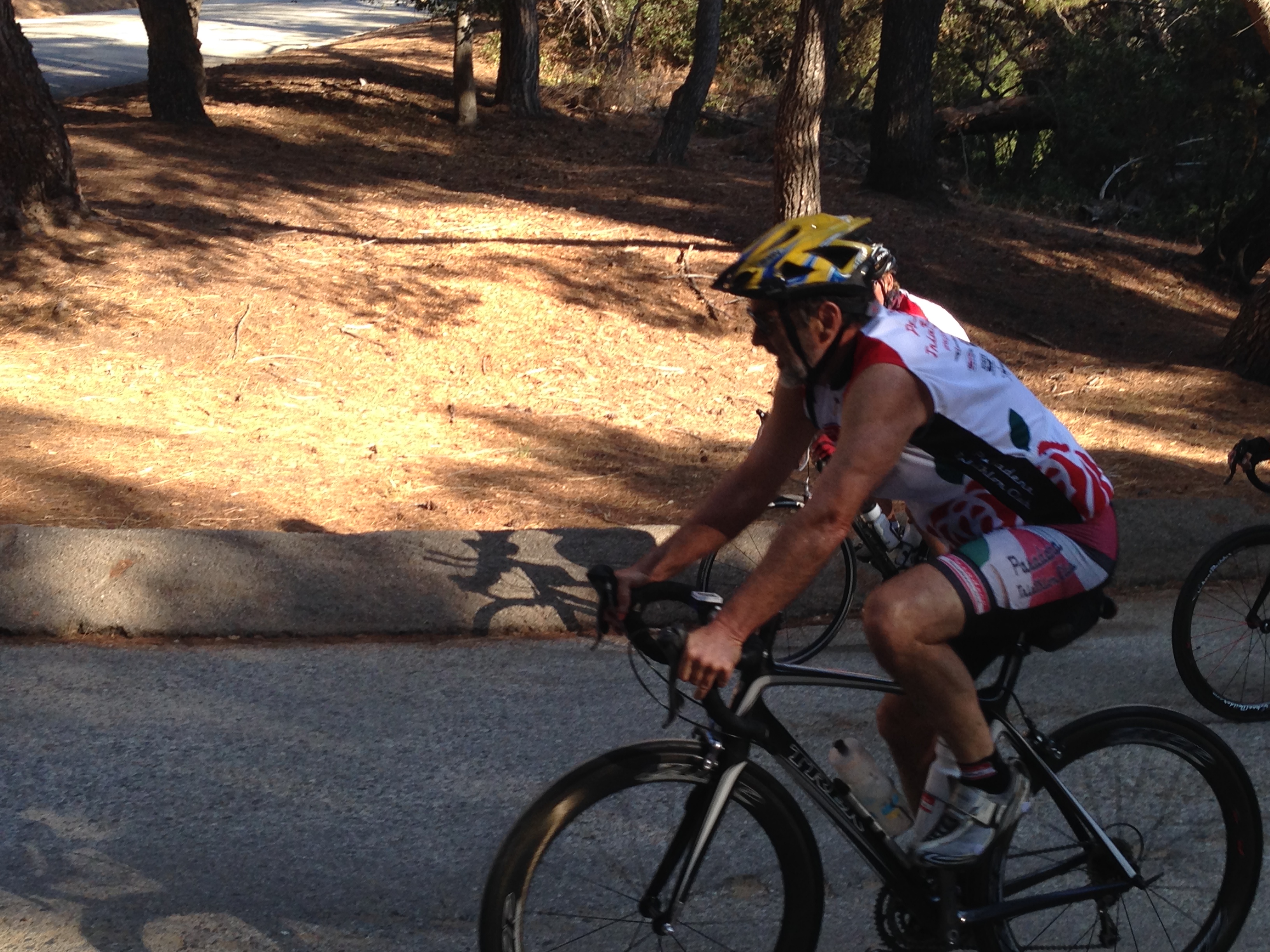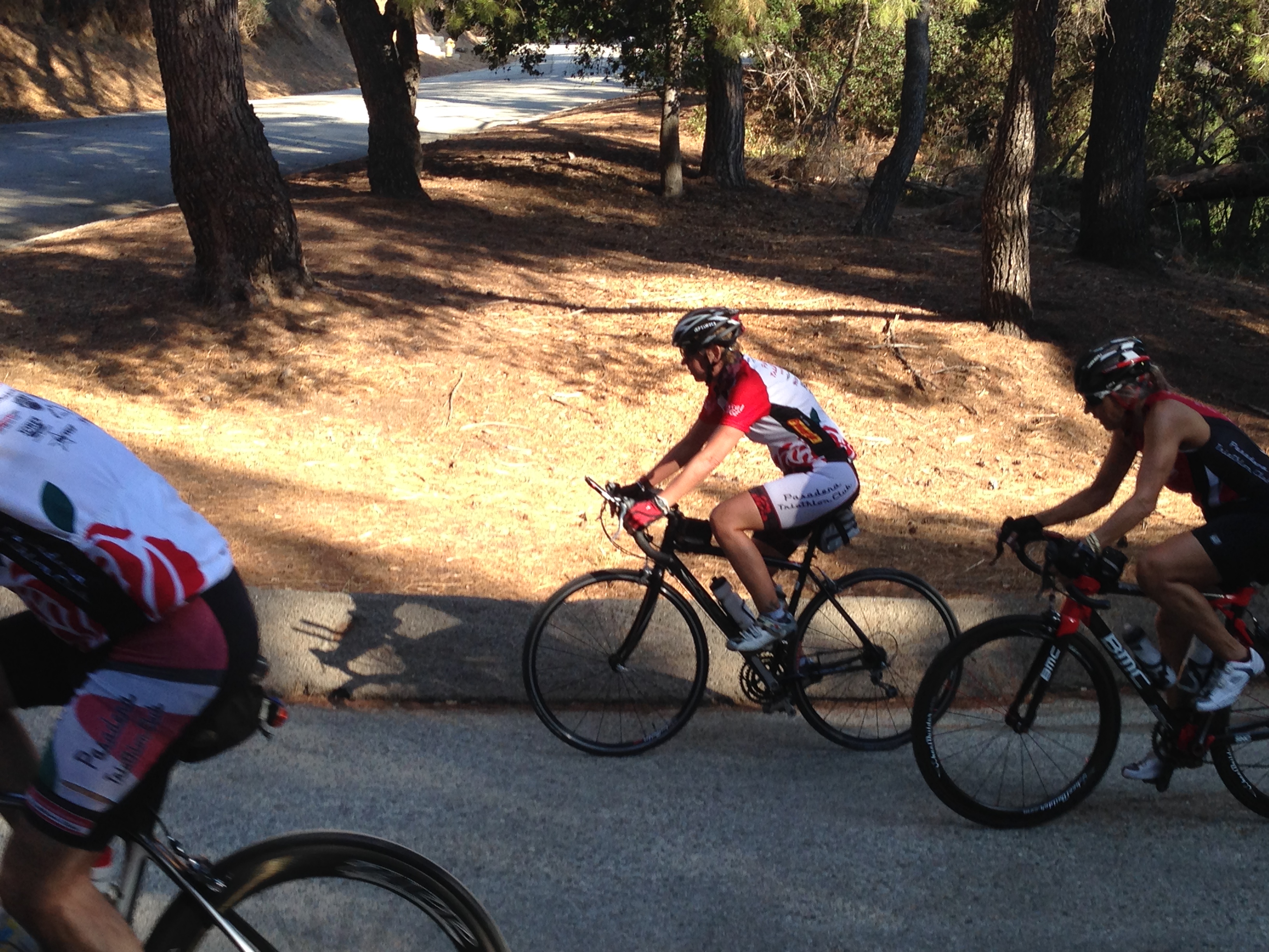 Riding up the back side of Griffith Park to the Observatory. Down the Hollywood Hills side, just below the famous sign.