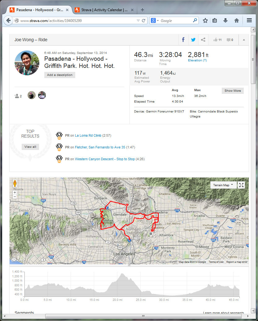It was 101F by the time we got back to Eagle Rock. Bill got a flat close to his house. I was dog tired when I got home.