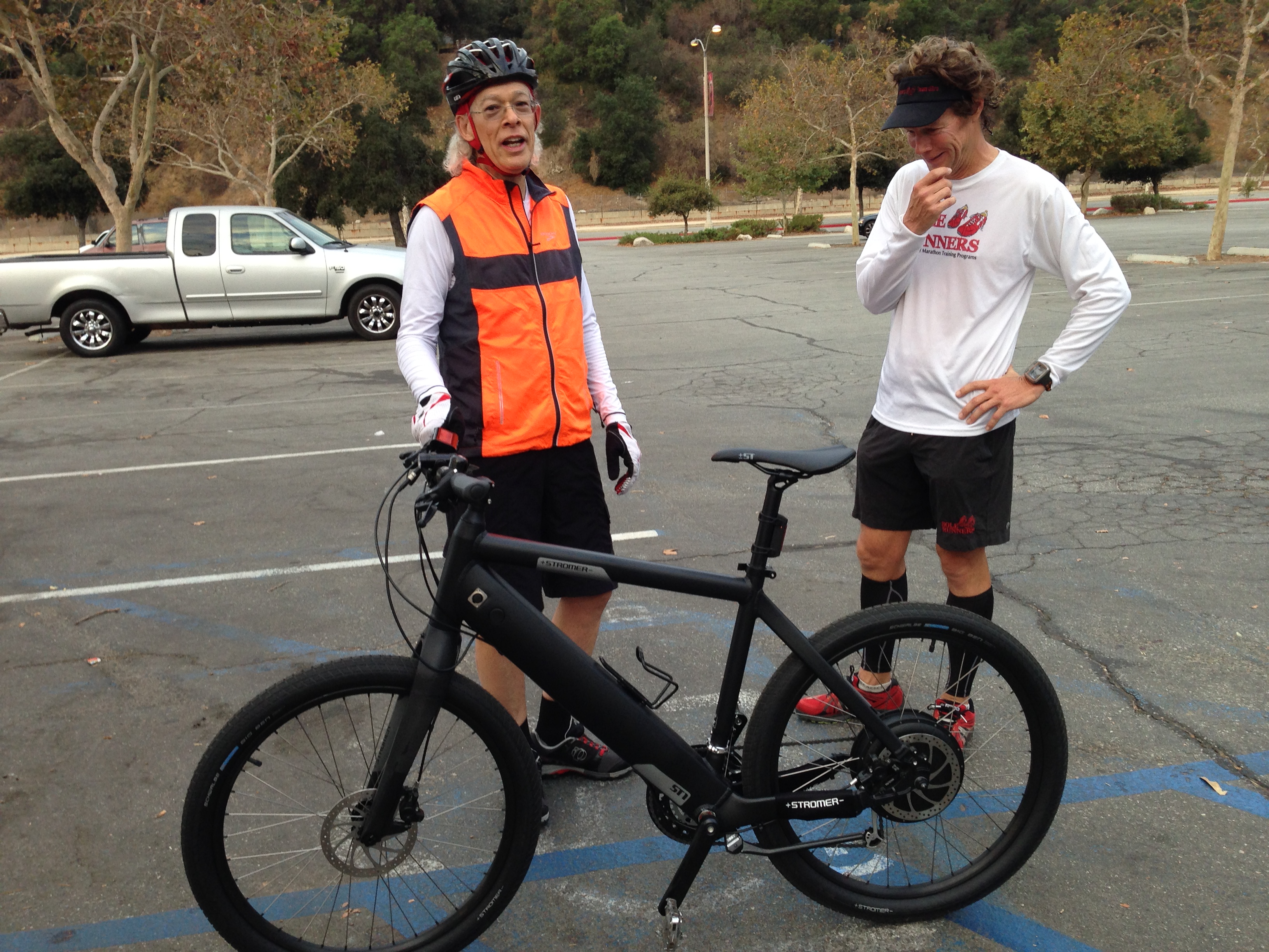 Bill found us as we finished at RBAC. Bill was riding his new Stromer ST1. Special techy treat. Awesome ebike. It has a strain gage so as you apply pressure, it applies energy. It basically doubles your pedaling effort. You Zoom. He let Steve and me try it out. It was so fun. Video clip.