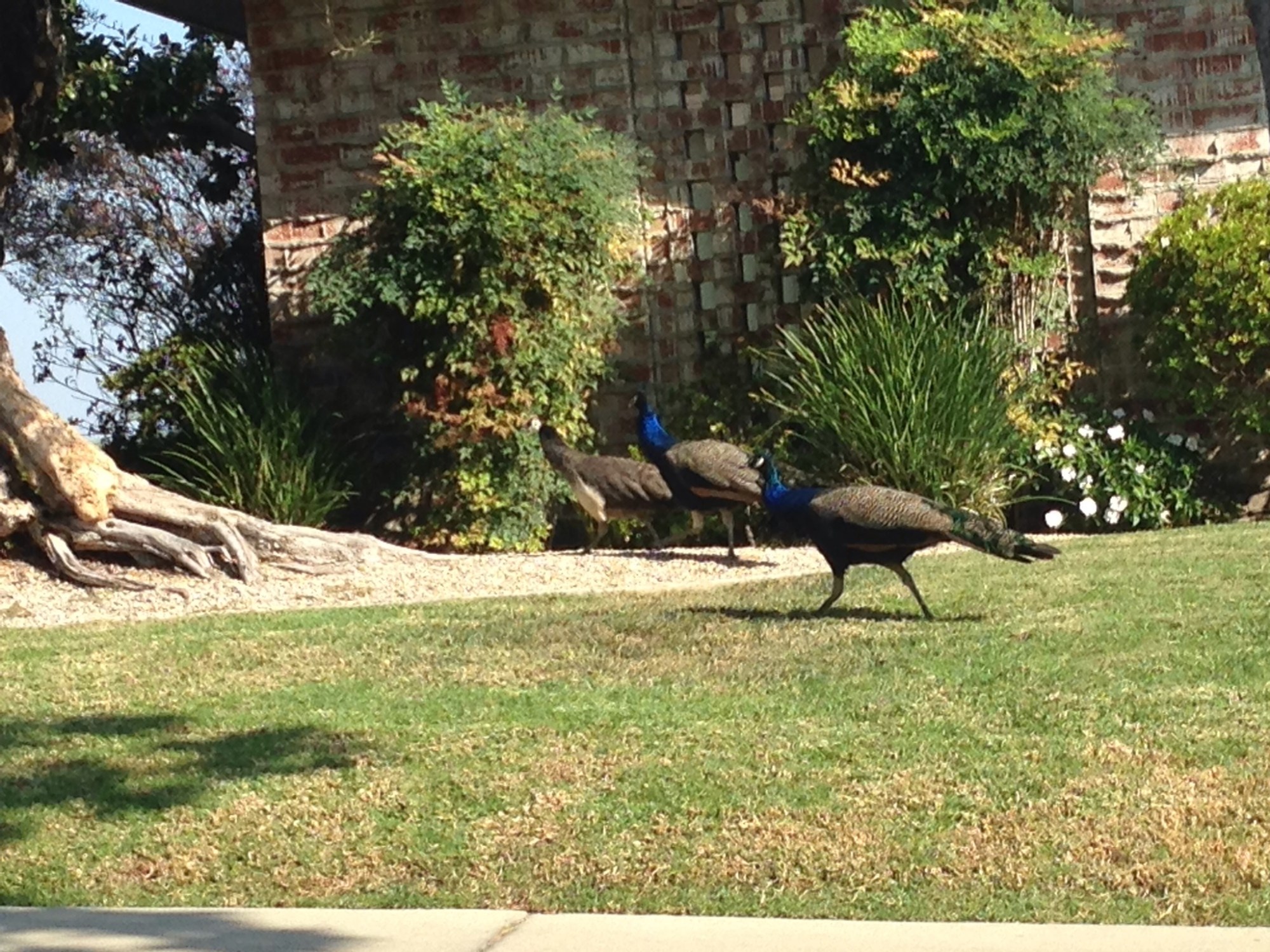 October 18, 2014October 19, 2014 Peacock family My, how the kids have grown! We saw 8 peacocks and peahens cruising around this afternoon. I think these are the pea babies that have all grown up. They look so meaty. I wonder what they eat? Maybe all the extra cat food in the neighbor’s yard. Share this: Click to email a link to a friend (Opens in new window) Email Click to share on X (Opens in new window) X Click to share on Facebook (Opens in new window) Facebook Click to print (Opens in new window) Print Like Loading... Related