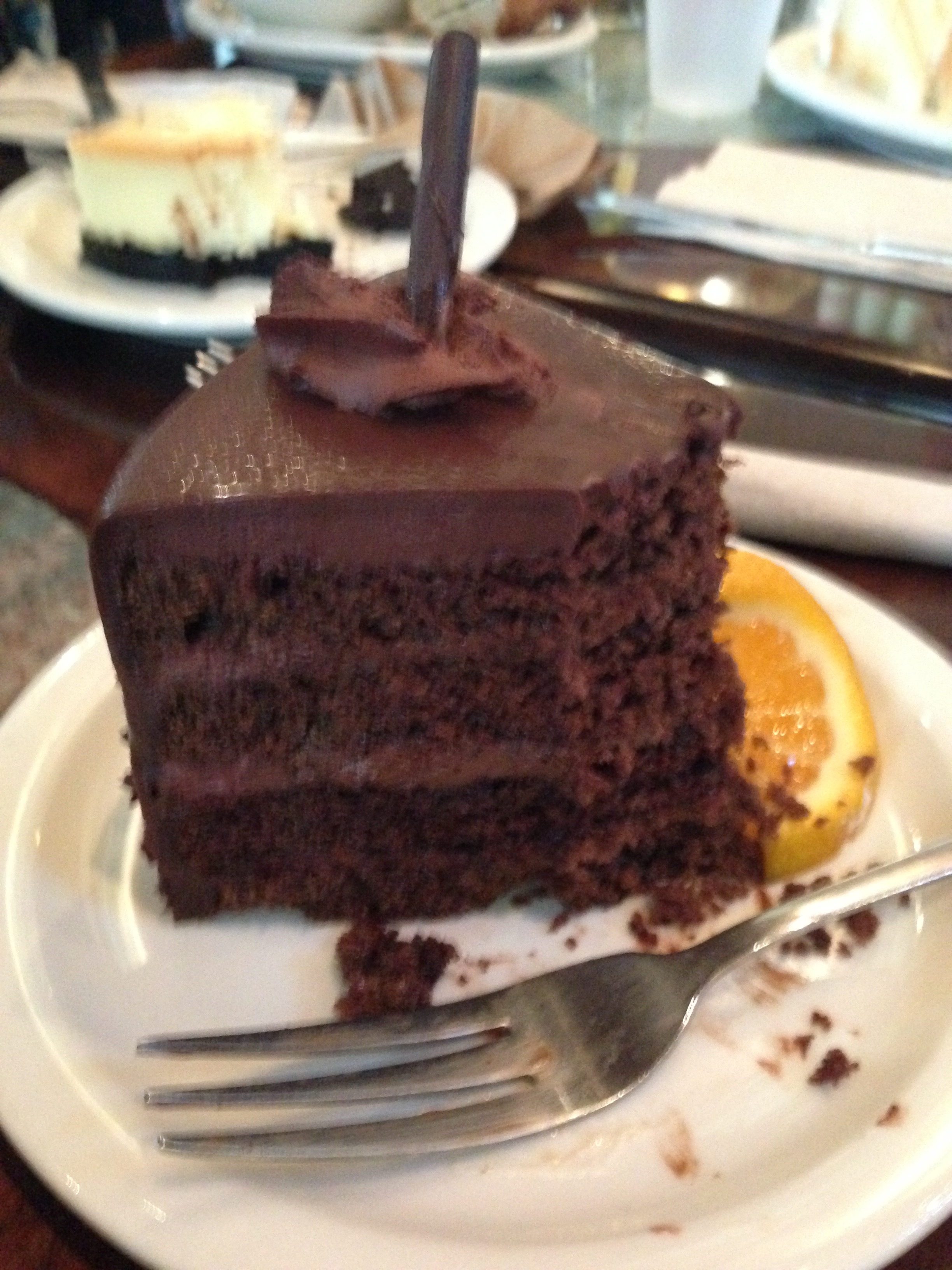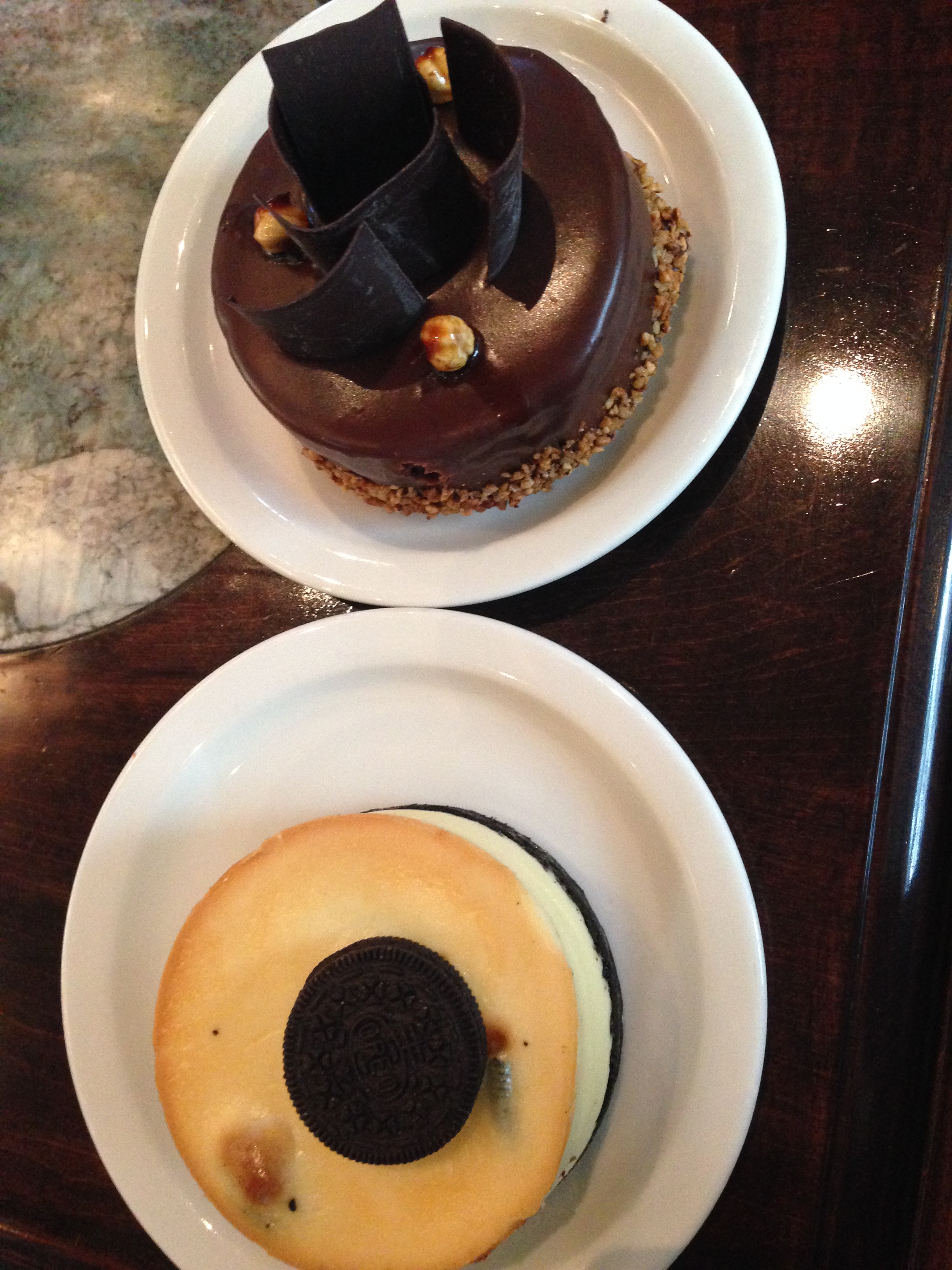 I took my mom and dad over to Urth Caffe for snacks. Mom had the Coconut Royal Cake. Dad had the Chocolate Crown Cake. I had the Hazelnut Cake. BK got a Oreo Cheesecake. I also had a Spanish Latte. It was gigantic and delicious.