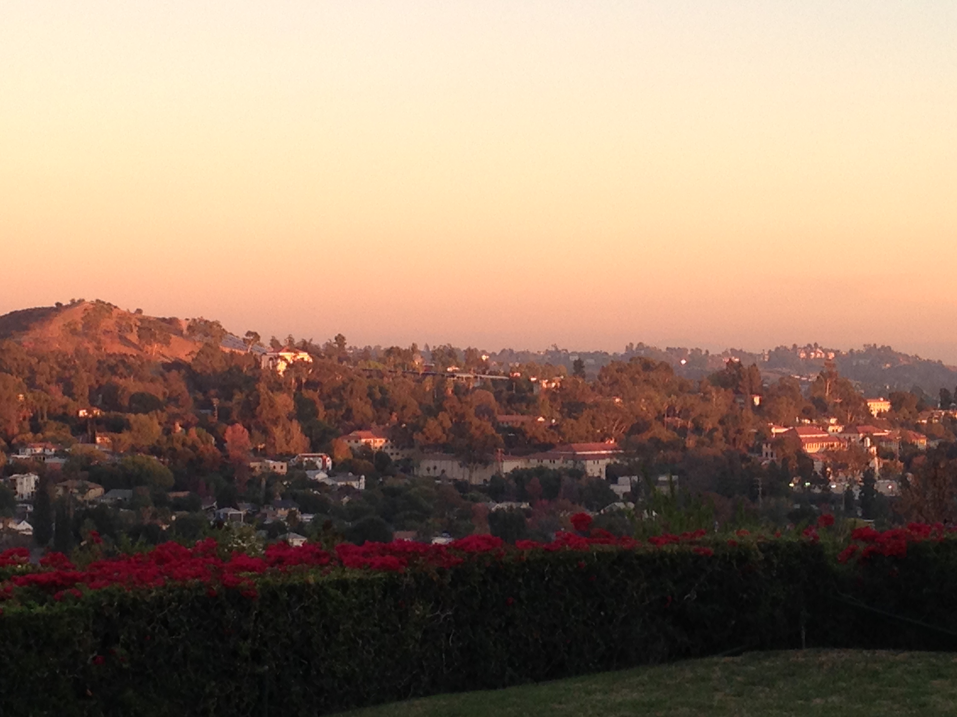 Beautiful sunset over Eagle Rock from Lynda’s garage. 2nd pic you can see Occidental College. The current President went there for about a year, I heard.