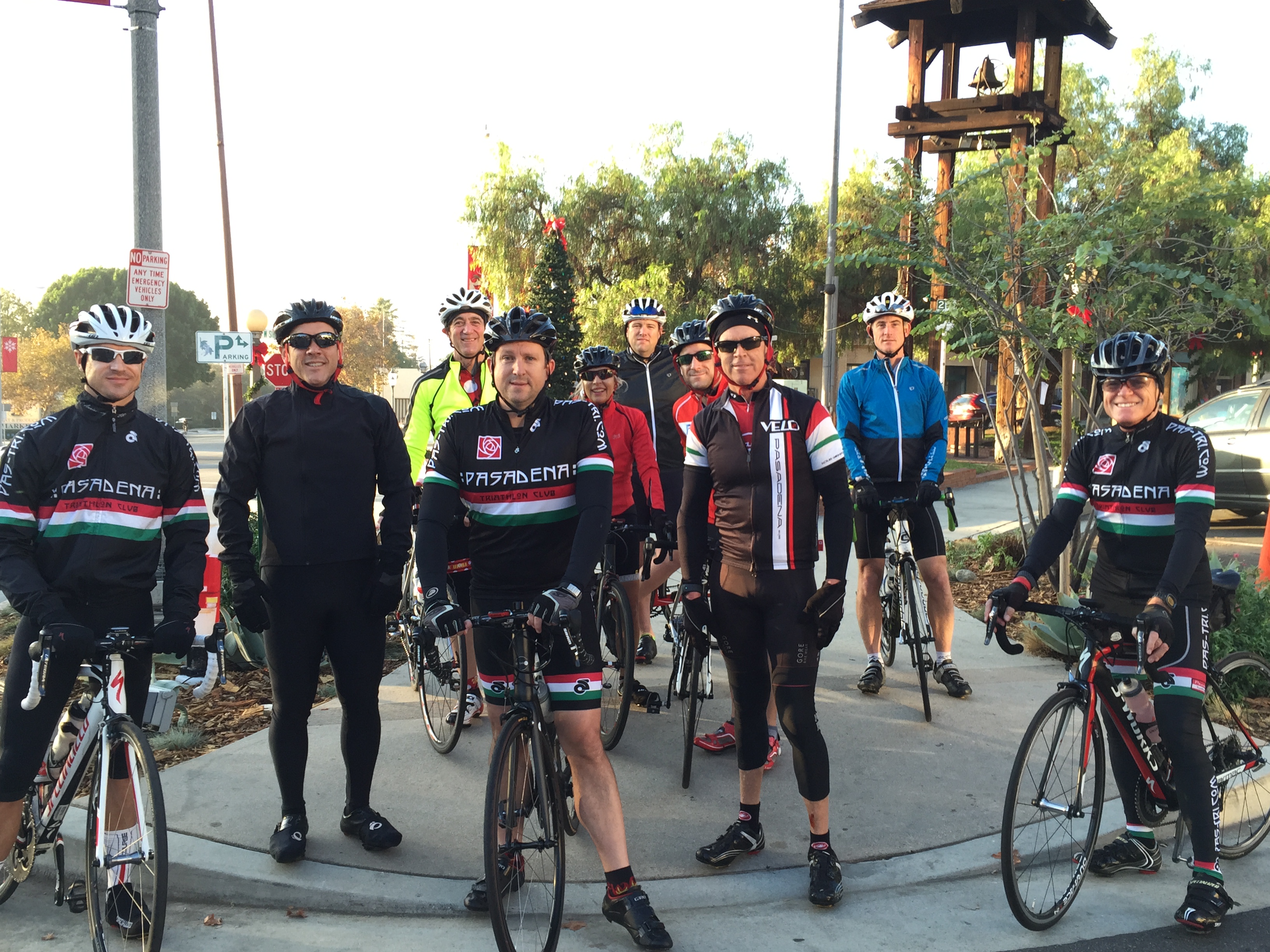 Great day for a ride. The weather report said cold, but it was not too bad. It’s good to take an extra layer than be shivering. We started at Sierra Madre, which is all dressed up for Christmas in the background.