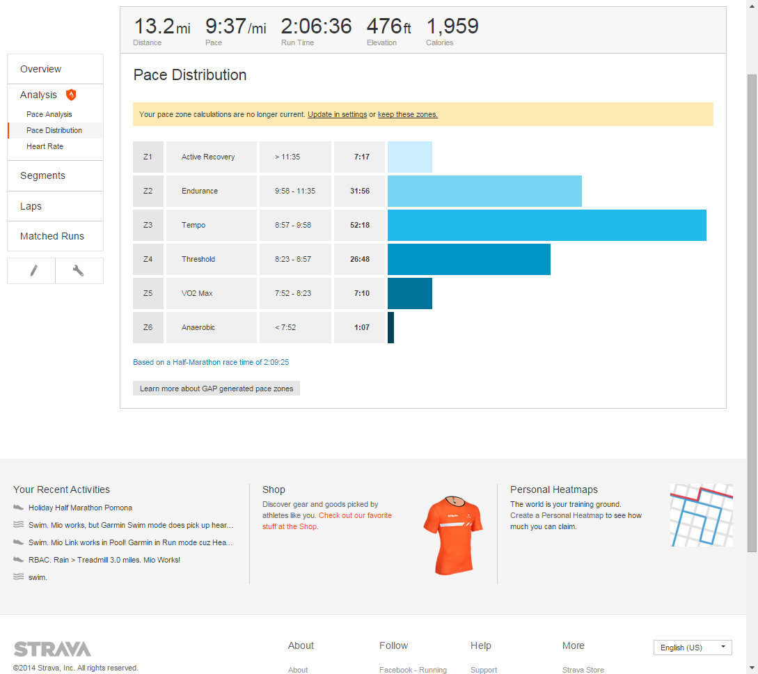 I had my Mio Link on, so I posted the heart rate data. I noticed a couple time the Mio lost the connection, not sure why. I just rubbed it down onto my wrist and it was back up. The blinking colored LED was great to know the heart rate zones.