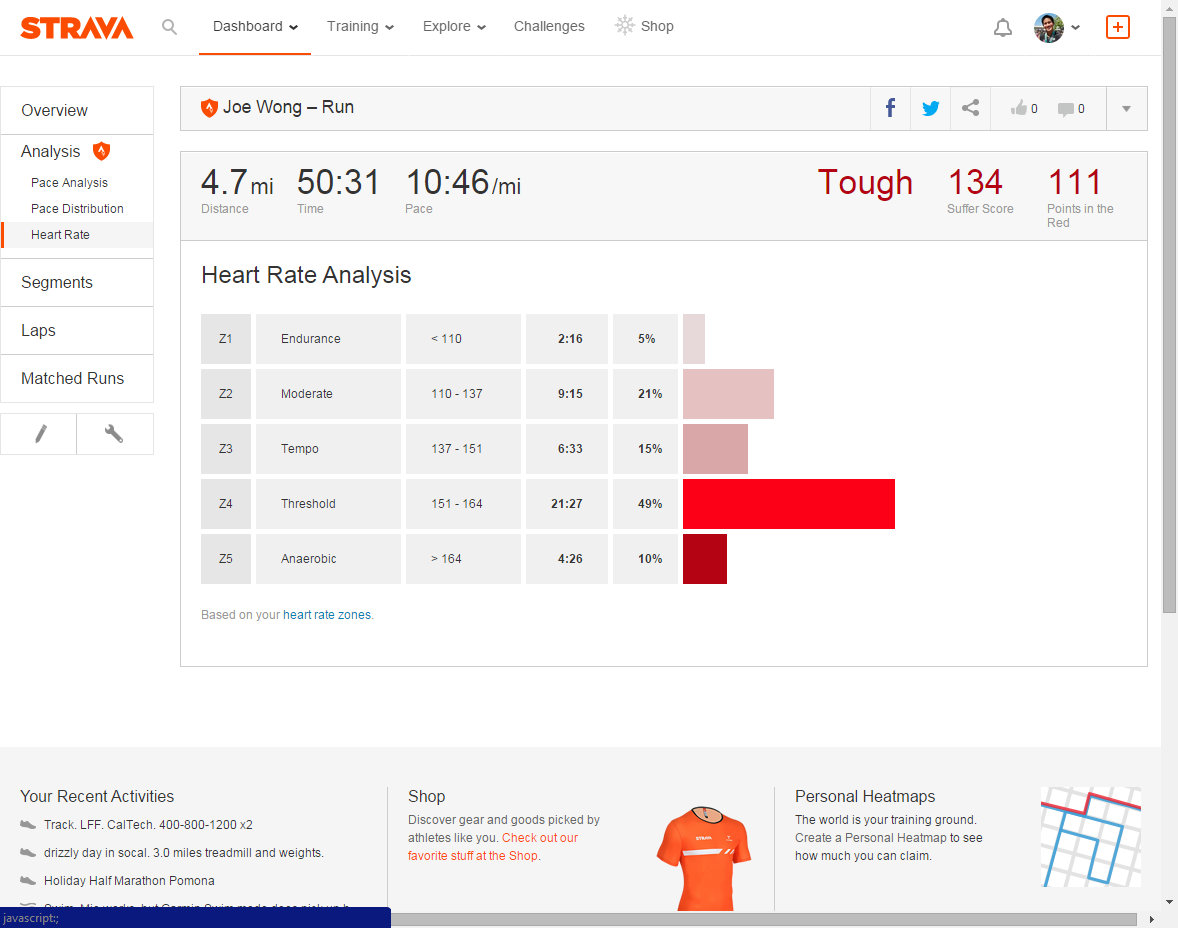4.7 miles, 50:31 moving time, 134 tough suffer score