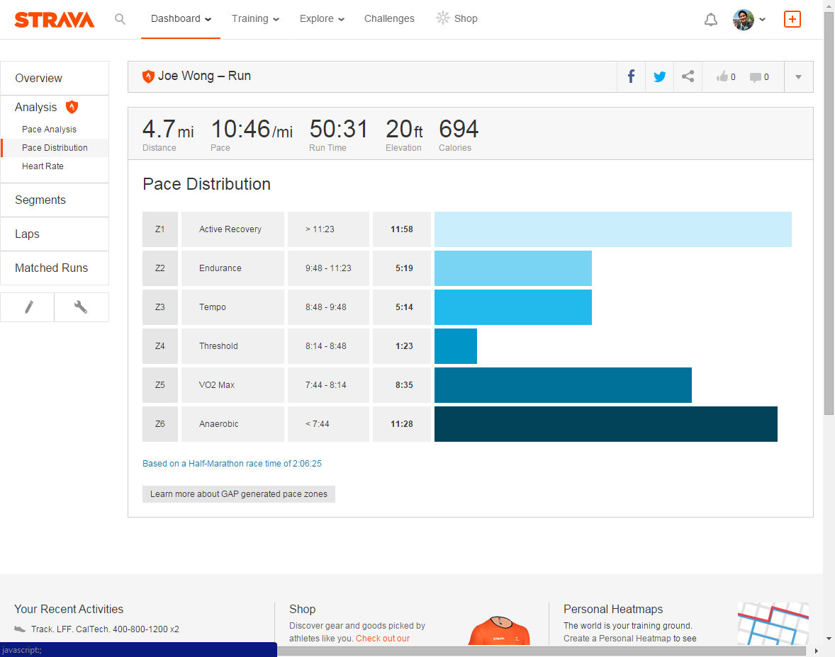 The charts verify that I spent more time in the red zone and higher paces. Cool.