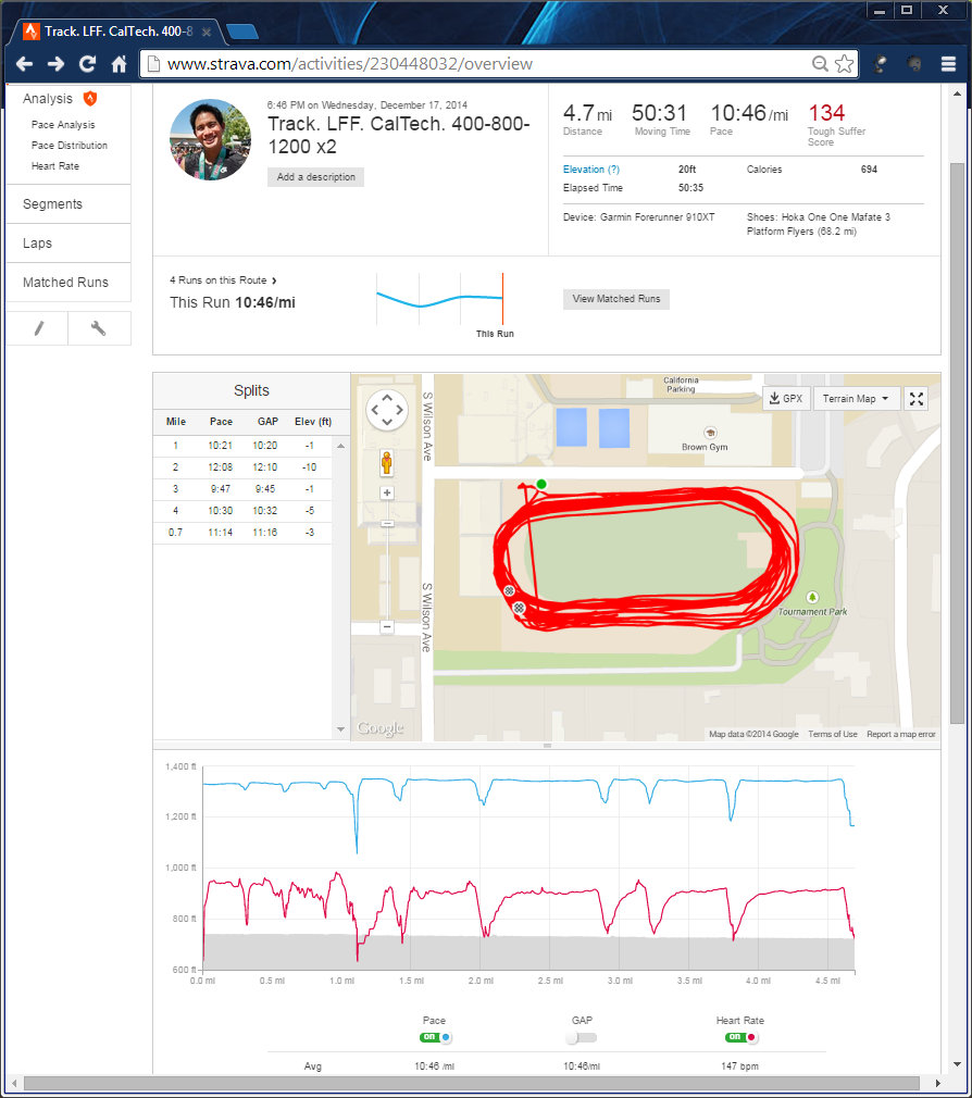 I was actually pretty amazed at my pace for 400-800-1200. Since the track is kinda dark and we’re moving so fast, I didn’t really look at my Garmin much. I only looked at it at the lap for time.