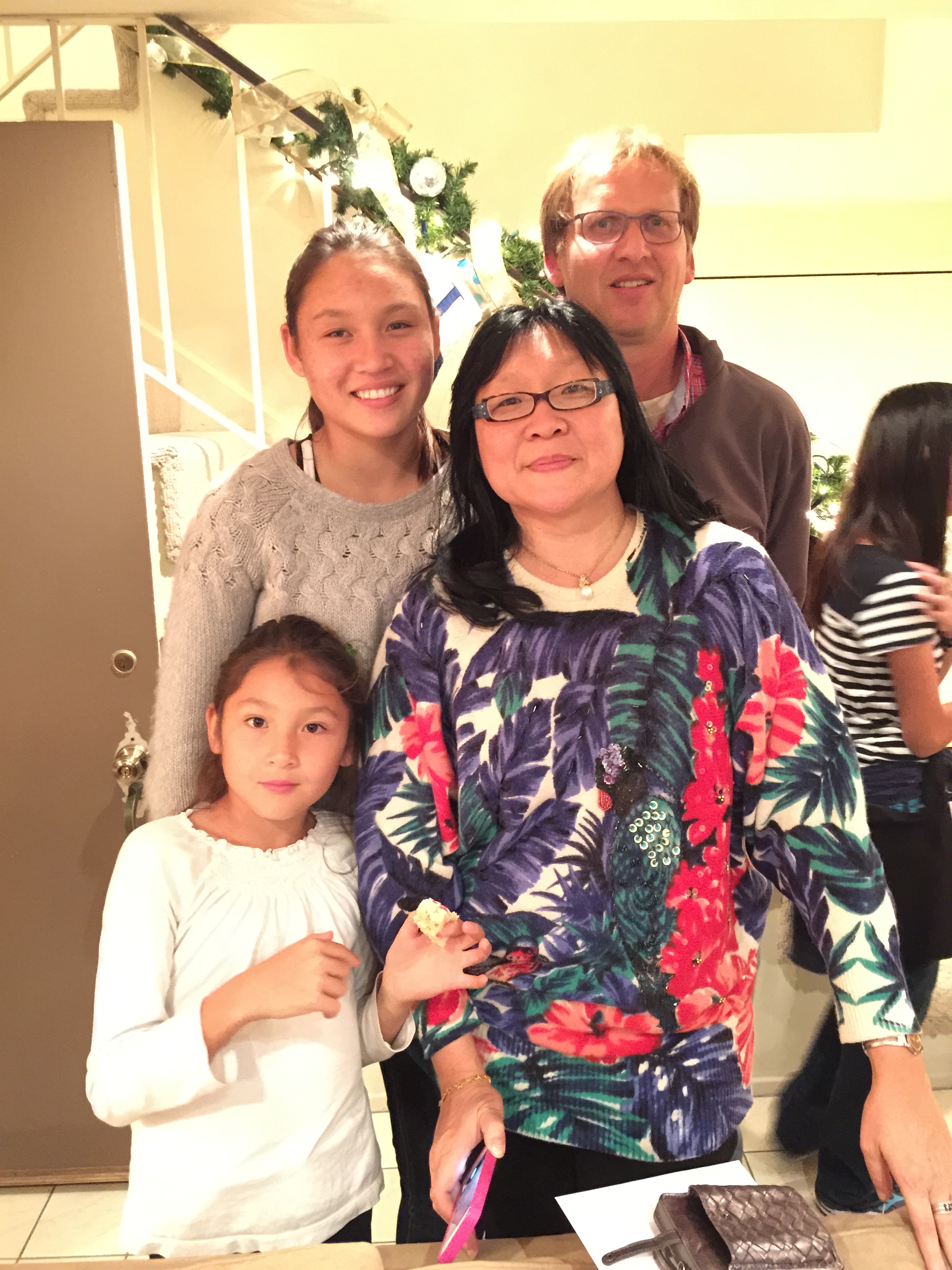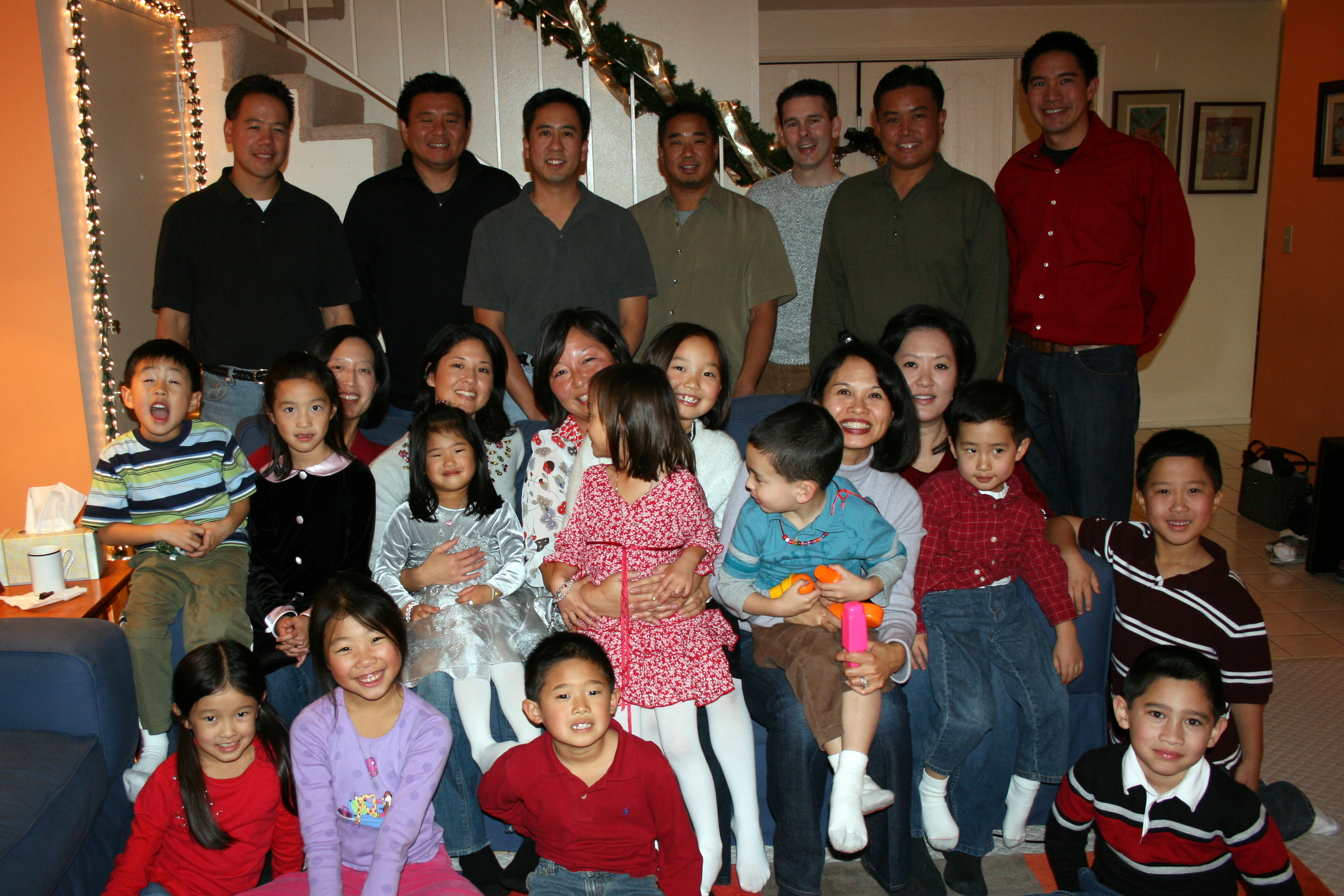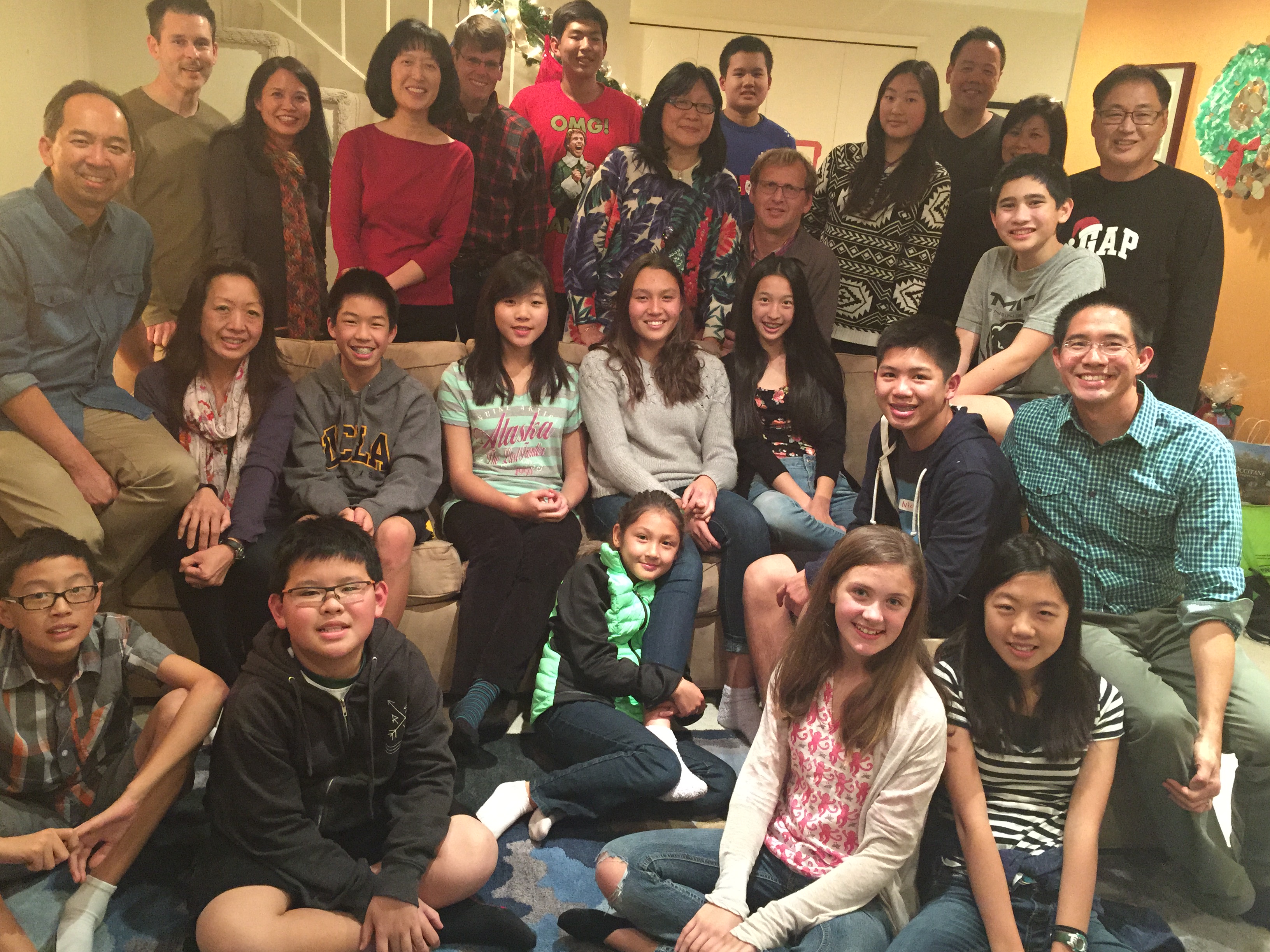We had a bunch of neighborhood families over to our house for the Annual Wong Christmas Party. The neighborhood families started having parties when my daughter was kindergarten. One family hosts the Halloween Party, another 4th of July Party, another after the talent show night, and we host a Christmas Party. Now the kids are in high school and middle school. I know my kids are getting big, when they can string up the Christmas on the gutters. We cooked a rib roast and a Pear Almond Tart. It’s a wonderful potluck. The kids had a white elephant gift exchange, and the parents had one too. Each year I take a group picture. There’s one from this year 2014 and one from 2007. My, how they’ve grown! Merry Christmas!