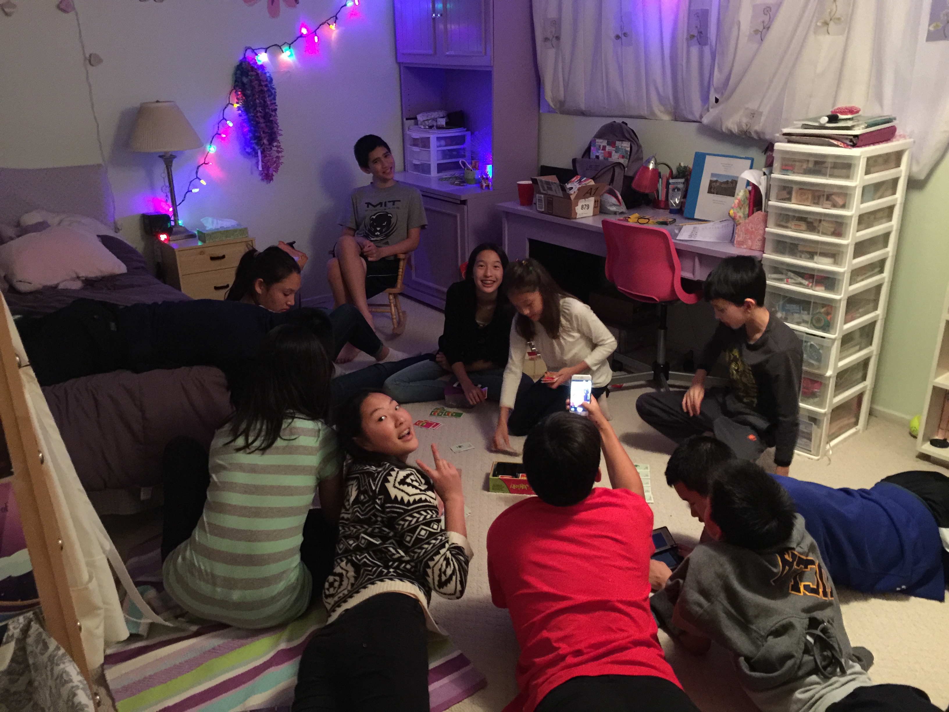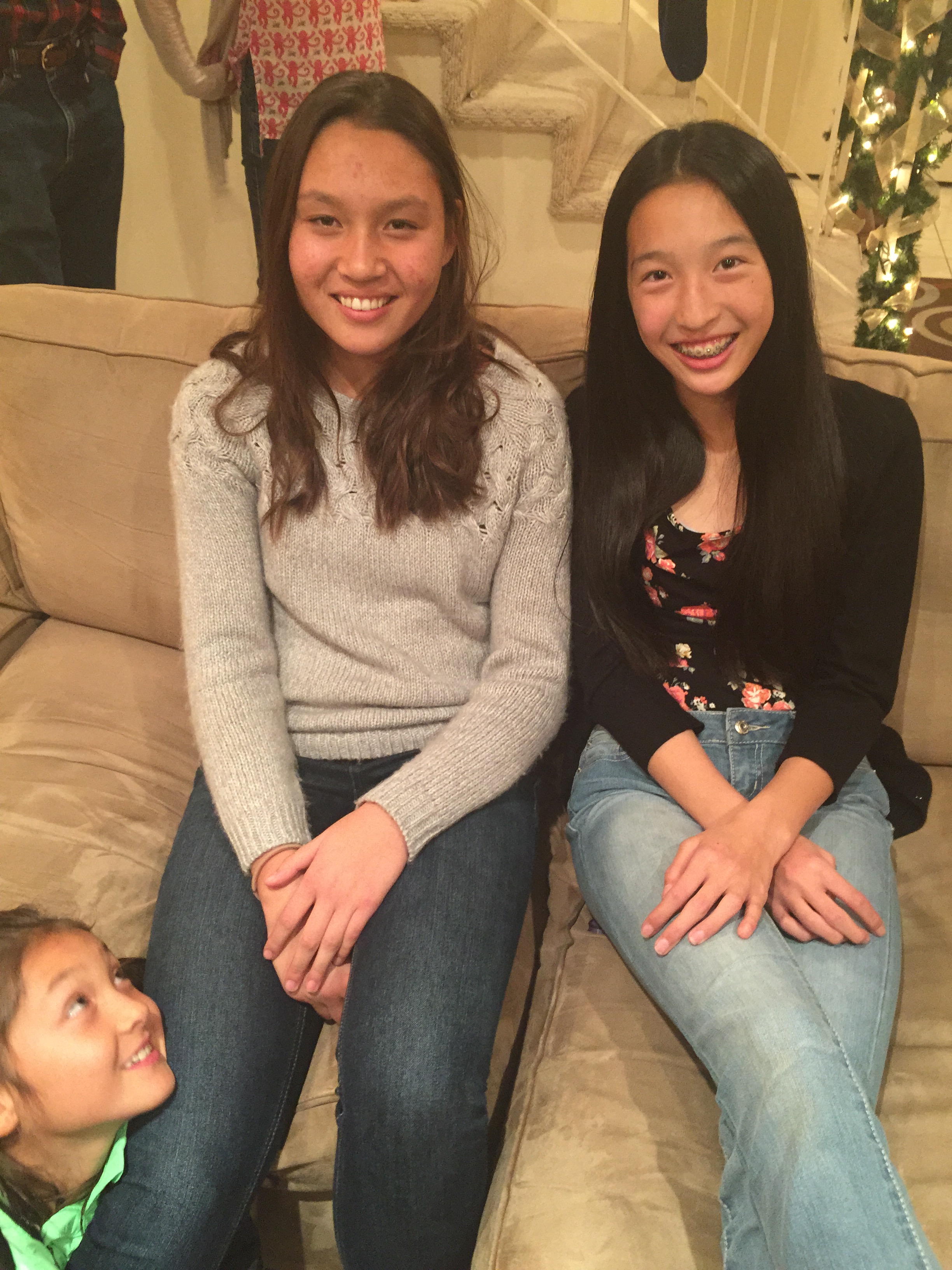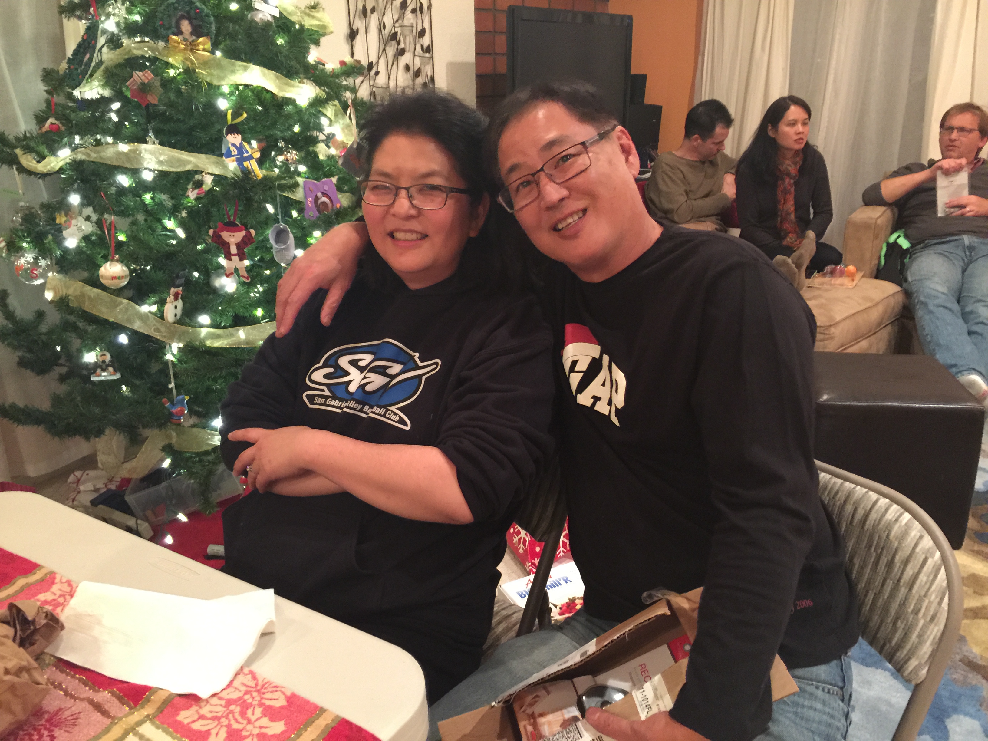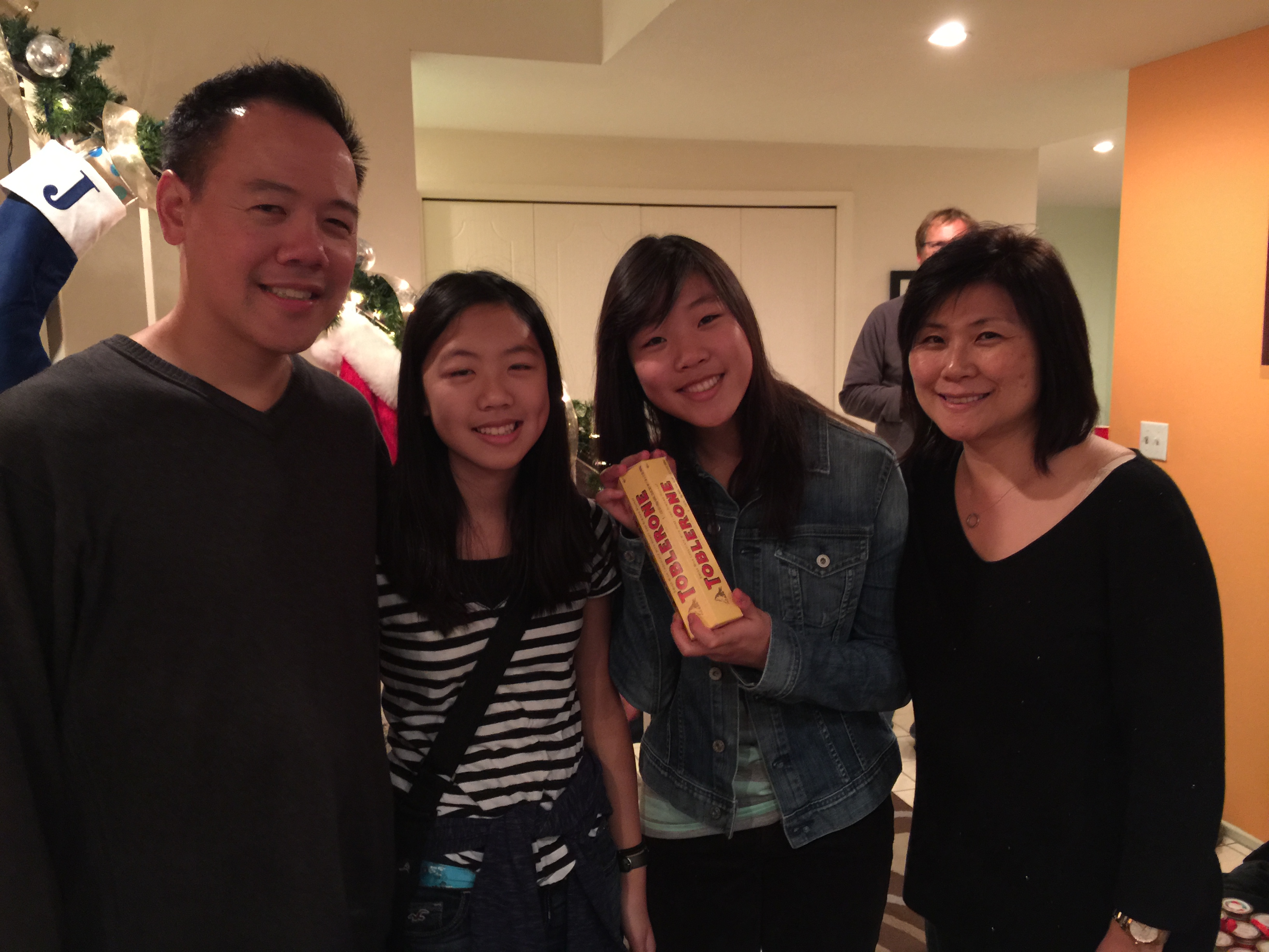 We had a bunch of neighborhood families over to our house for the Annual Wong Christmas Party. The neighborhood families started having parties when my daughter was kindergarten. One family hosts the Halloween Party, another 4th of July Party, another after the talent show night, and we host a Christmas Party. Now the kids are in high school and middle school. I know my kids are getting big, when they can string up the Christmas on the gutters. We cooked a rib roast and a Pear Almond Tart. It’s a wonderful potluck. The kids had a white elephant gift exchange, and the parents had one too. Each year I take a group picture. There’s one from this year 2014 and one from 2007. My, how they’ve grown! Merry Christmas!