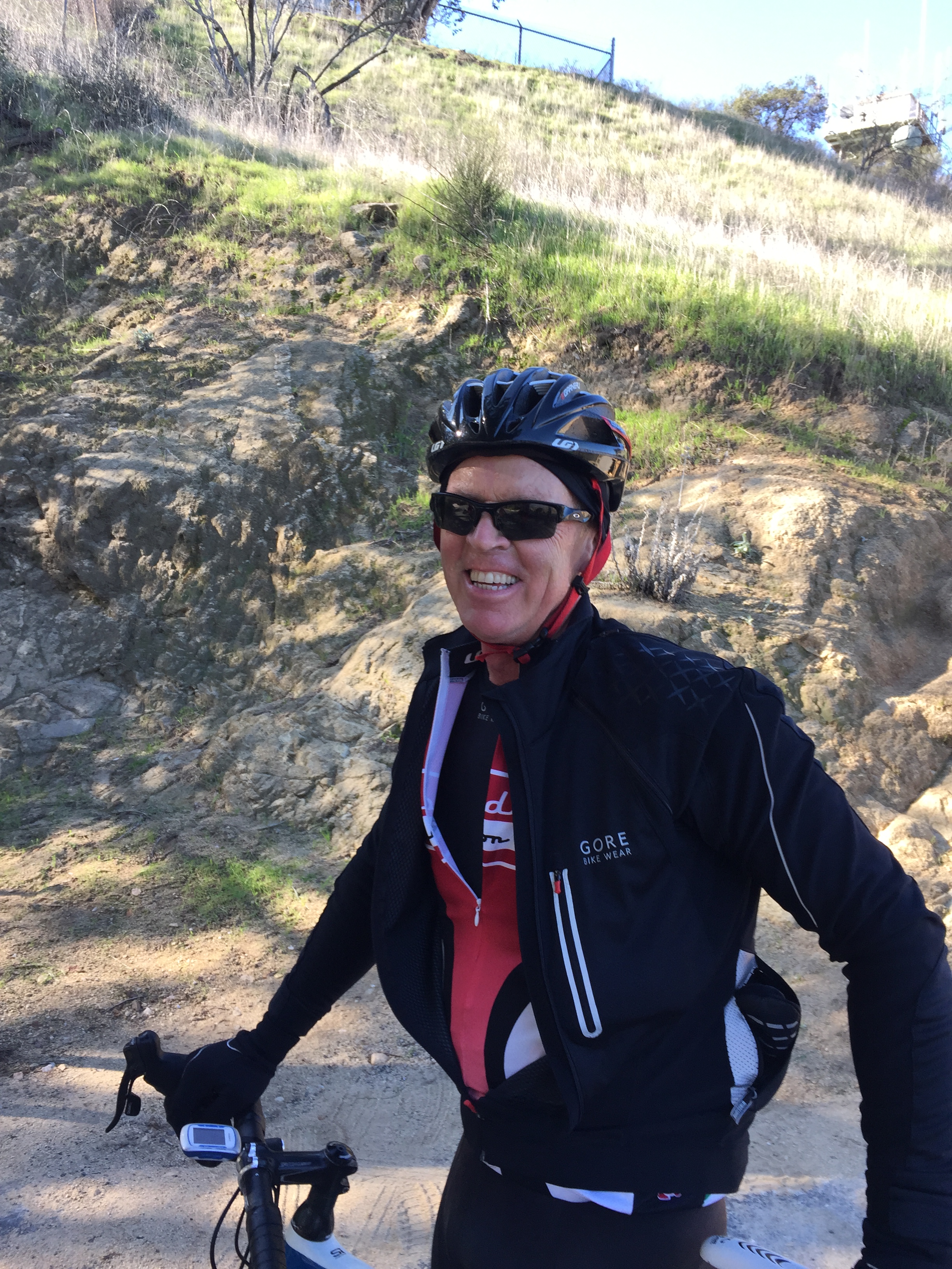 I heard one of the Johns went down in a shady, sandy, hilly spot. Minor flesh wound. Bike and phone ok. I was glad to see him smiling at the end of the ride.