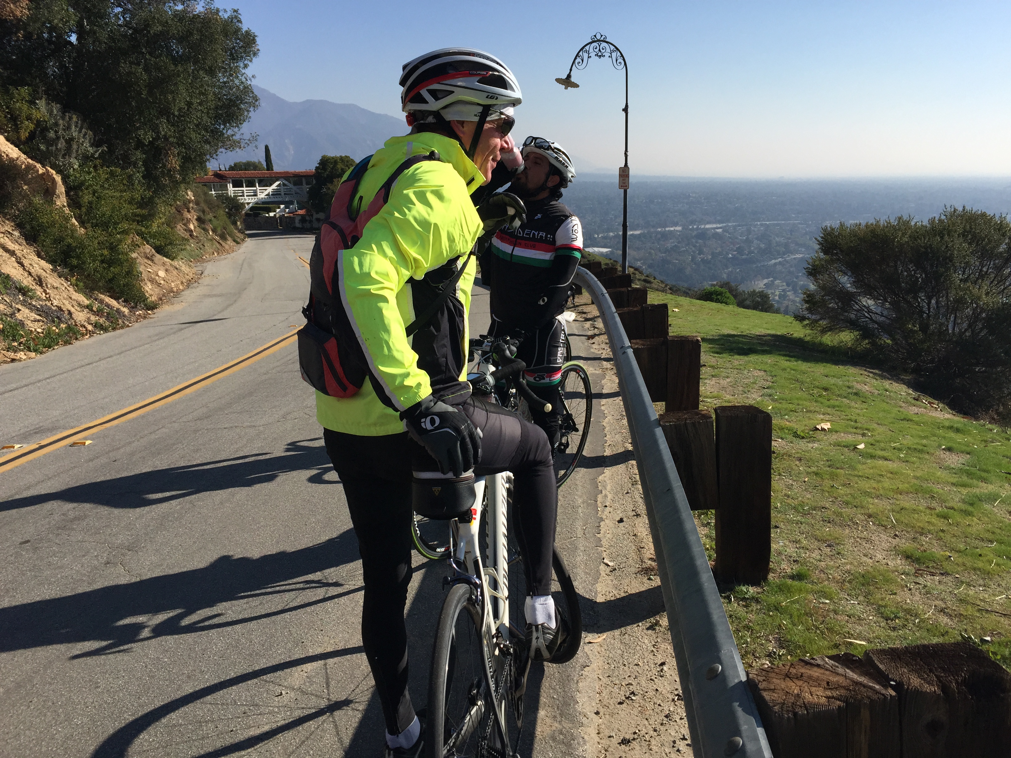 We rode in a big circle around the city counter clockwise hitting all the hills. We saw the Rose Parade Floats sitting on Sierra Madre Blvd. We went by Eaton Canyon, Top of Lake,Chaney Trail. Chaney is 20%+ that one is nuts. and a mile long.
