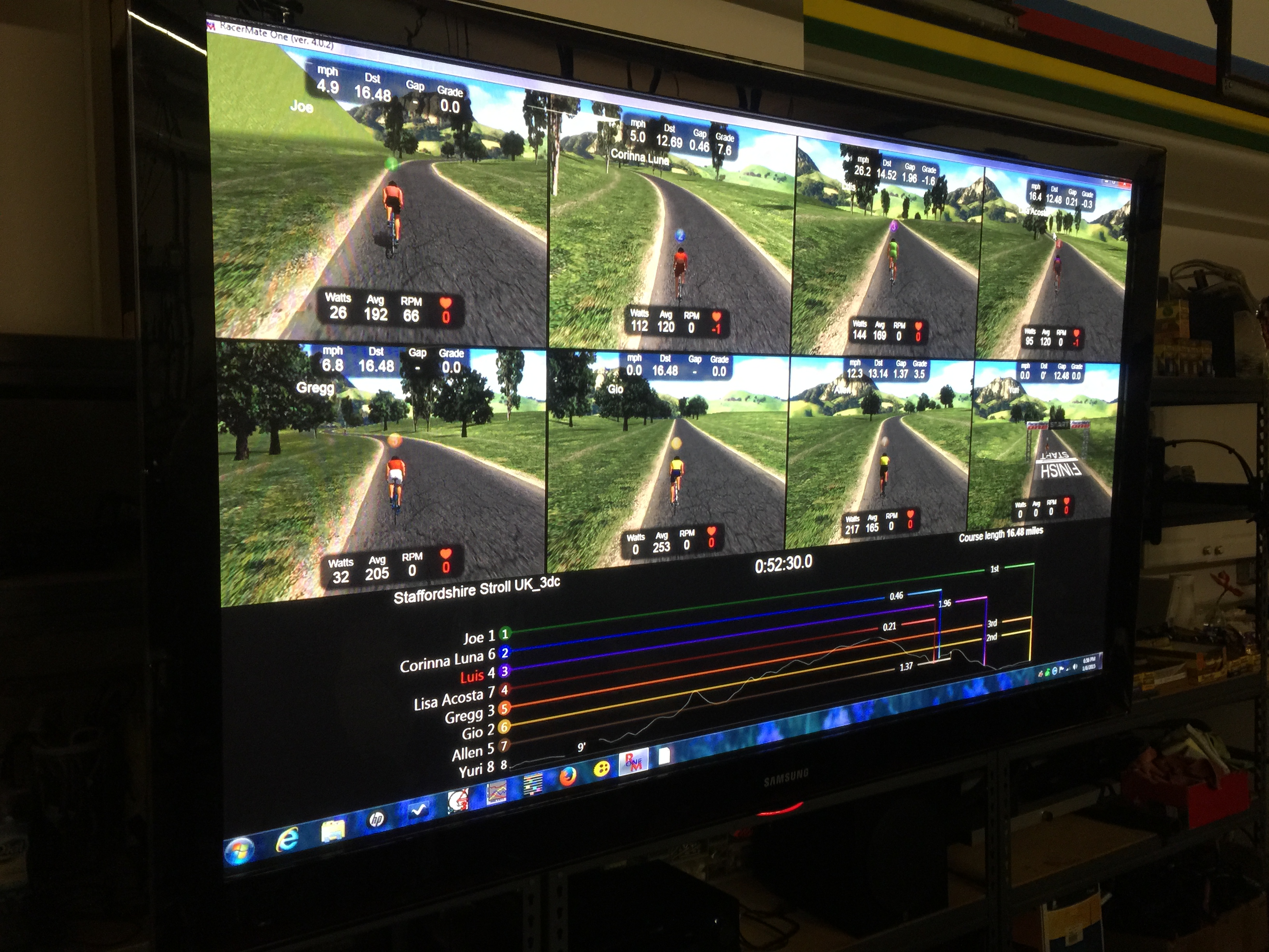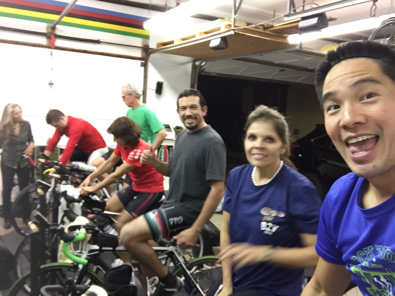 My Mio Link heart rate sensor worked like a charm. It was Luis’s first time to Lynda’s pain cave. He had a fun ride. Corrina and Lisa are training for Ironman AZ. They were both rearing to go. Gio, Gregg, and I stuck together on the whole ride. I snuck by at the very end. Allen taught me the art of drafting. He was in the back row (off camera).
