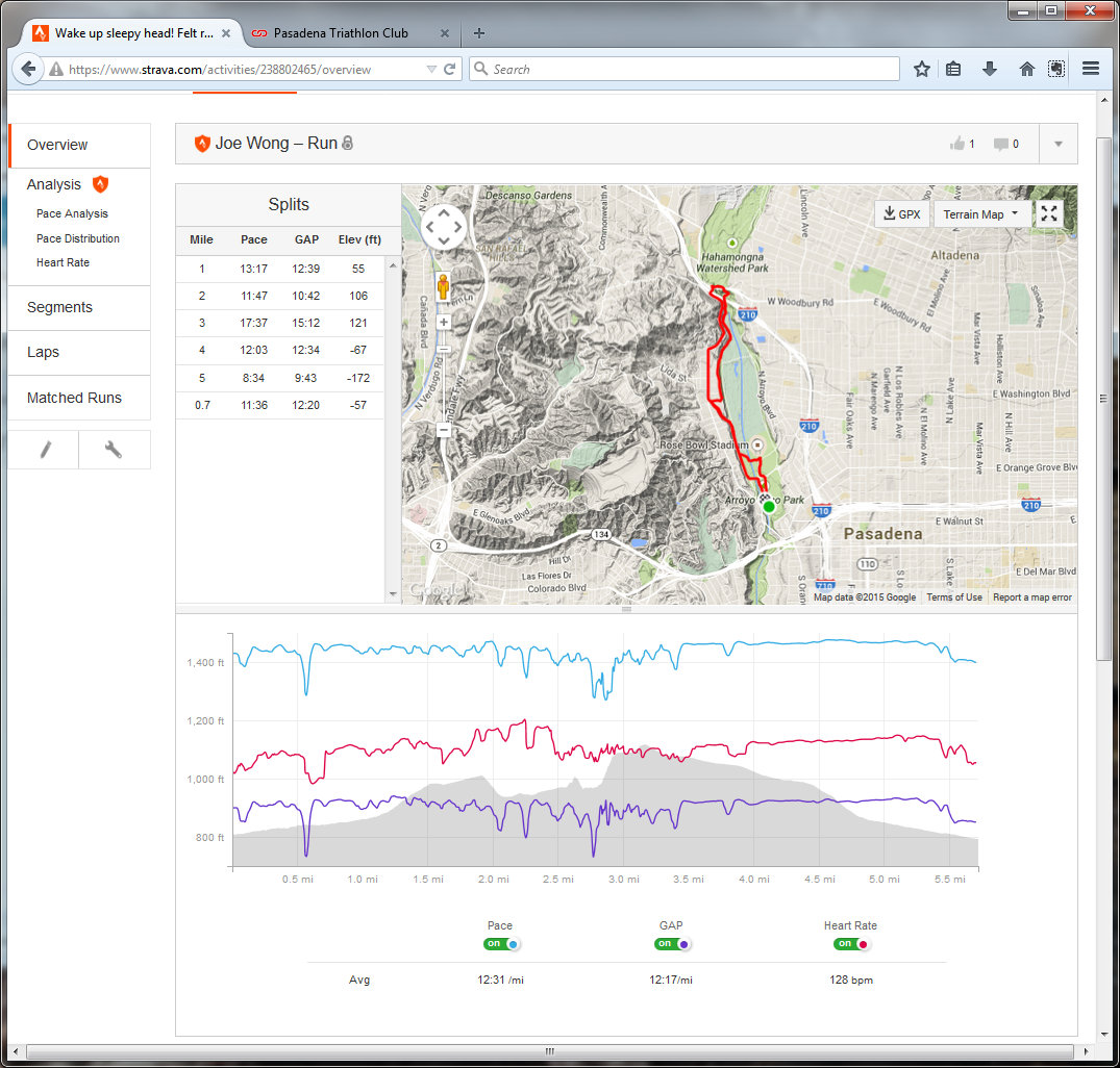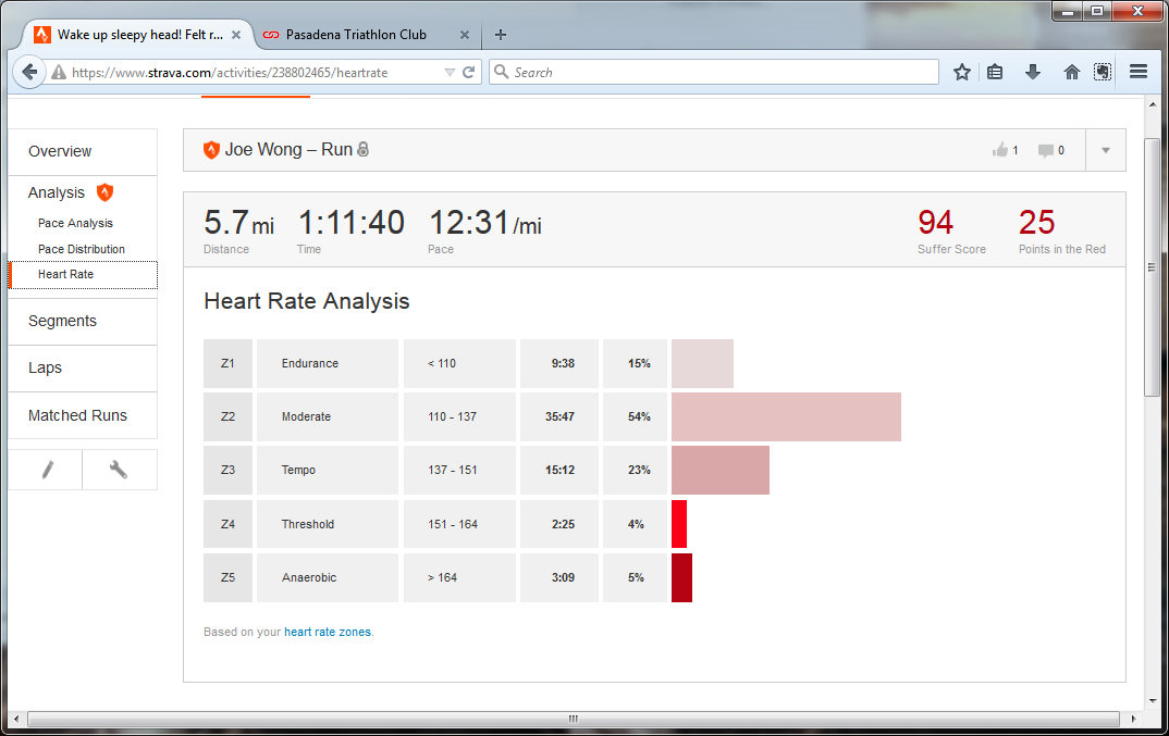 5.7 miles, 1:11 moving time, 94 suffer score, 3 Strava trophies
