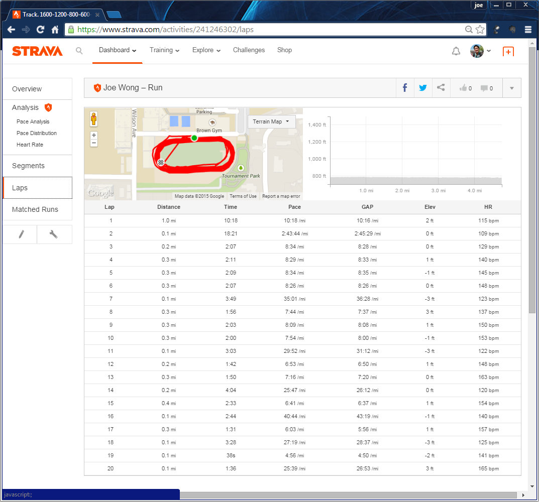 This is the pace data. i hit the lap button on the garmin to get the live 400 splits. i averaged the segments for the data above.