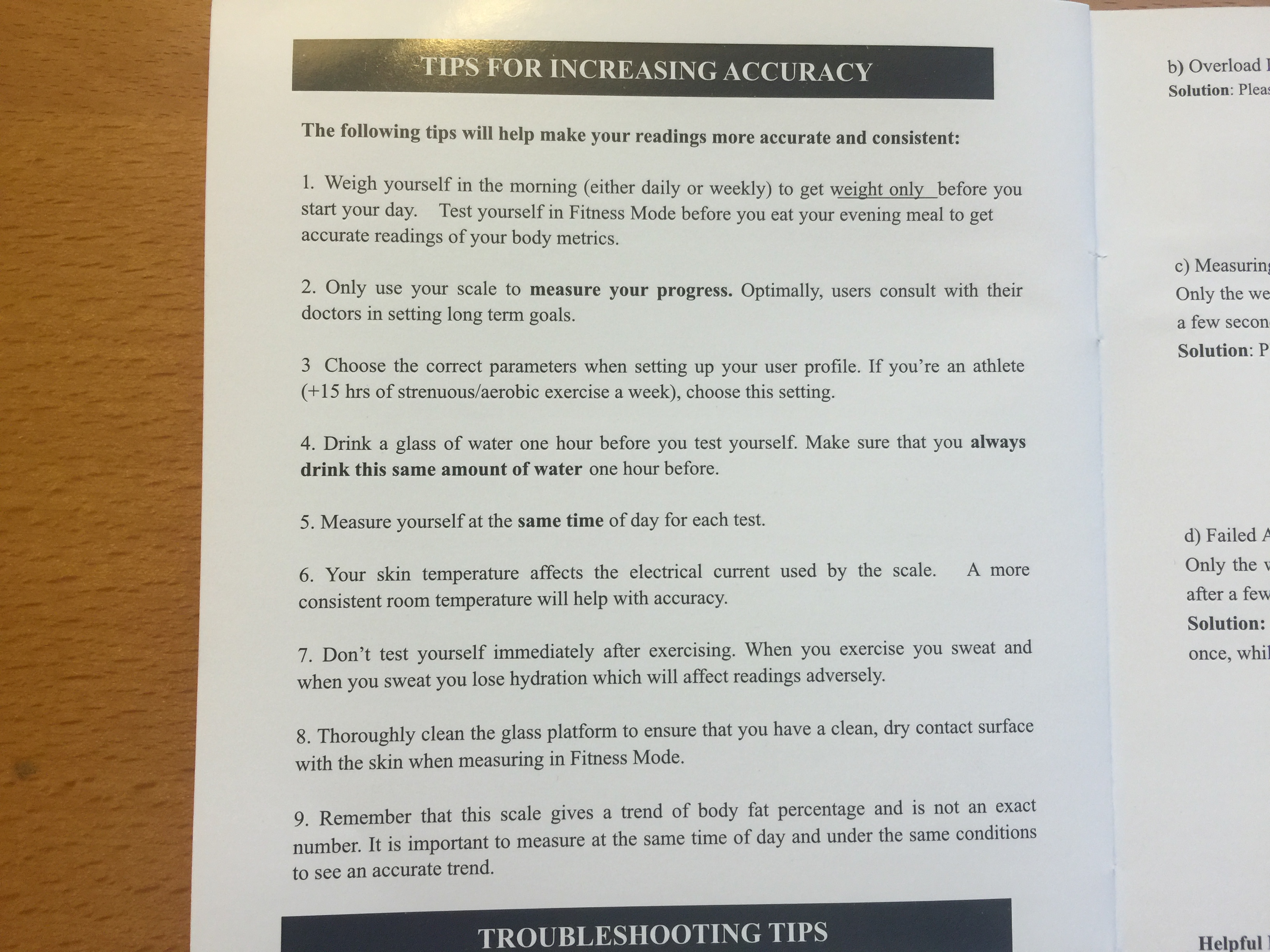 To receive the most accurate weight measurement, weigh yourself first thing when you get up in the morning.
