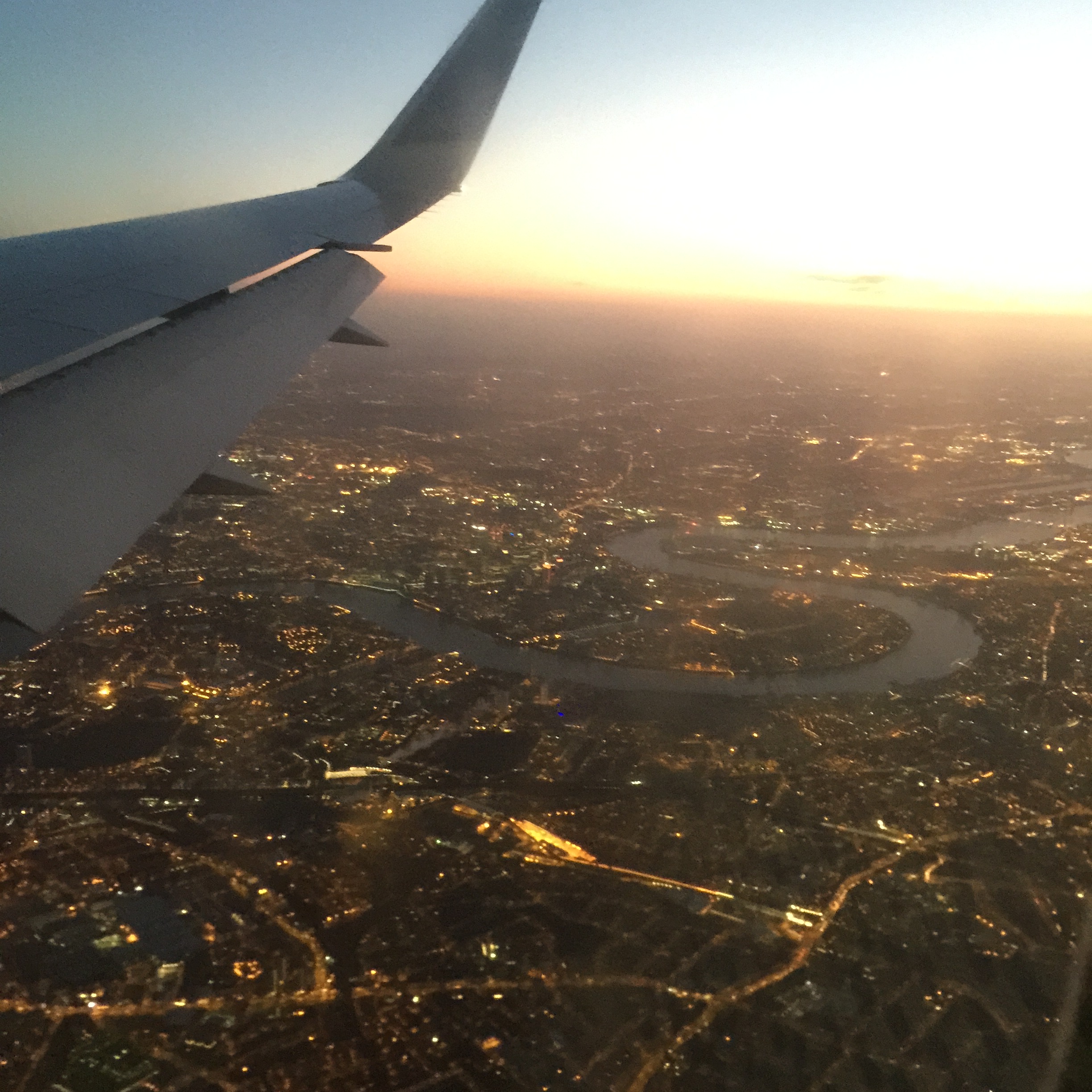 As the plane circled the city, the sun just start to split the sky. Beautiful dawn colored the Thames. It felt like the Disneyland Peter Pan ride with the Thames and lights.