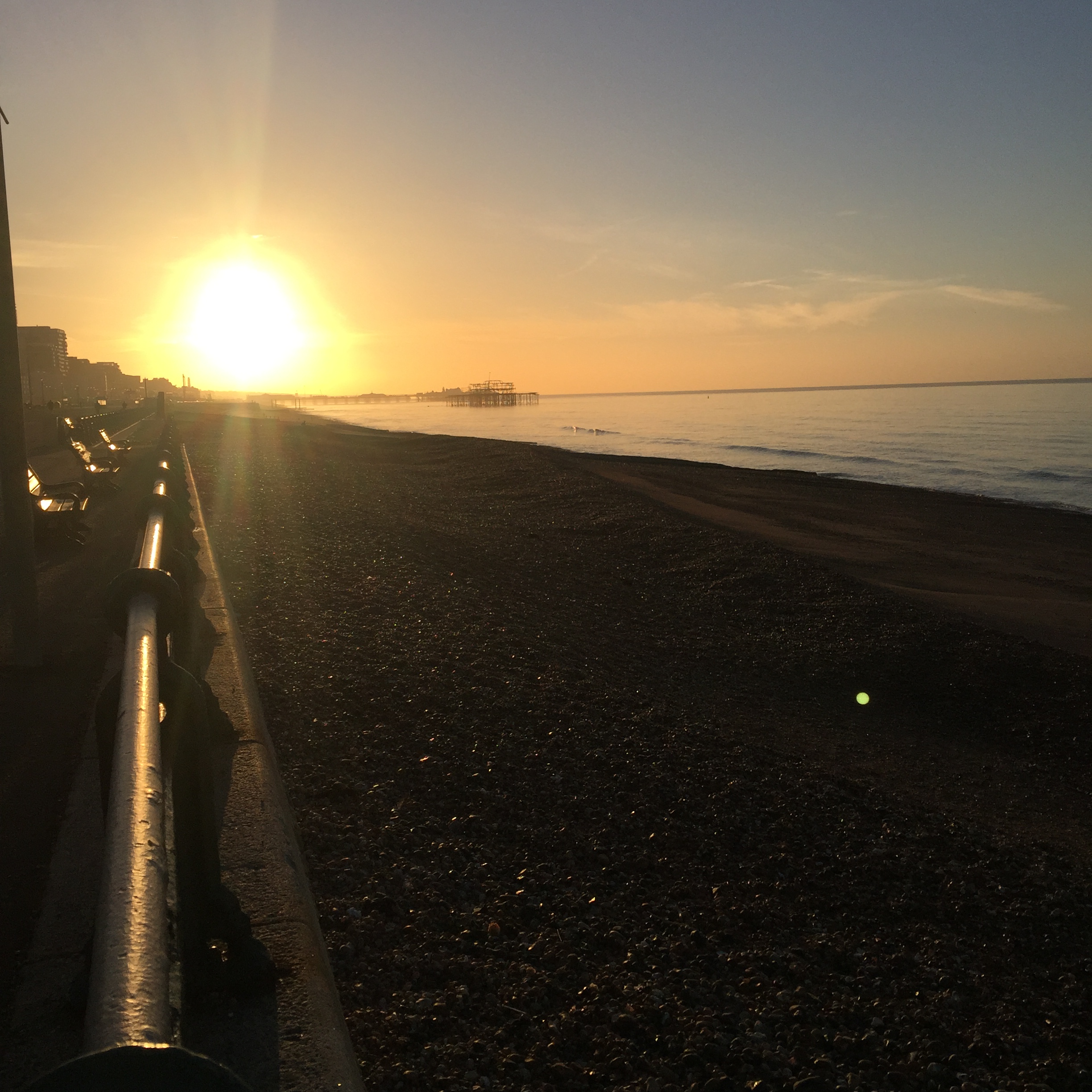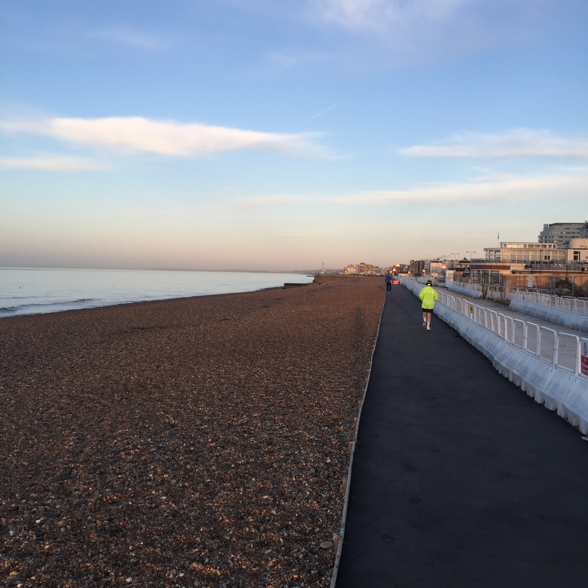Fortunately Brighton is the end of the line and I got off. It was sunny and crisp. A short walk to the hotel. I woke up nicely at about 5pm. I decided to go for a run along the beach. It was sunny and crisp. The beach was pebbles really, not even close to sand. There was a quaint board walk, Ferris wheel, put put golf. I was running easy with the wind and worked up a sweat. On the return it was a head wind and freezing cold as the sun went down.