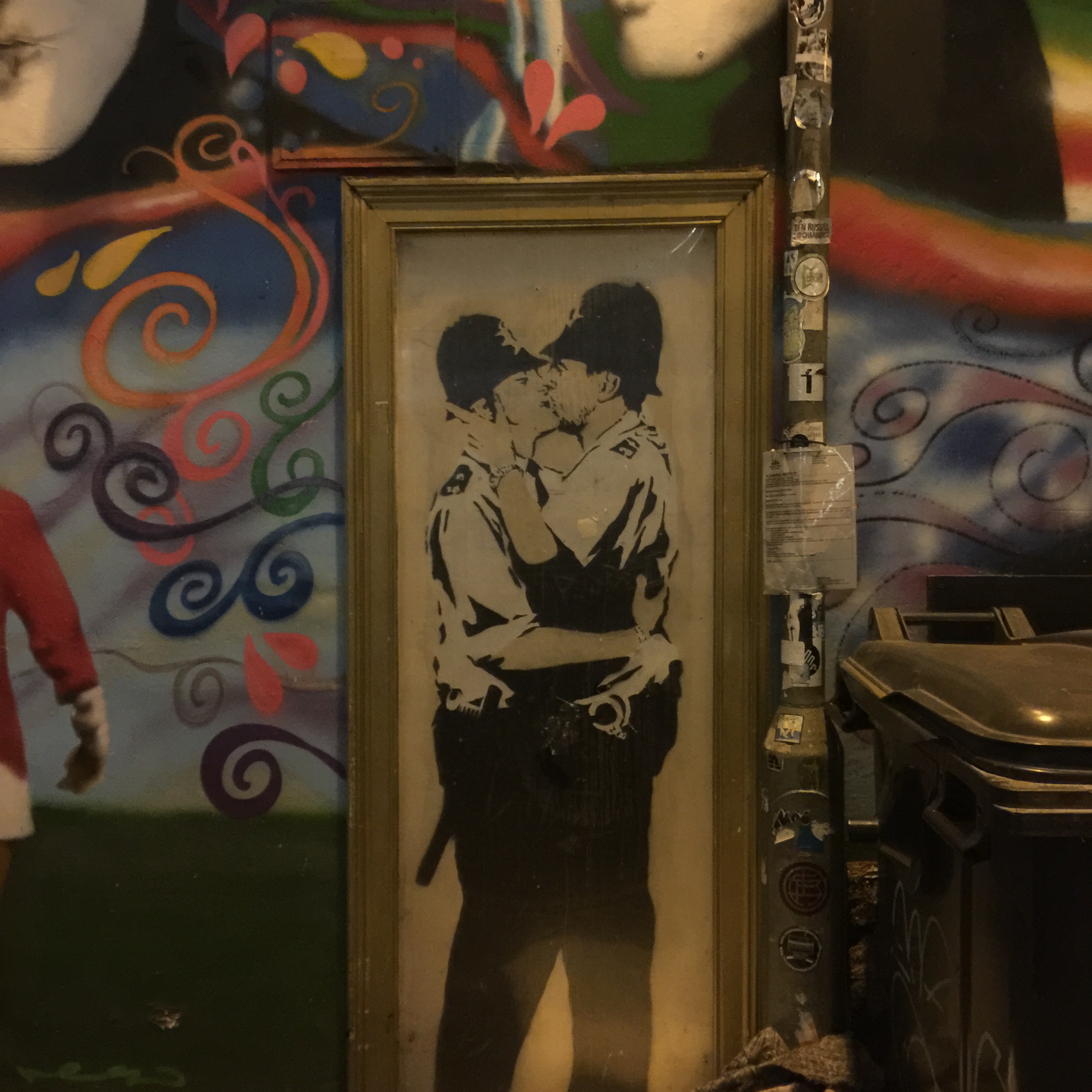 I met a couple guys from the meeting for a true English pub dinner. Pictures below. As we walked to a local restaurant, they pointed out an original Banksy, the notable graffiti artist.